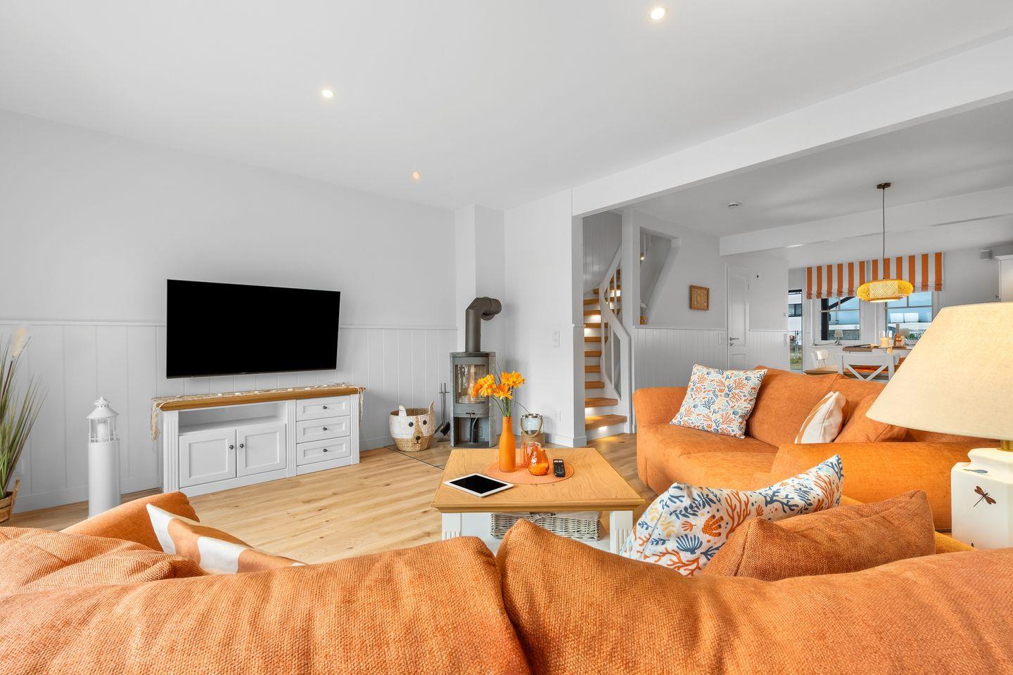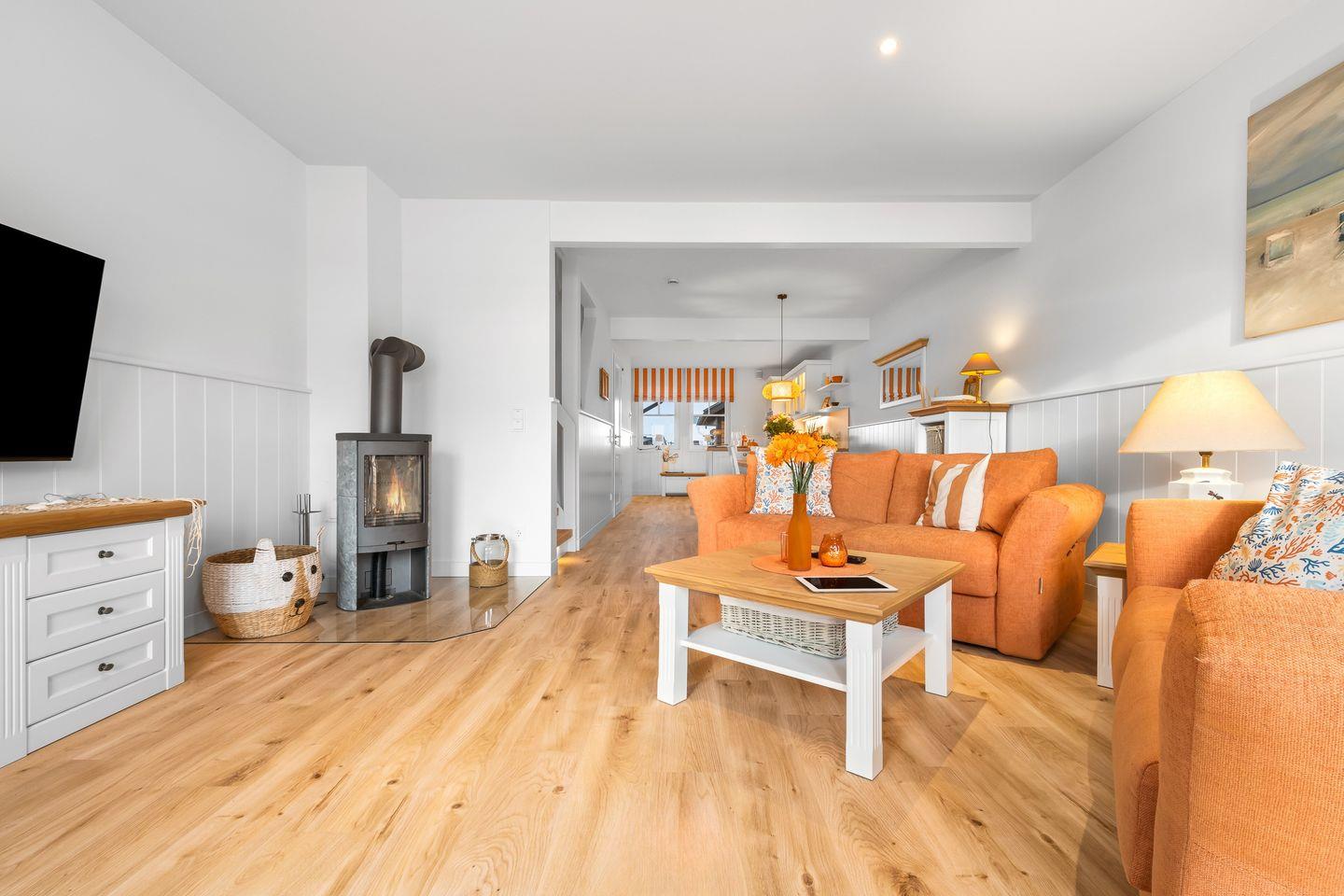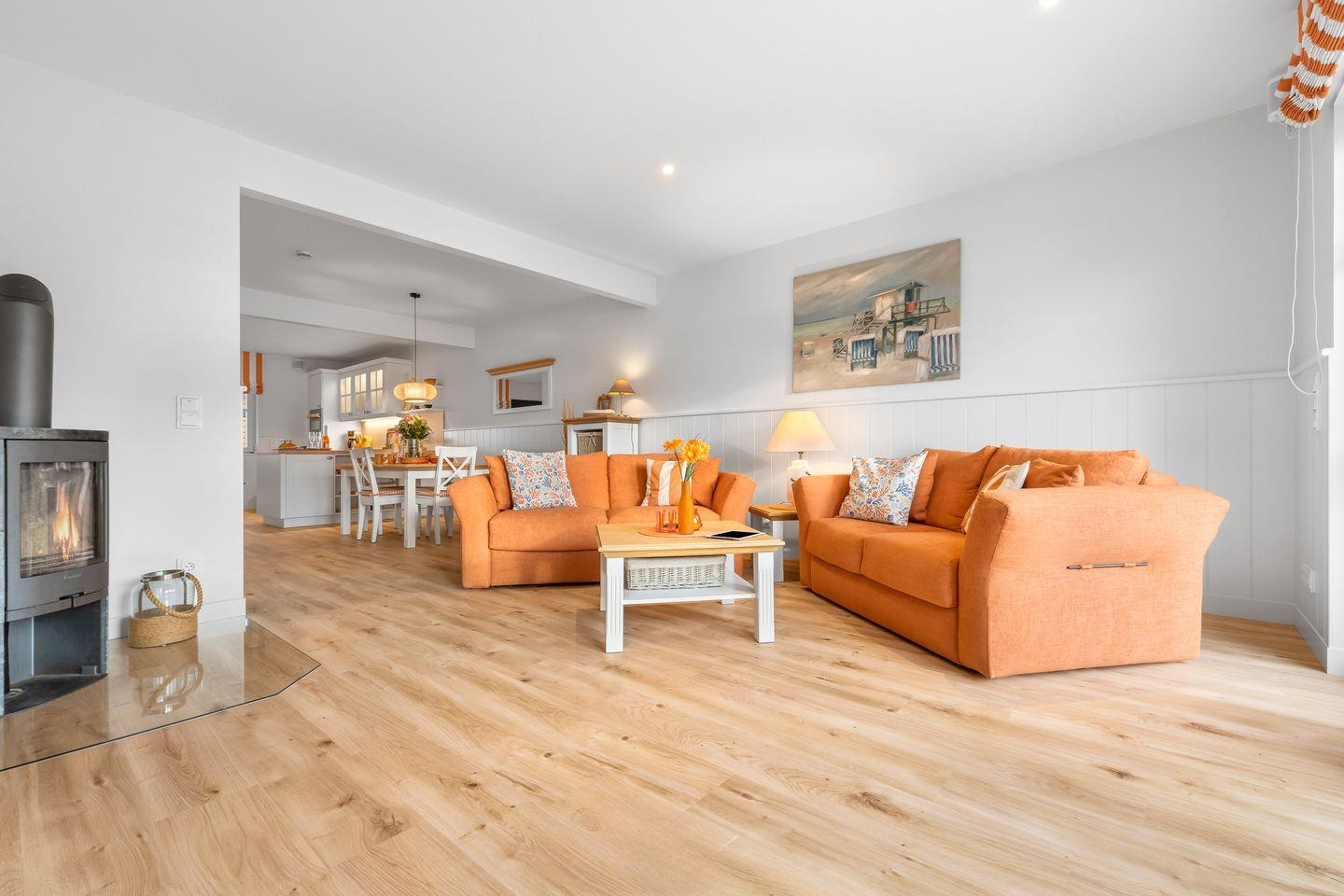 Entdecken Sie das frisch renovierte Ostsee-Ferienhaus „Hafenspaß“ – ein romantisches, ca. 100 qm großes Ferienhaus mit orangener Fassade, das Platz für bis zu 4 Personen bietet. Die liebevolle Inneneinrichtung im gemütlichen Landhausstil schafft eine einladende Atmosphäre für Ihren Ostseeurlaub direkt am Wasser.