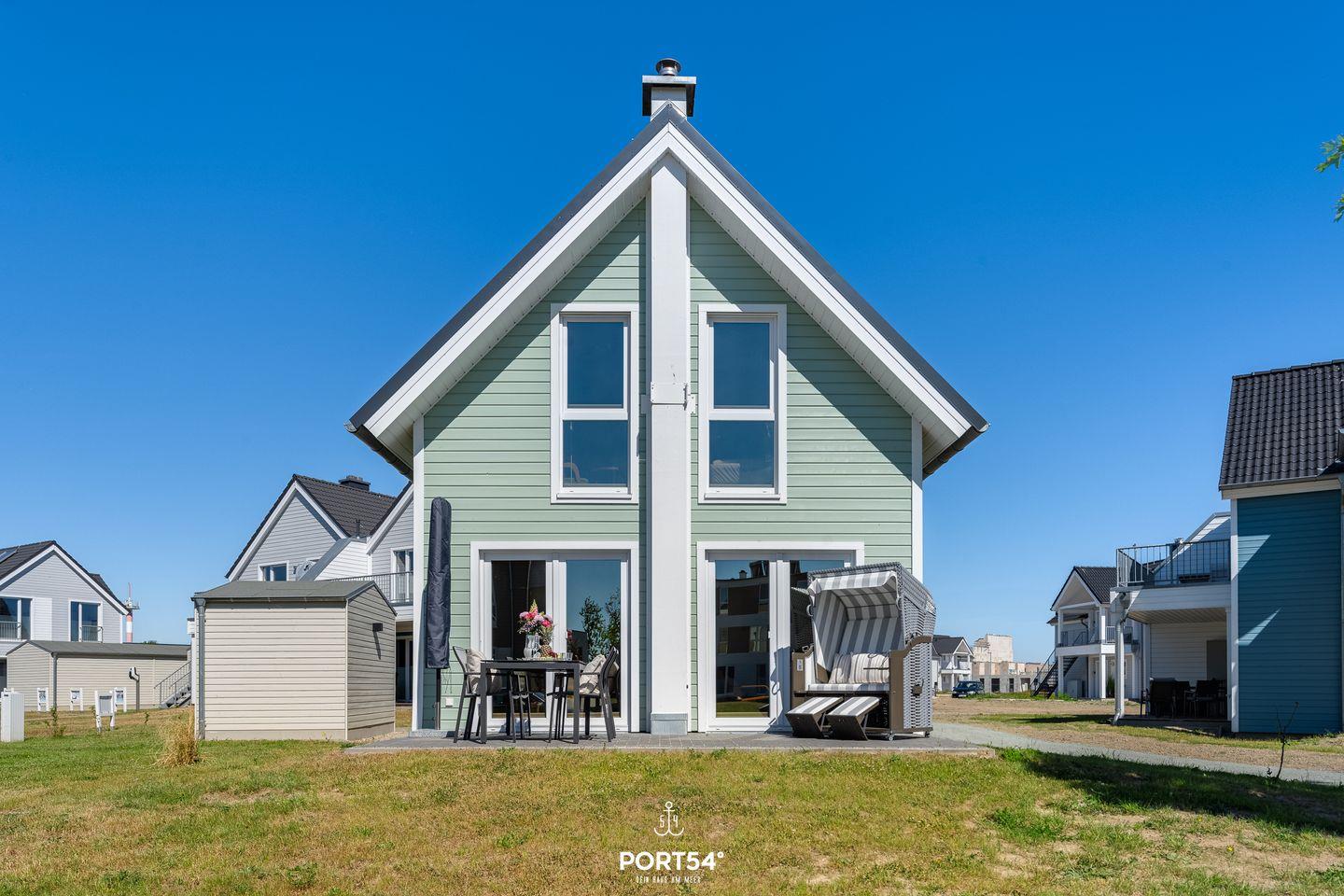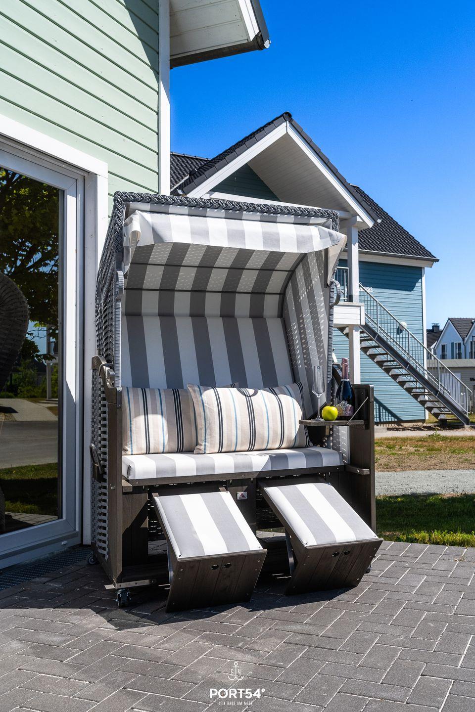 Das Ferienhaus ist von einer Rasenfläche zur Mitnutzung umgeben, die Dir ebenfalls einen schönen Blick auf die Umgebung bietet. Die Terrasse ist mit Gartenmöbeln und einem Strandkorb ausgestattet und lädt Dich dazu ein, die Sonne zu genießen oder entspannte Stunden im Freien zu verbringen.