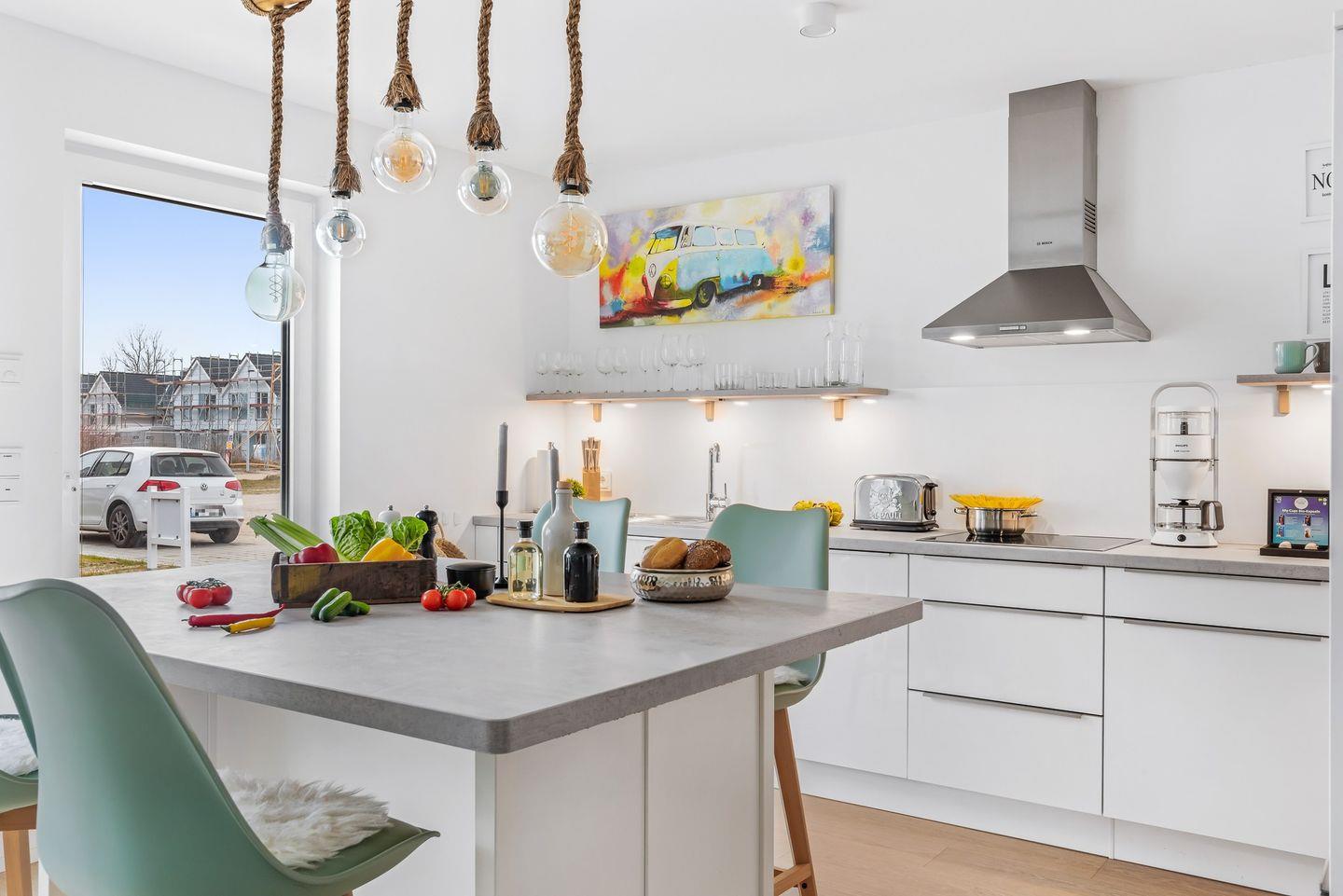 Der offene Wohn- und Essbereich mit bodentiefen Fenstern sorgt für eine lichtdurchflutete Atmosphäre und einen hervorragenden Blick nach draußen.