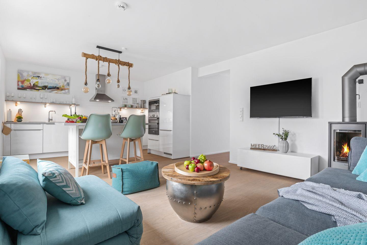 Willkommen in der Hafenlounge Olpenitz, einem modernen Apartment, das Dir auf 72 m² ein einzigartiges Wohlfühlambiente bietet.