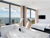 Im Erdgeschoss des Hauses befinden sich die drei komfortablen Schlafzimmer, die jeweils über ausreichend Stauraum und einen TV für erholsame Nächte verfügen. Alle Schlafzimmer bieten Dir einen direkten Zugang zu einer Terrasse. Das Hauptschlafzimmer ist mit einem komfortablen Boxspring-Doppelbett (180 × 200 cm) ausgestattet und verfügt zudem über ein Bad en suite. Auf der angrenzenden großen Terrasse stehen Dir Sonnenliegen für ein ausgiebiges Sonnenbad zur Verfügung. Die beiden weiteren Schlafzimmer sind jeweils mit einem Doppelbett (160 × 200 cm) ausgestattet.