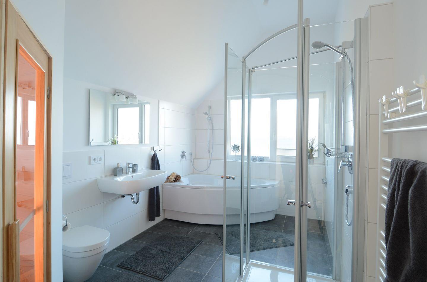 Der eigene Kaminofen rundet das Wellnesserlebnis ab.