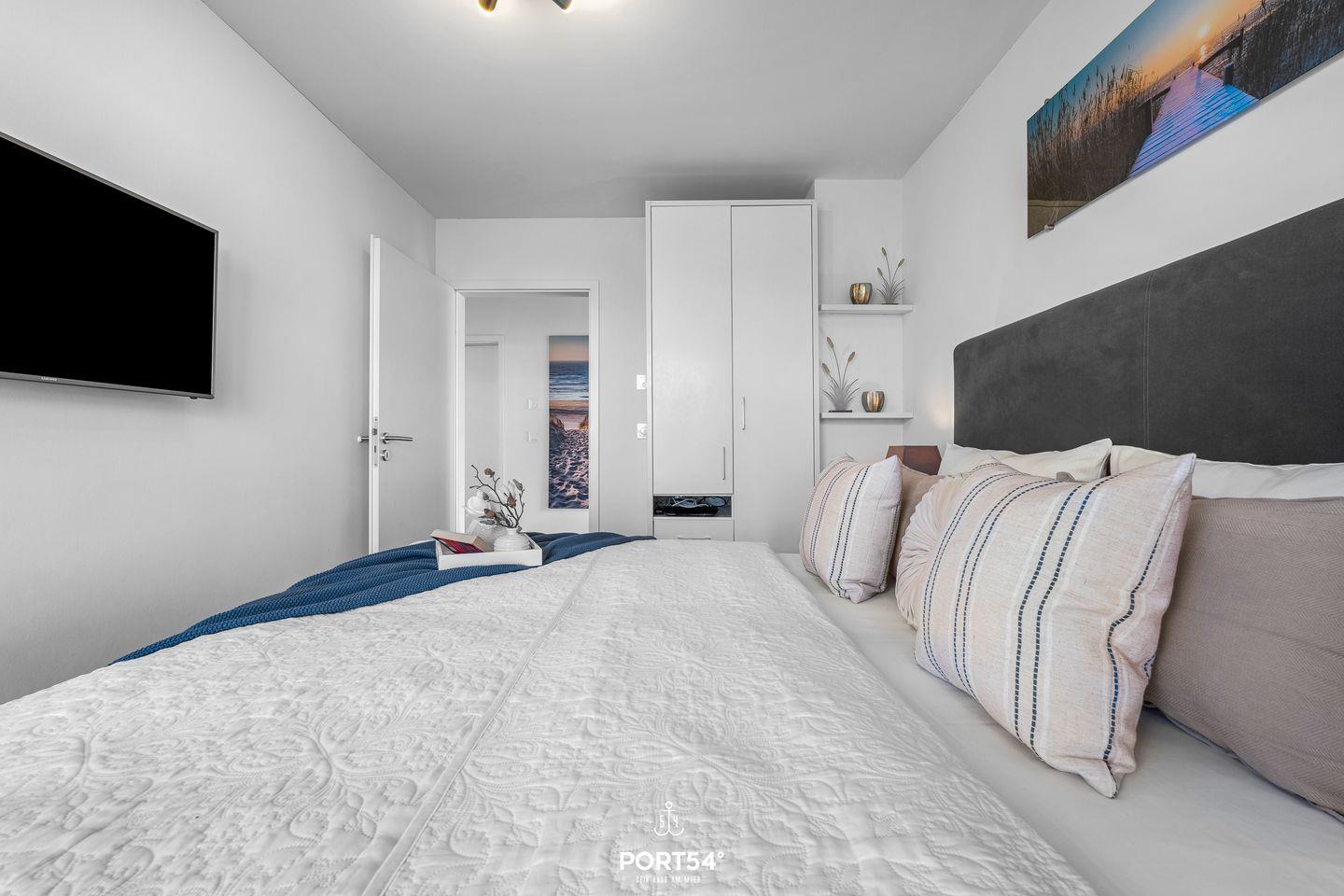 Die Ferienwohnung verfügt über zwei Schlafzimmer und eignet sich damit ideal für Familien oder Paare. Beide Schlafzimmer sind jeweils mit einem Doppel-Boxspringbett (180 × 200 cm), Verdunkelungsmöglichkeiten und einem Smart-TV ausgestattet.