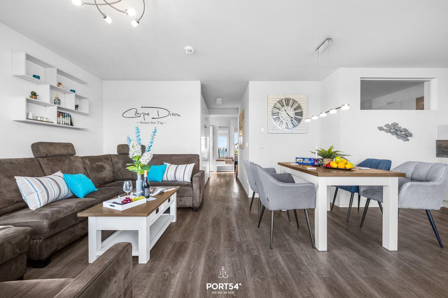 Die Ferienwohnung „Carpe Diem“ verbindet stilvolles, modernes Wohnen mit einer erstklassigen Lage und einem umfassenden Ausstattungsangebot, das sowohl Erholungssuchende als auch Aktivurlauber anspricht und Dir einen gelungenen Aufenthalt am Meer garantiert. Sichere Dir jetzt Deinen Aufenthalt in dieser exklusiven Ferienwohnung am Wasser.