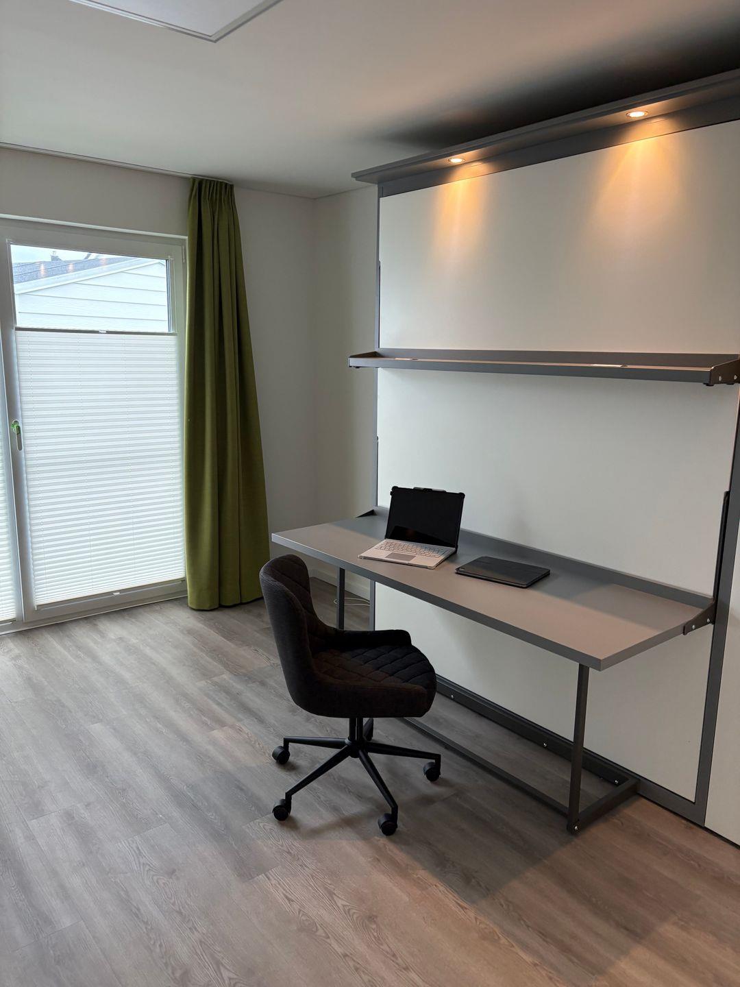 Zwei separate Schlafzimmer garantieren Dir erholsamen Schlaf. Schlafzimmer 1 ist mit einem großzügigen Boxspring-Doppelbett (180 × 200 cm) ausgestattet und bietet Dir Komfort pur. Schlafzimmer 2 ist flexibel nutzbar: Ein Schrankbett (160 × 200 cm), das tagsüber in einen hochwertigen Schreibtisch umgebaut werden kann, eignet sich ideal zum Arbeiten oder als Spielzone für Kinder. Beide Räume verfügen über Smart-TV, Kleiderschrank und Verdunklungsmöglichkeiten.