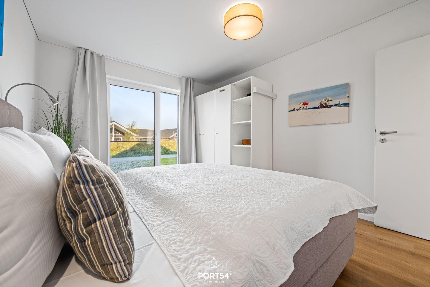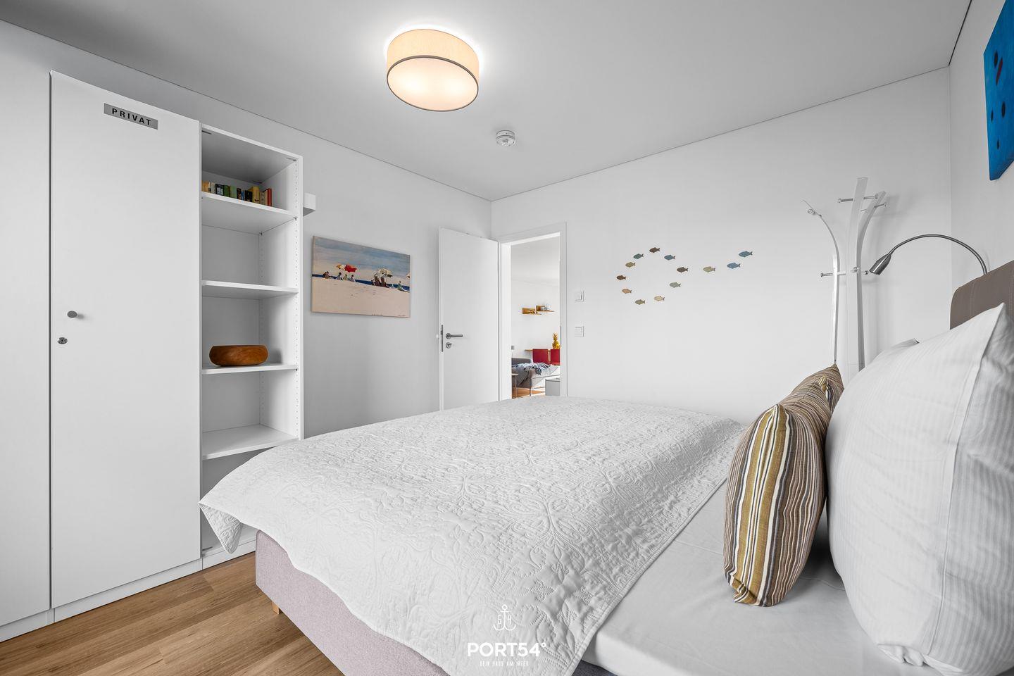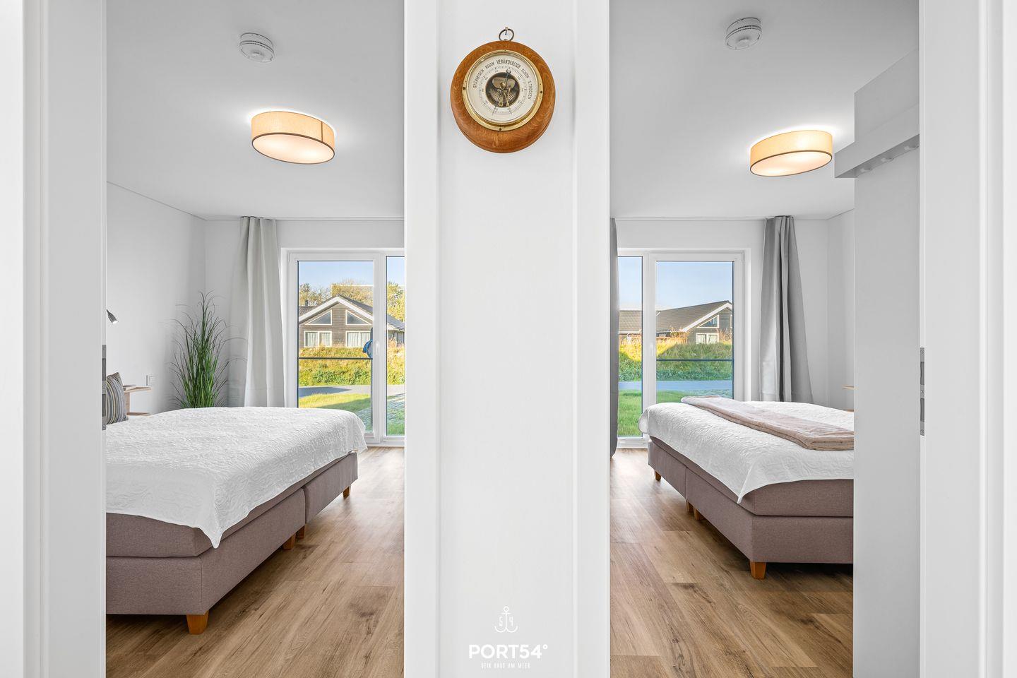 Die beiden Schlafzimmer verfügen jeweils über ein gemütliches Doppel-Boxspringbett (180x200cm) und einen Kleiderschrank. In einem der Schlafzimmer steht Dir zusätzlich ein weiterer Smart-TV zur Verfügung.