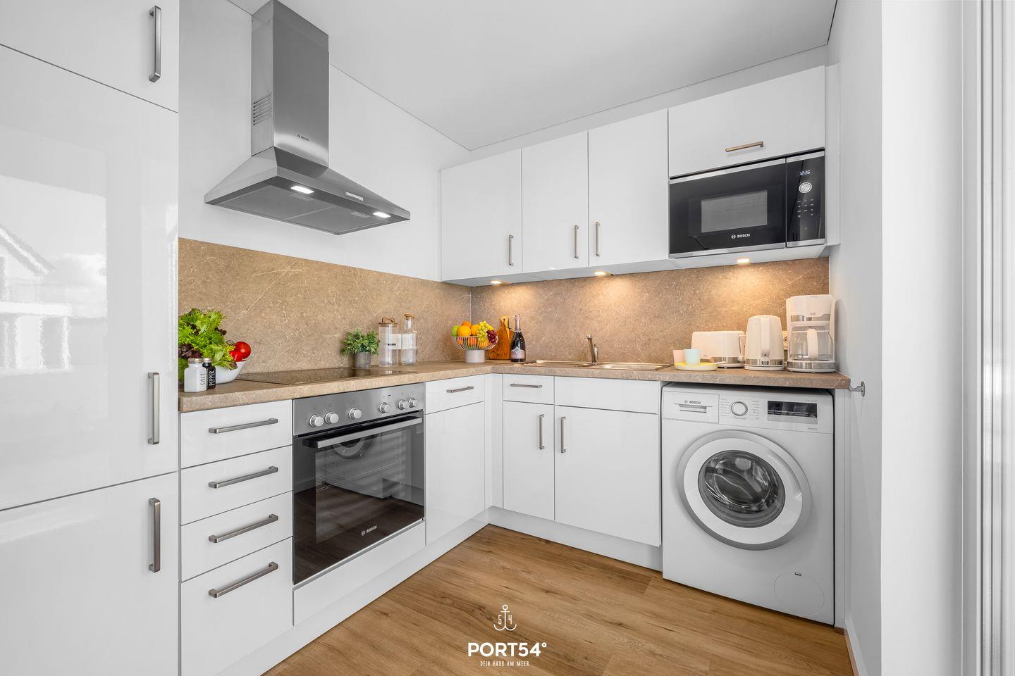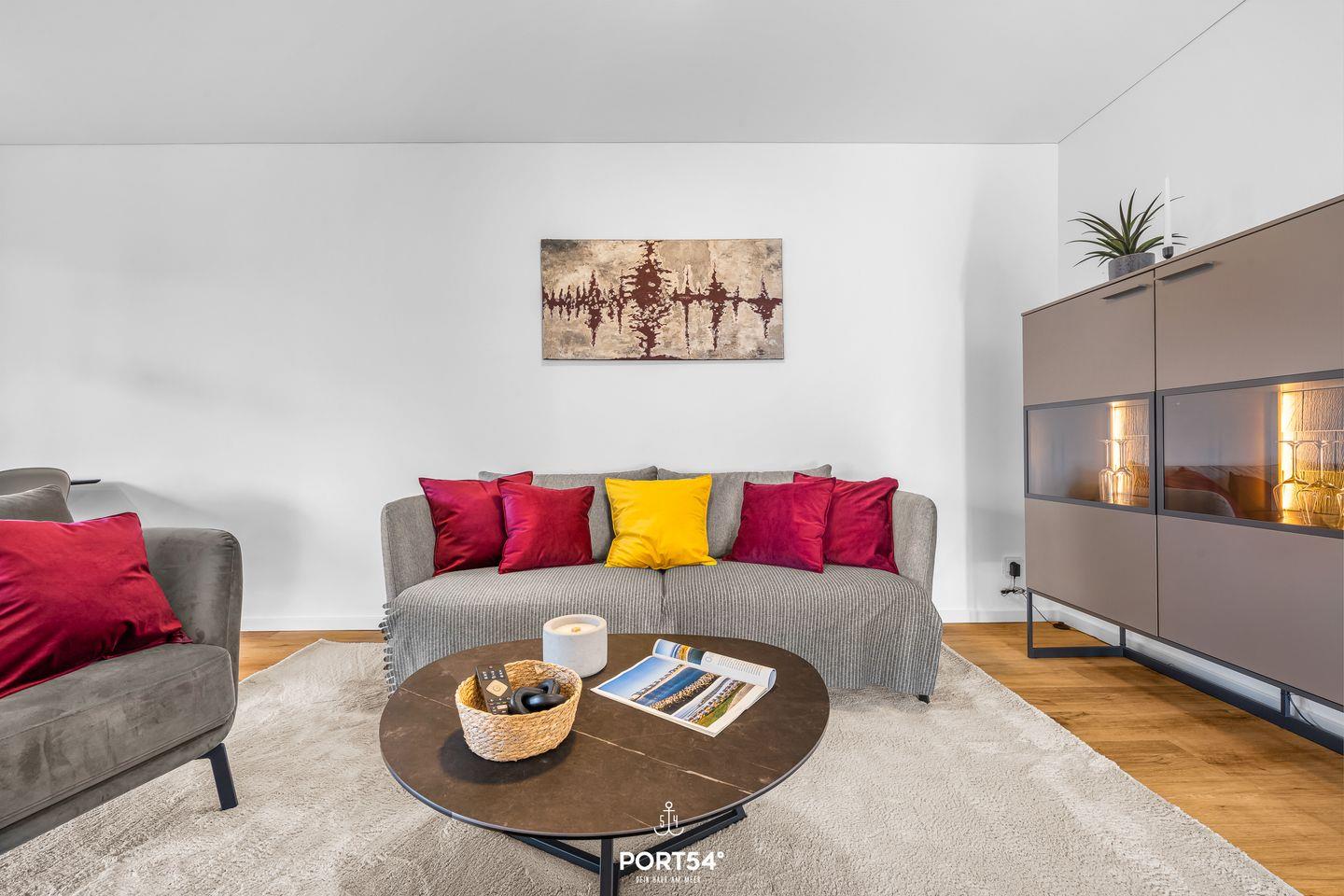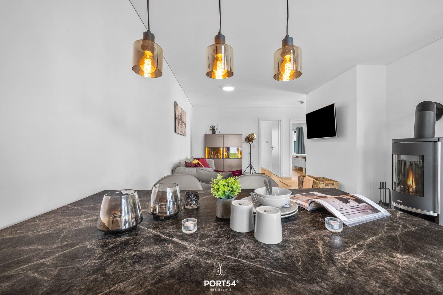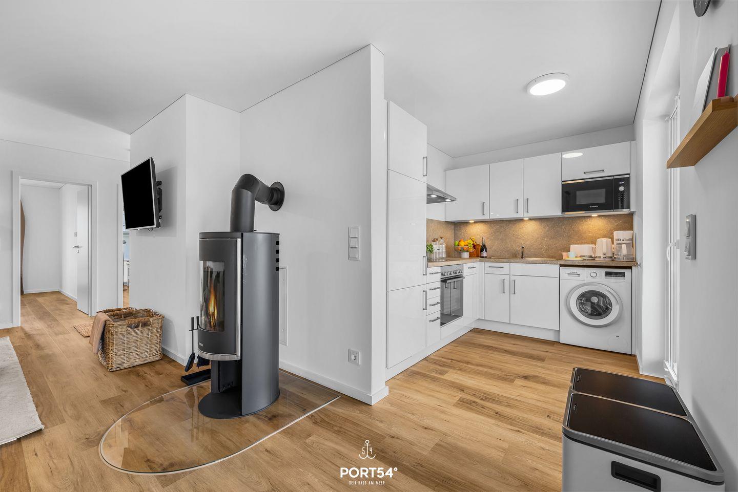 Die moderne Erdgeschosswohnung in einer hochwertigen Ferienanlage bietet Dir ein stilvolles Ambiente und ist ideal für Paare und Familien. Im Zentrum der Wohnung erwartet Dich ein heller, offen gestalteter Wohn- und Essbereich mit behaglichem Kaminofen, komfortablem Sofa, einem Sessel, einem Smart-TV, WLAN sowie diversen Spielen. Hier kannst Du mit Deinen Liebsten gemeinsame Stunden verbringen. Die voll ausgestattete Küche mit Spülmaschine, Mikrowelle und Filterkaffeemaschine lässt keine Wünsche offen und ist ideal für gemeinsame Kochabende.