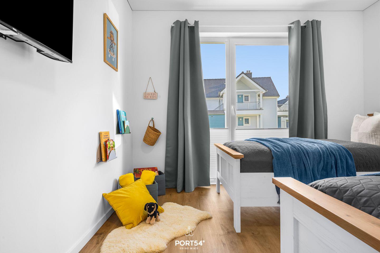 Zwei separate Schlafzimmer bieten Dir Platz für bis zu vier Personen. Im ersten Schlafzimmer erwartet Dich ein bequemes Doppelbett (180x200 cm), im zweiten stehen Dir zwei Einzelbetten (100x200 cm) sowie ein moderner Smart-TV zur Verfügung. Beide Räume bieten jeweils einen Kleiderschrank sowie Verdunkelungsmöglichkeiten für entspannte Nächte. Auf Familien mit kleinen Kindern ist die Ferienwohnung passend eingerichtet. Dir stehen ein Babybett mit Matratze, ein Kinderhochstuhl und ein Bollerwagen zur Verfügung, ebenso wie eine Spielecke im Schlafzimmer.
