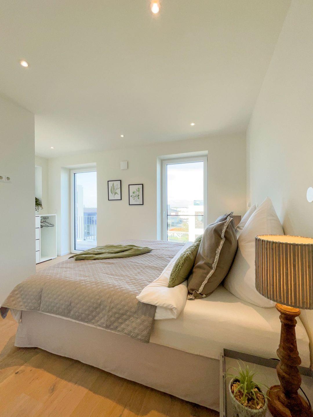 Drei wunderschöne Schlafzimmer garantieren Dir einen erholsamen Schlaf. Zwei Zimmer sind mit komfortablen Doppel-Boxspringbetten ausgestattet, die Dir himmlischen Komfort bieten und zusätzlich mit Smart-TVs für Unterhaltung während Deines Aufenthalts sorgen. Das dritte Schlafzimmer verfügt über ein kleineres Boxspringbett und ebenfalls über einen TV – ideal für Kinder oder Gäste, die eine ruhige Ecke suchen. Jede Schlafstätte ist durchdacht eingerichtet: Moderne, offene Kleiderschränke bieten Dir ausreichend Stauraum für Deine Kleidung, und die Plissees sorgen für den gewünschten Sichtschutz und Deine Privatsphäre.