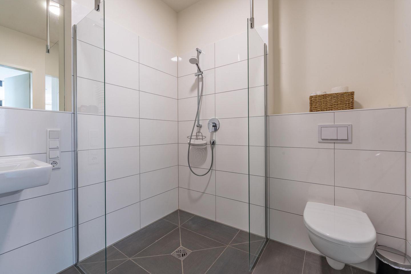 Zwei Badezimmer mit ebenerdigen Duschen sorgen für ein angenehmes Plus an Komfort und Ruhe im Urlaub. So bleibt mehr Zeit für das, was wirklich zählt: Entspannt in den Tag starten, nach einem Ausflug kurz Frischmachen oder abends ganz in Ruhe Ankommen, ohne dass man sich absprechen muss.