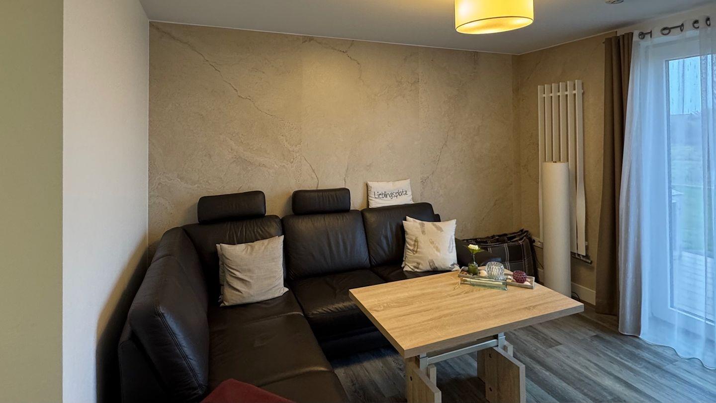 Die Wohnung verfügt über ein separates Schlafzimmer mit Doppelbett (180x200cm) sowie einen offenen Wohnbereich mit Essbereich und eine moderne, voll ausgestattete Küche. So sind ein 2-Platten-Induktionsherd, eine Mikrowelle, ein Toaster, eine Kaffeemaschine und auch ein Eierkocher vorhanden. Der offene Grundriss und die stilvolle Einrichtung sorgen für ein angenehmes Wohngefühl, abgerundet durch ein bequemes Schlafsofa im Wohnbereich.