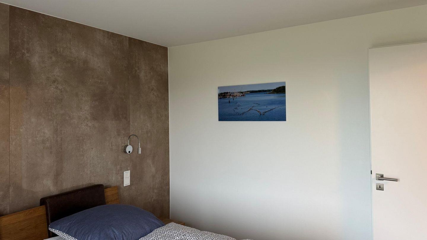 Die ebenerdige Ferienwohnung aus dem Baujahr 2018 liegt im Erdgeschoss eines Hauses in Olpenitzdorf und zeichnet sich durch ein modernes Wohnambiente, hochwertige Ausstattung sowie einen tollen Wasser- und Landschaftsblick aus.