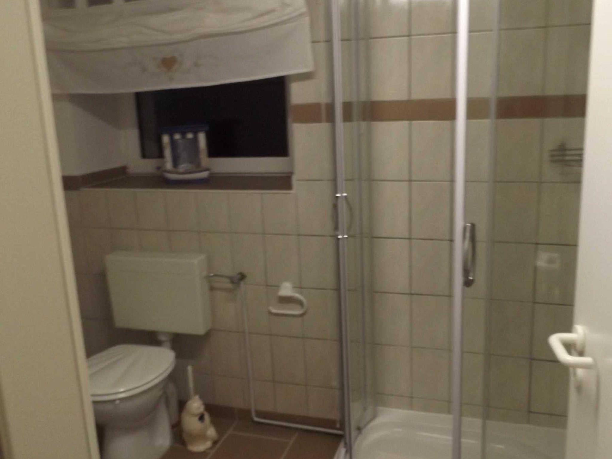 ein Badezimmer, ein Wohnzimmer mit TV-Sat und eine geräumige, gut