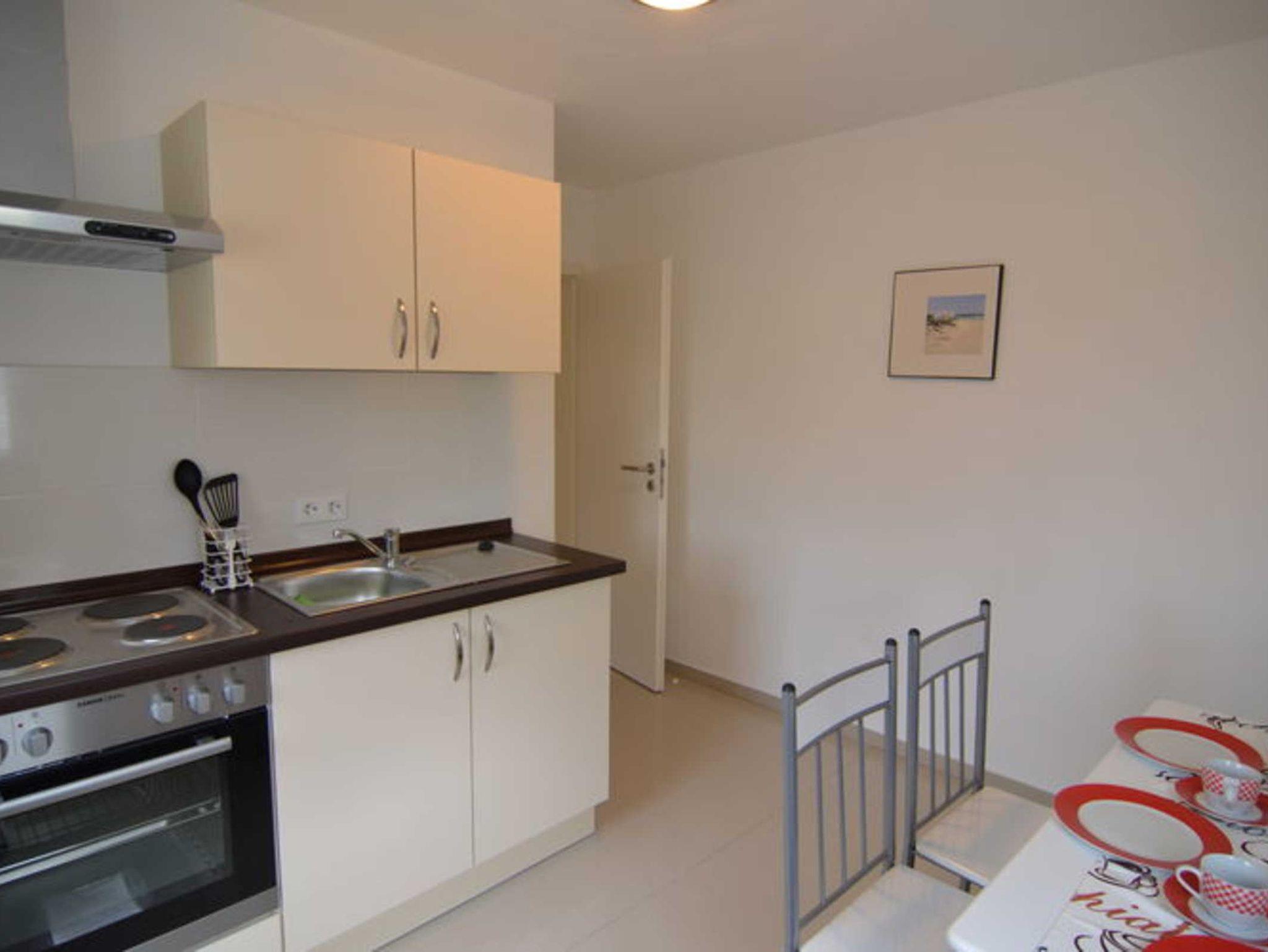 Küche mit Backofen, ein geräumiges Wohnzimmer mit Fernseher