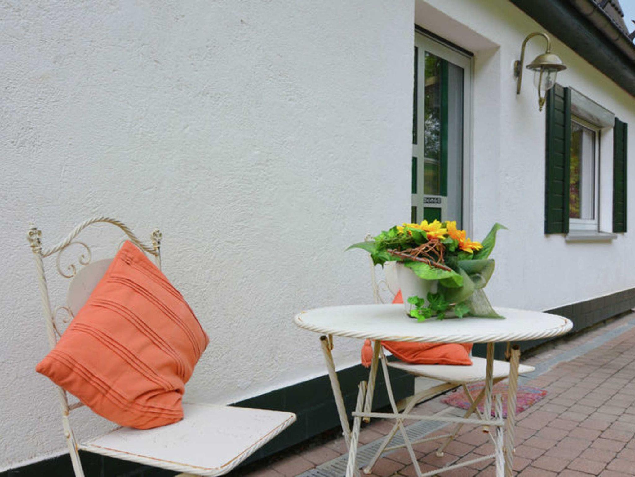 ausgestatteten Küche mit Esstisch. In der Außenanlage