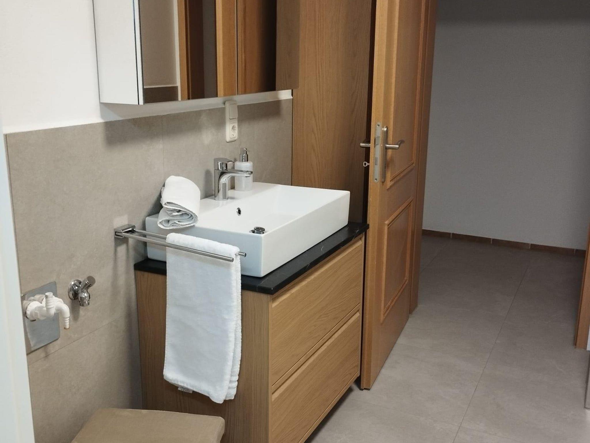 • 1 Einzelbett und o. Kinderbett Schlafzimmer, großes Bad mit Glasdusche und WC, Fön