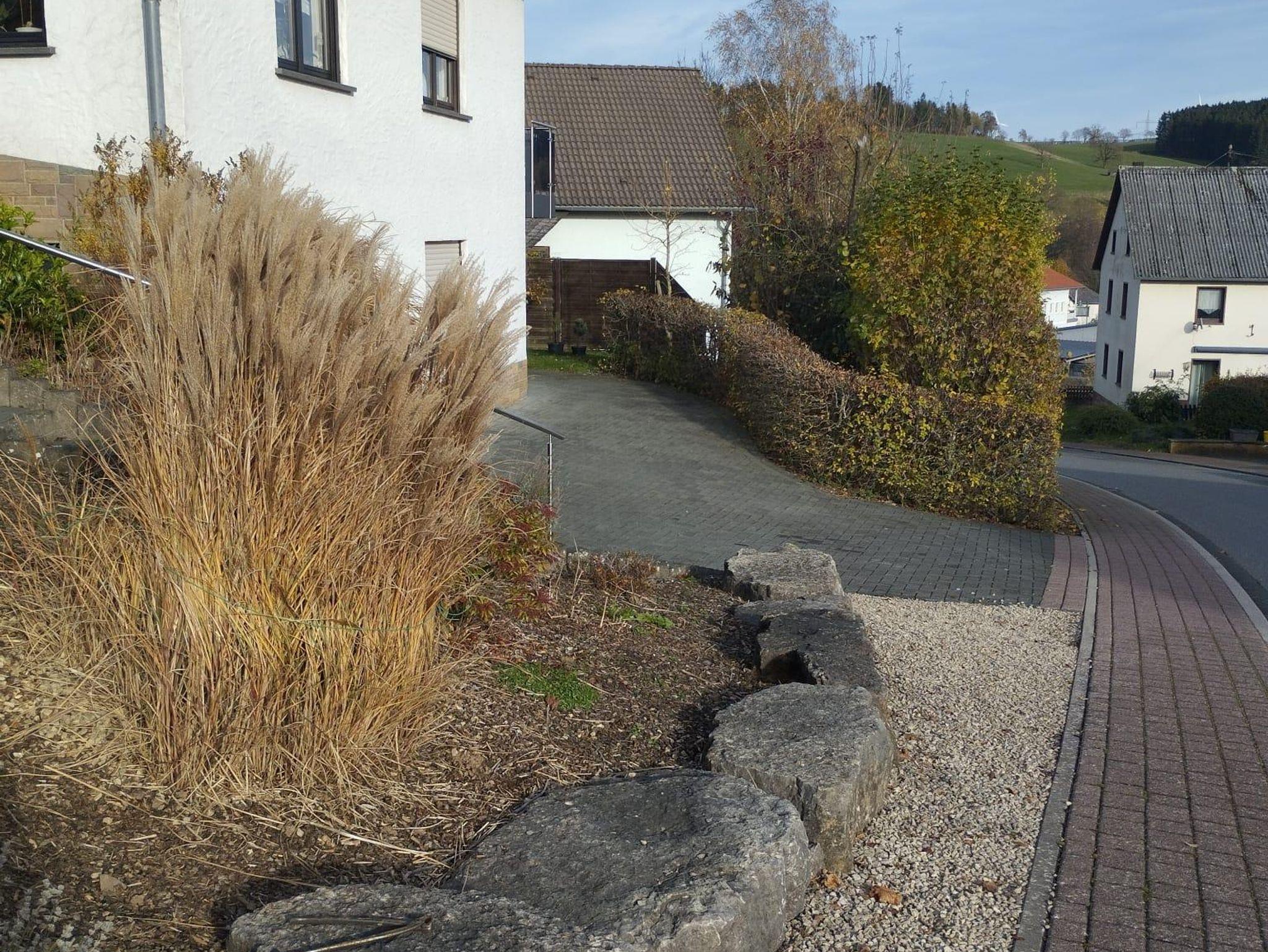 • überdachter Eingang mit Sitzecke und Rasenanlage, Grillplatz