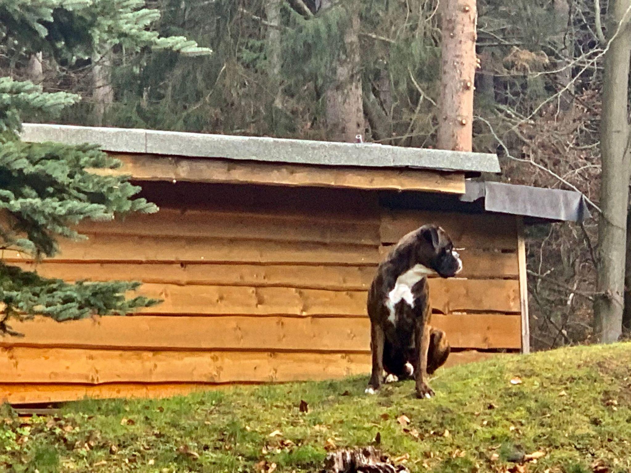 - dog-proof by a fence (completely fenced in)
