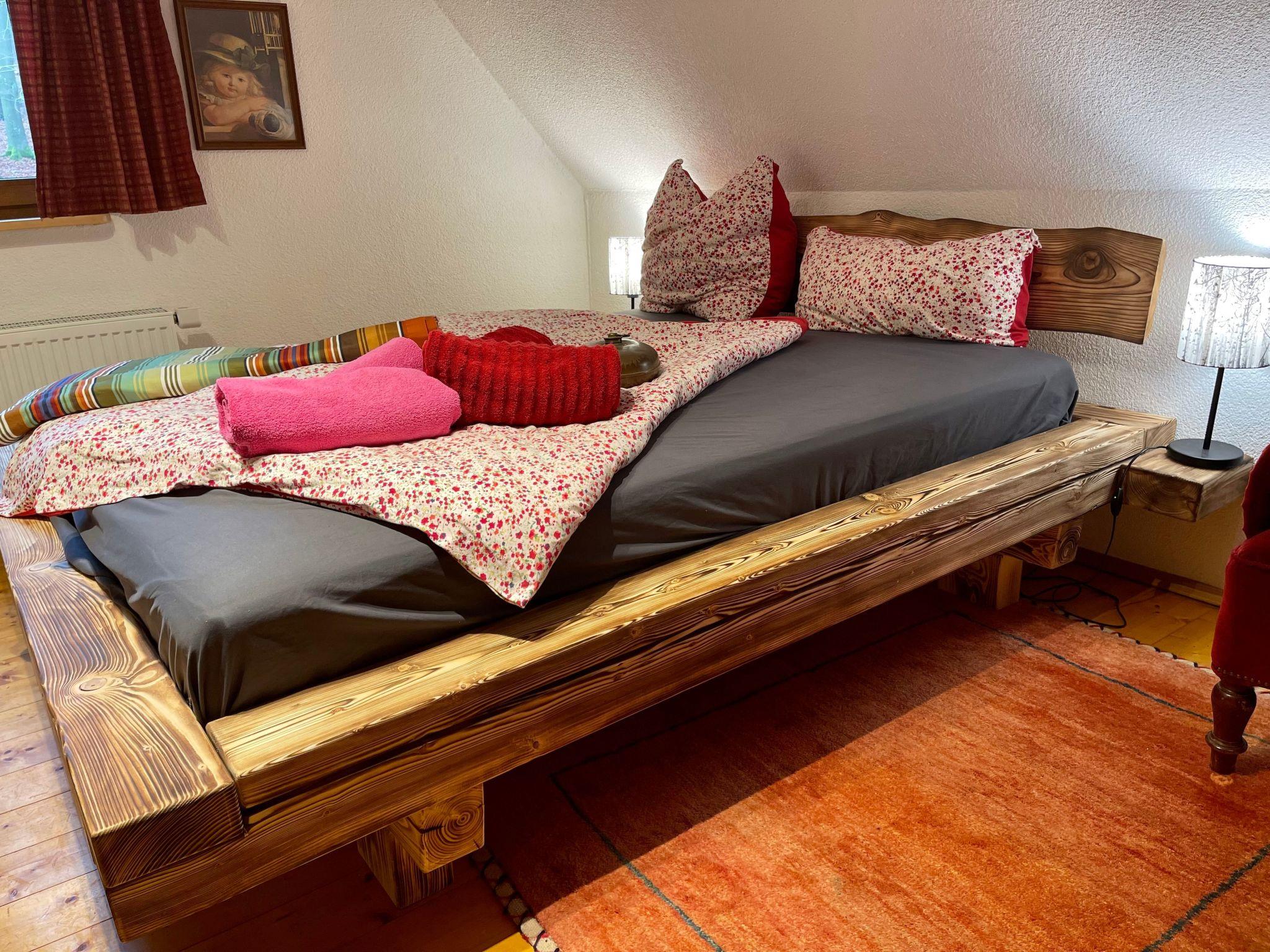 very nice bedroom with view into the forest, double bed ( bed 1,60m x 2,00m )