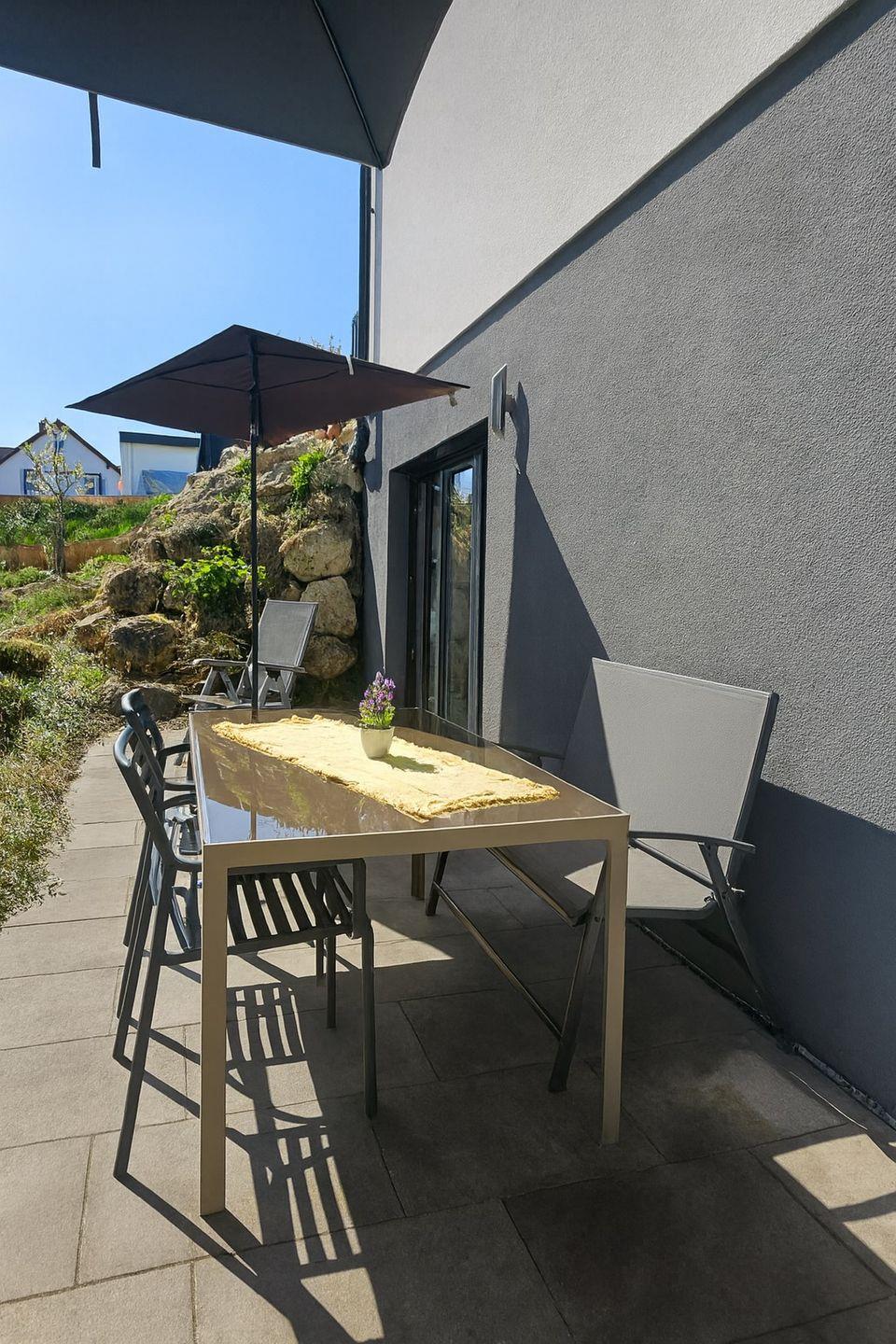 Die modern und liebevoll eingerichtete Ferienwohnung bietet höchsten Komfort für Paare, Alleinreisende oder kleine Familien. Sie verfügt über ein helles Wohnzimmer mit WLAN & TV, ein gemütliches Schlafzimmer, eine voll ausgestattete Küche sowie ein modernes Bad mit Dusche. Eine eigene Terrasse lädt zum Entspannen ein. Klimaanlage, Heizung und Privatparkplätze sorgen für zusätzlichen Komfort.
