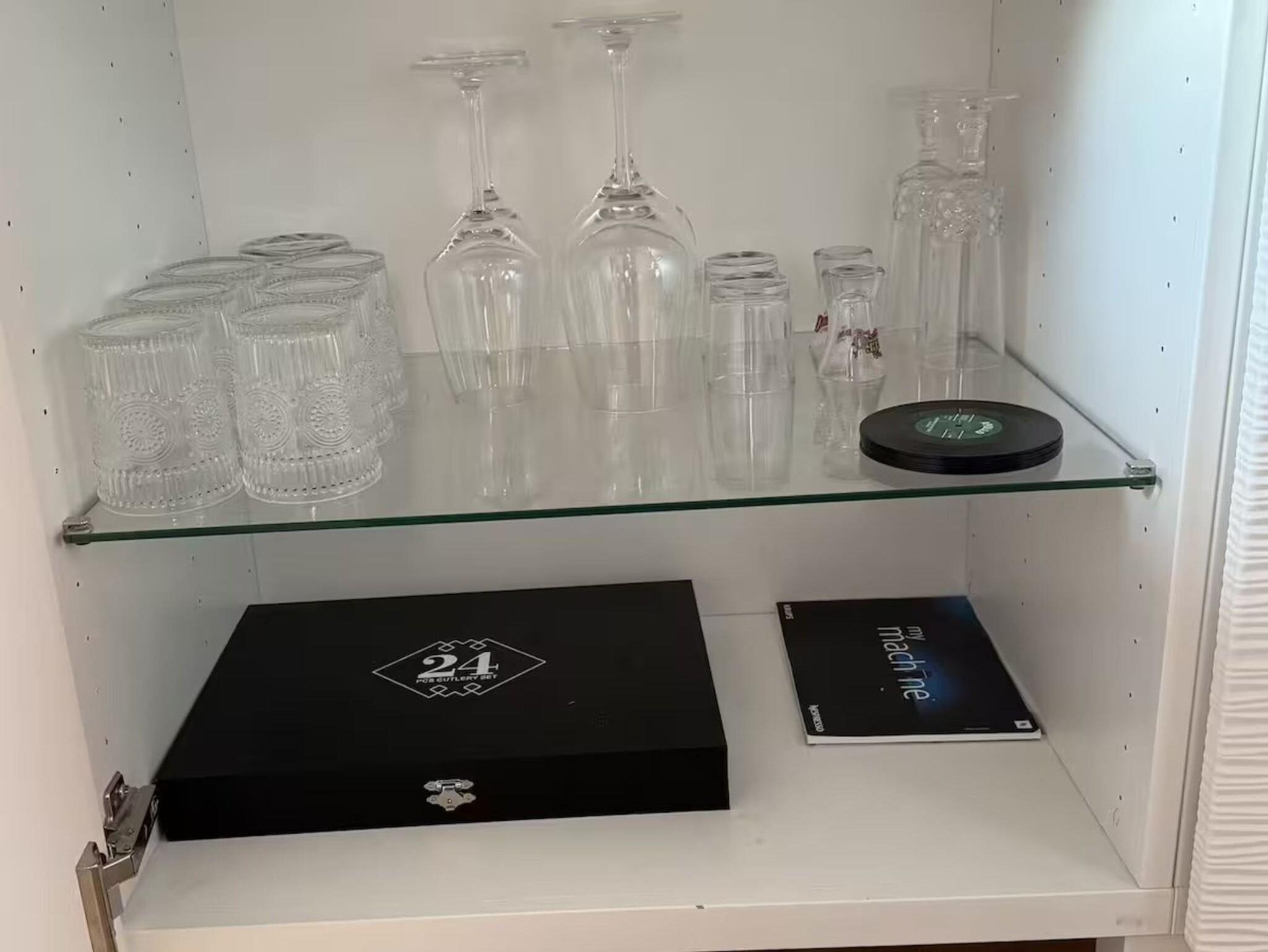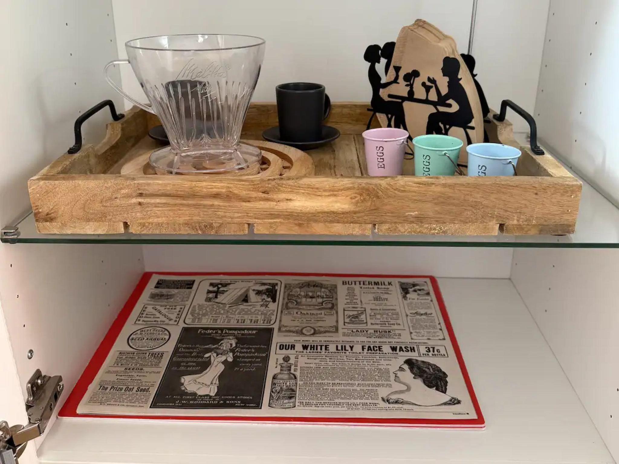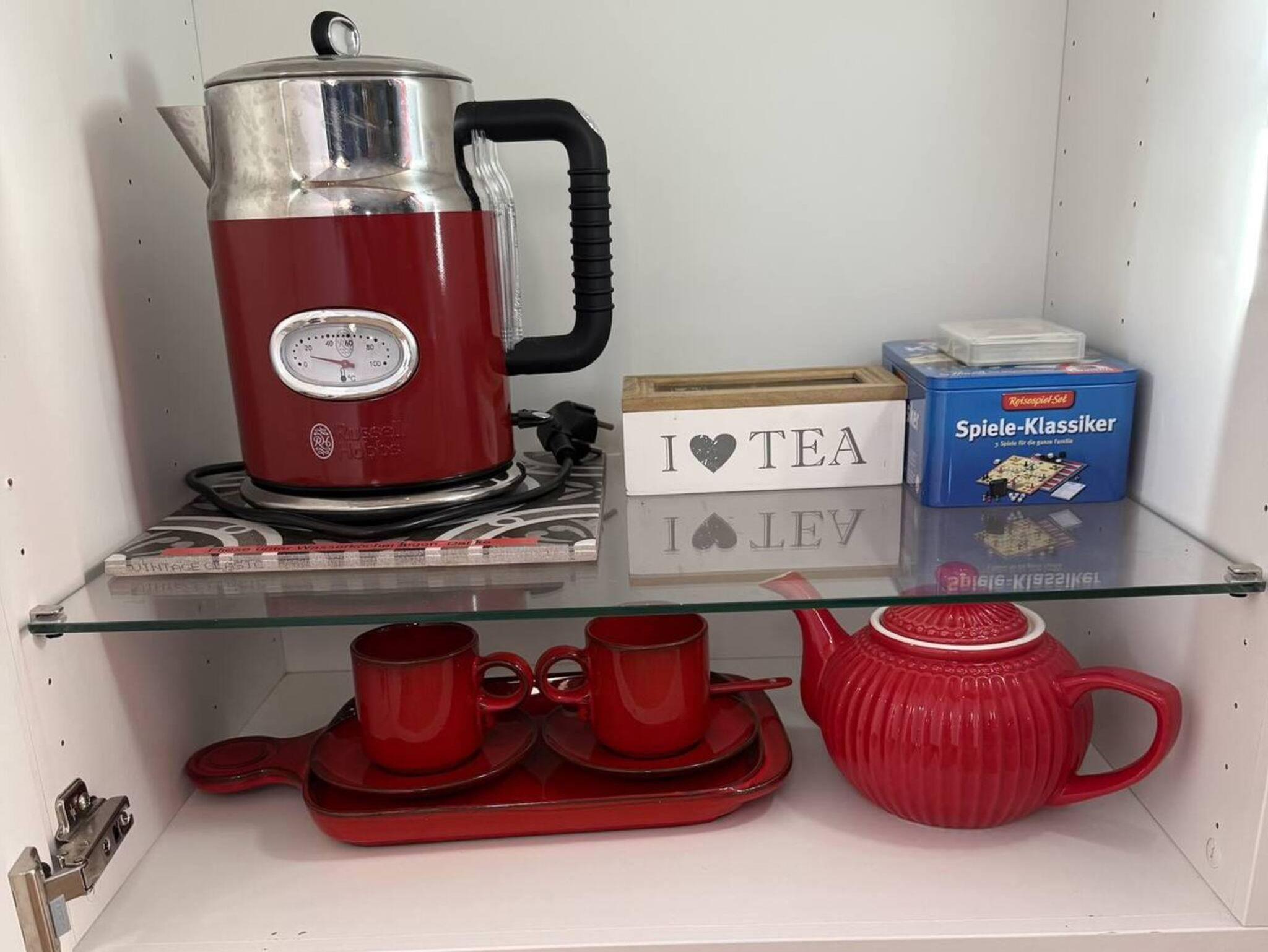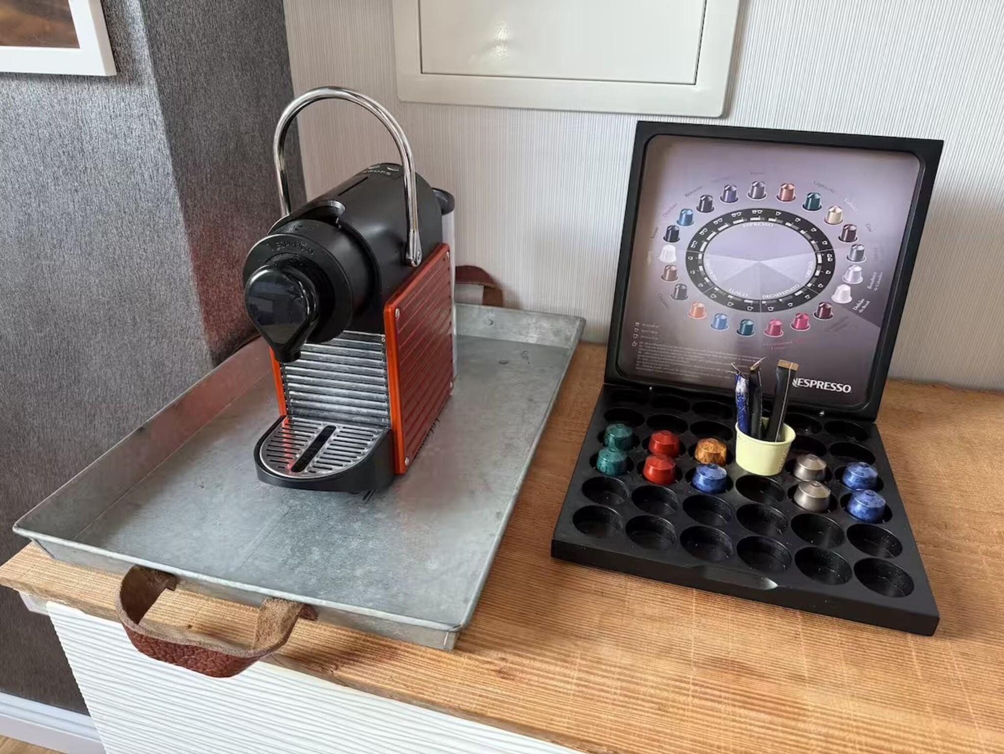 Für Kaffeegenuss sorgen eine Nespresso-Maschine mit Kapseln.