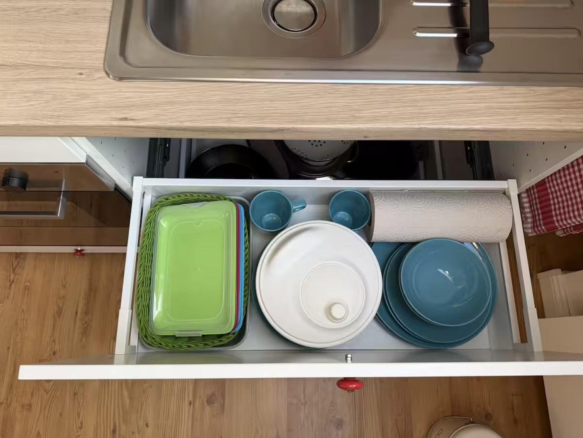 In der voll ausgestatteten Küche mit Esstisch findet ihr alles für eure Selbstversorgung: Kühlschrank, Mikrowelle, eine praktische Grundausstattung (Salz, Pfeffer, Öl, Essig), Küchenhelfer, Geschirr und Besteck. Für den perfekten Start in den Tag sorgt die Nespresso-Kaffeemaschine inklusive Kapseln ?.