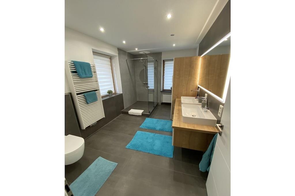 Auf den Bildern erhalten Sie erste Einblicke in unser Ferienhaus, welches erst vor 3 Jahren komplett kernsaniert wurde. Die 4 Schlafzimmer bieten Platz für 8 Personen. Das große Badezimmer ist mit einer Dusche, WC und einem Doppelwaschtisch ausgestattet. Die Küche ist vollausgestattet. An der Kochinsel stehen 4 Barhocker. Im Esszimmer bietet der große Esstisch für alle Gäste einen Sitzplatz. Im Außenbereich gibt es eine überdachte Sitzecke. Ihre Fahrräder können an einem sicheren Platz abgestellt werden.