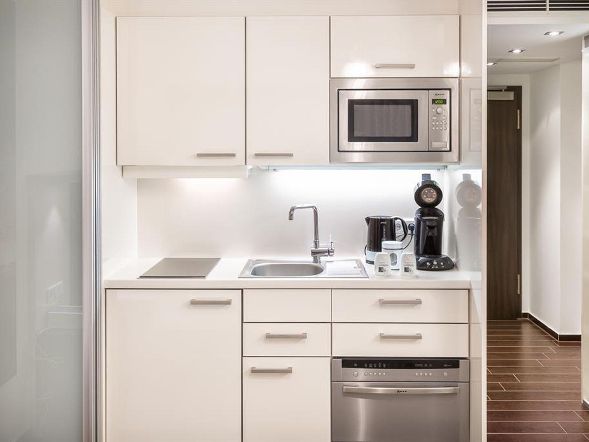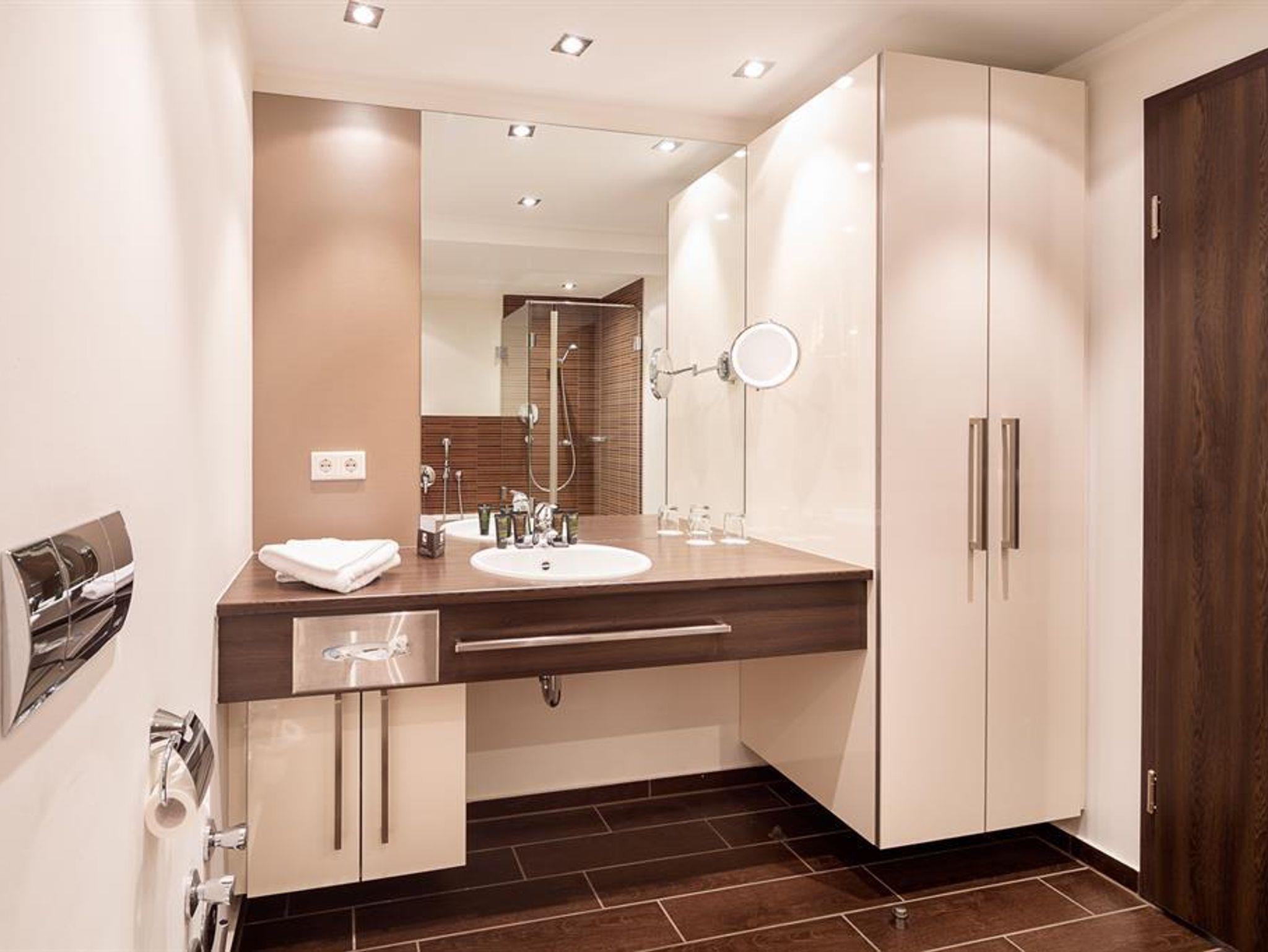 Ausstattung: moderne Raumgestaltung auf 26 qm, mit Arbeitsplatz und Polstermöbeln, 40 Zoll Full HD Flat Screen, DVD-Player, Radio, CD-Player, Safe. Komplett ausgestattete Kitchenette mit Spülmaschine, Mikrowelle, 2-Platten-Ceran-Herd, Kühlschrank mit Gefrierfach, Kaffeemaschine, Toaster, Bügelbrett, Bügeleisen, Geschirr, Töpfen, Wasserkocher und vielem mehr. Exklusiv gestaltetes Bad mit Dusche, Waschtisch, Kosmetikspiegel, ausziehbarem Wäschekorb, Föhn und viel Stauraum für persönliche Pflegeartikel. Babybett ist auf Anfrage möglich.