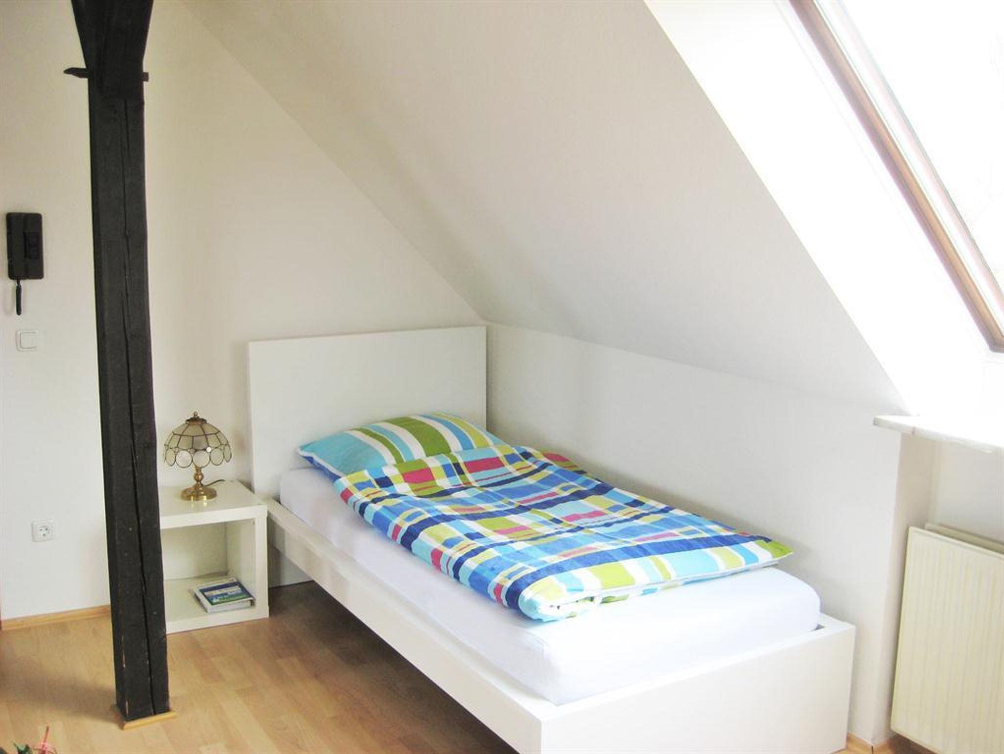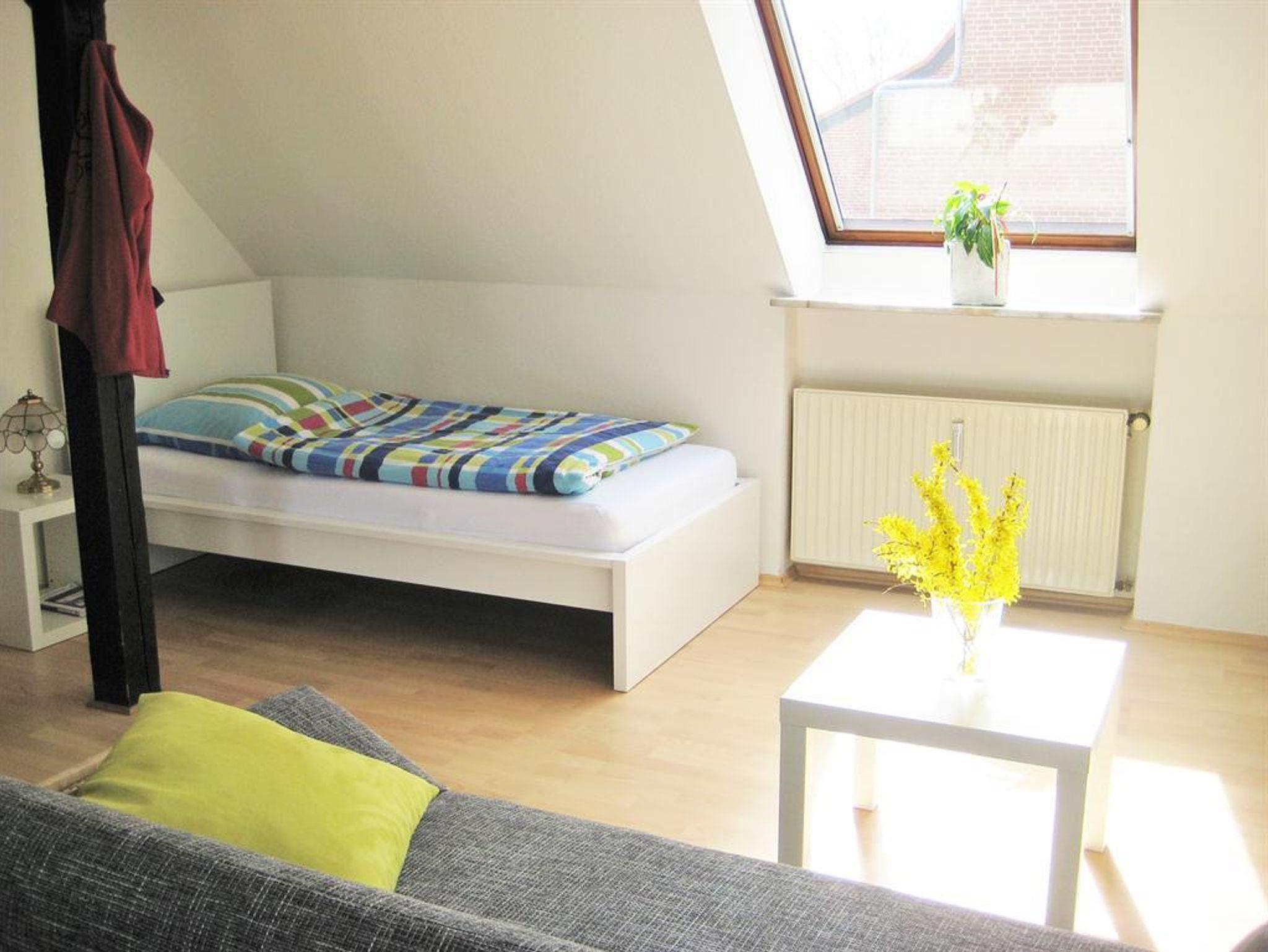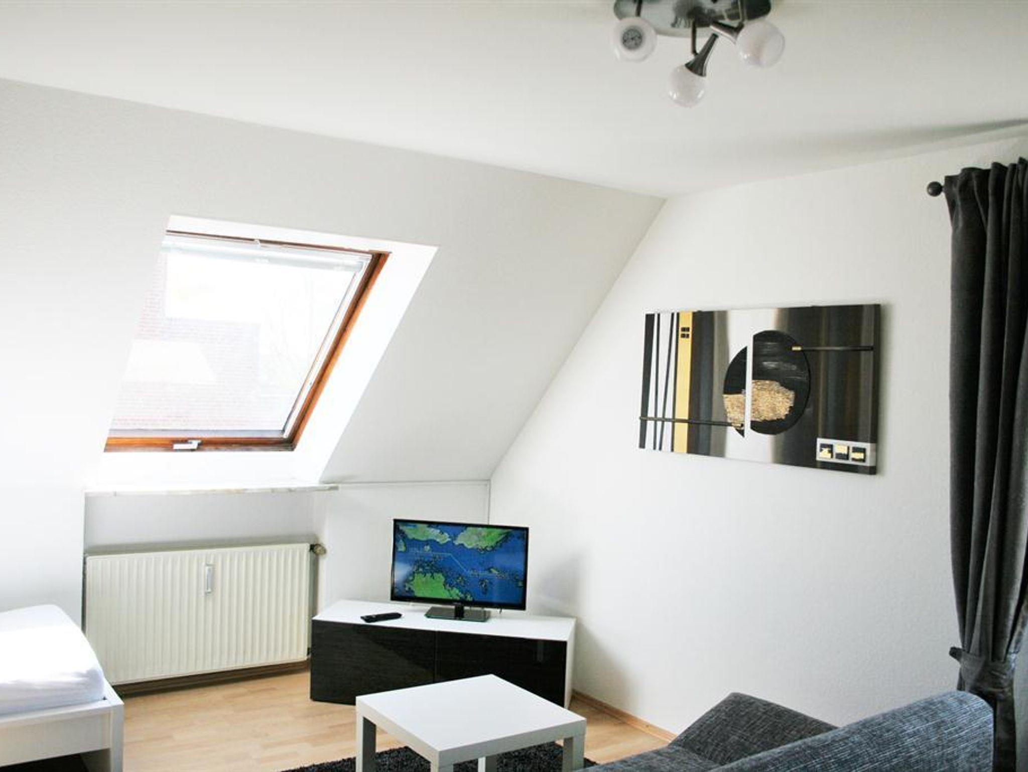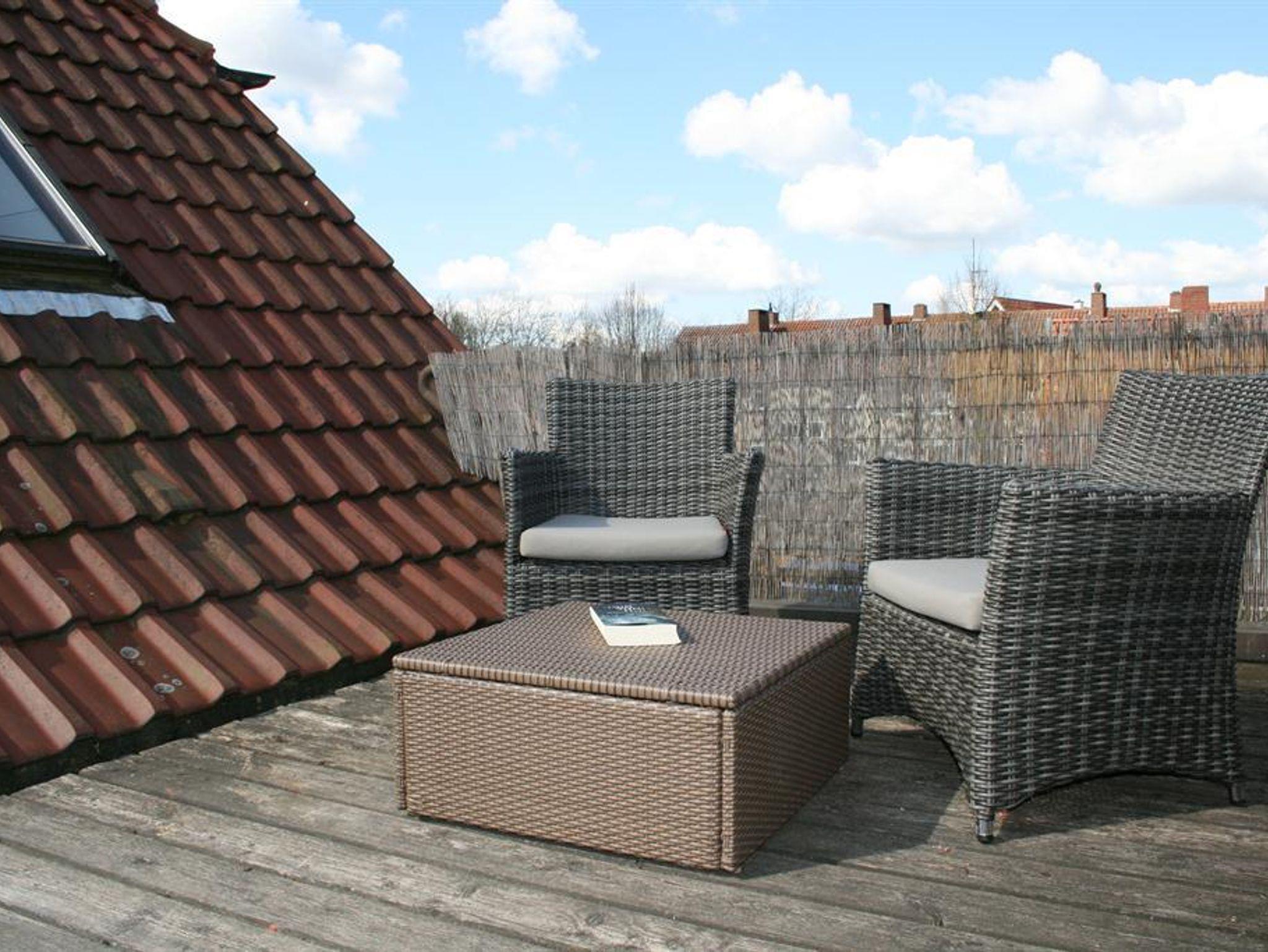 Das 30 qm große Einraumappartement ist mit einem Einzelbett und einem Schlafsofa (2,02 x 1,50 m) ausgestattet. Ein Flachbildschirm, eine schöne Essecke und eine komplett ausgestattete Küche mit Cerankochfeld, Backofen, Kühlschrank mit Gefrierfach, Mikrowelle, Kaffeemaschine und Wasserkocher ist selbstverständlich. Die sich an das Appartement anschließende möblierte Dachterrasse rundet Ihren erholsamen Aufenthalt ab.