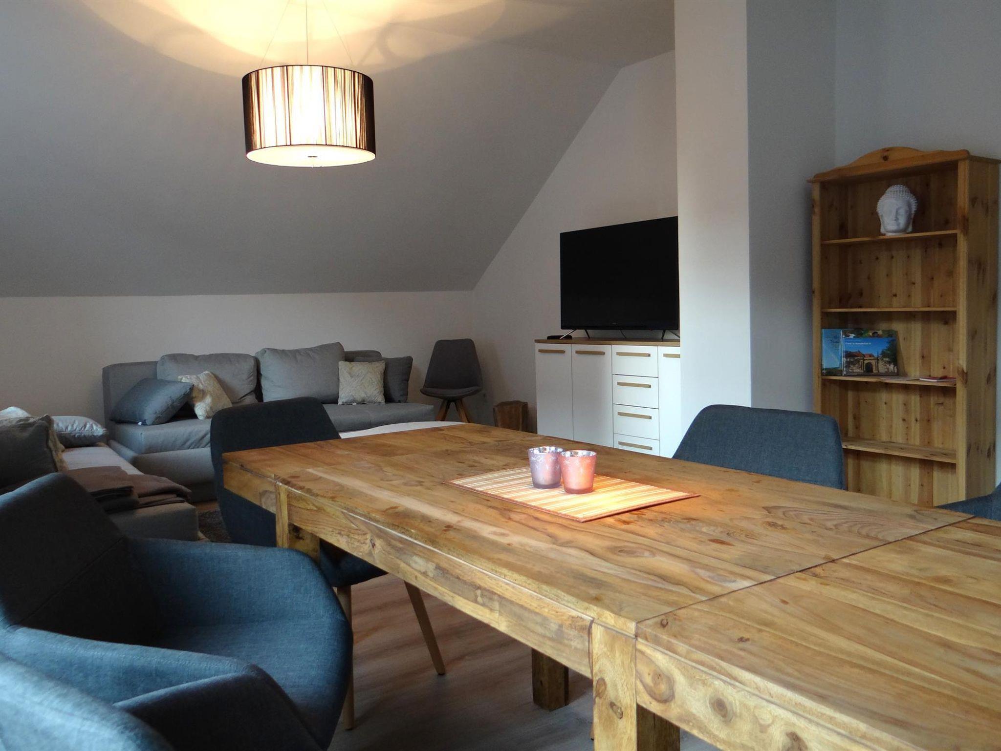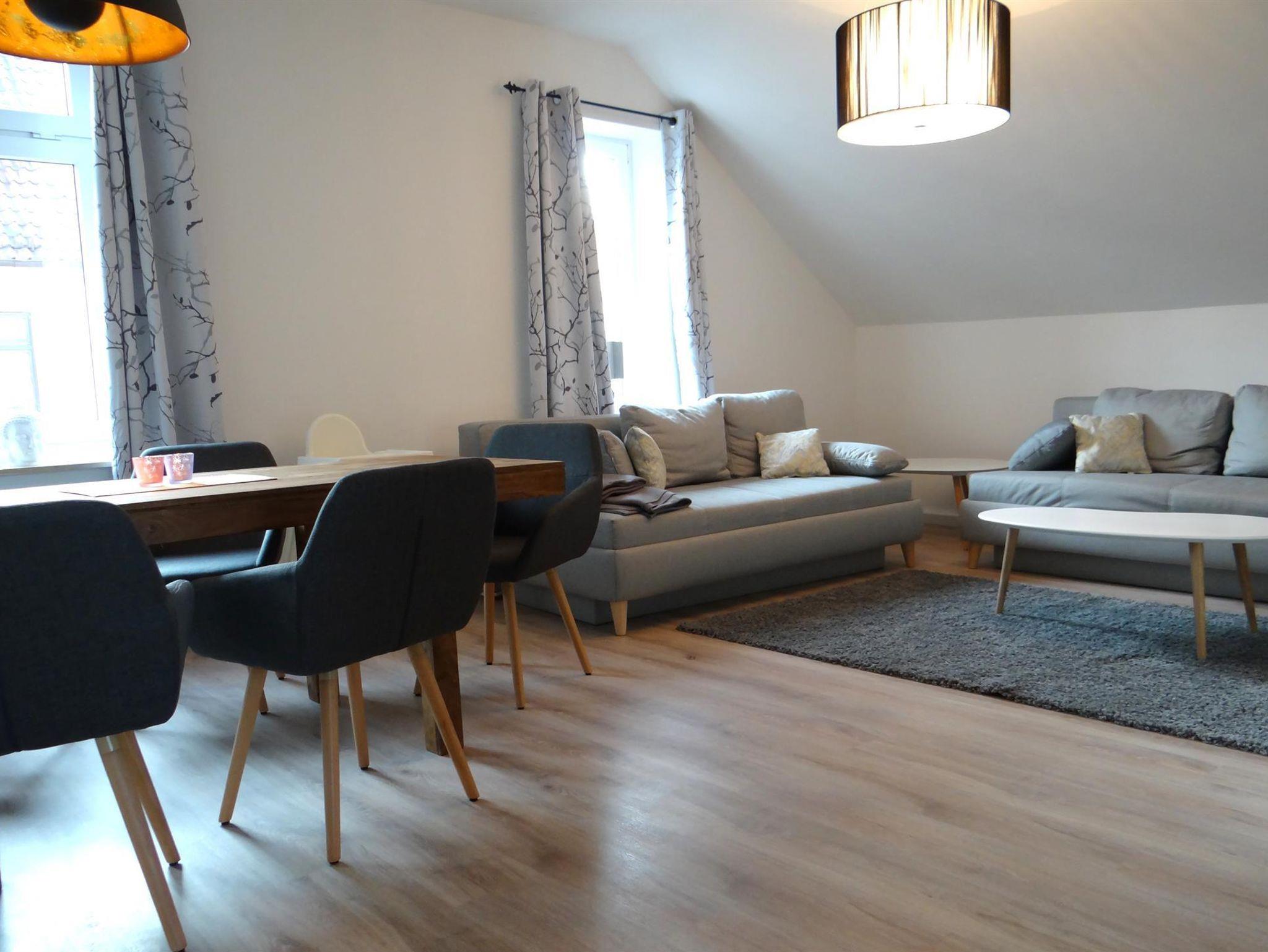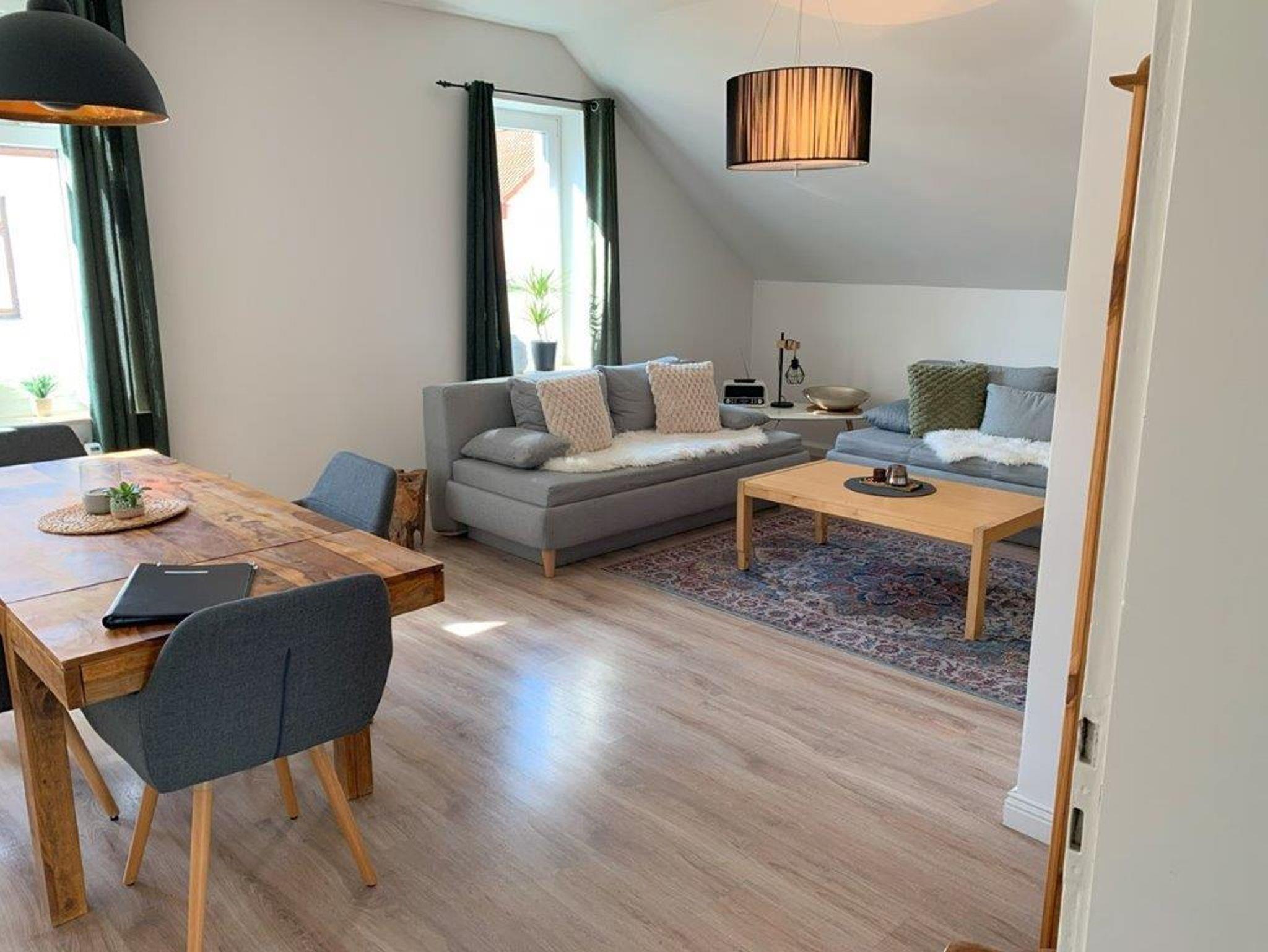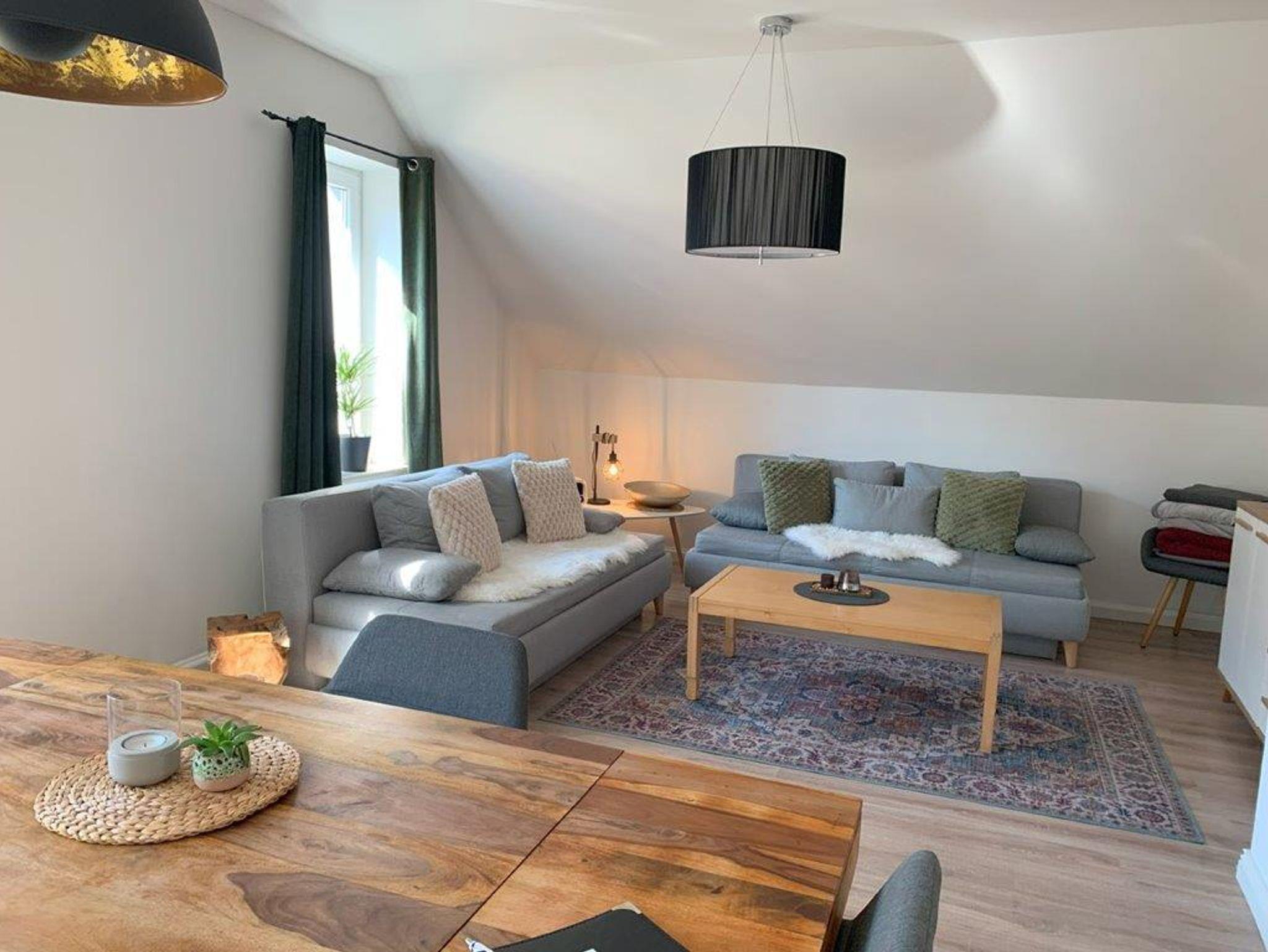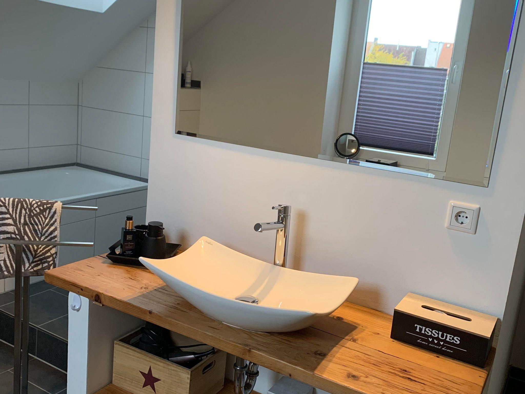 Sie erwartet ein Wohn-und Essbereich mit harmonisch fein abgestimmtem Interior, 2 Schlafzimmer, Küche, Bad (Badewanne u. Dusche). Die Wohnung befindet sich im 2. Obergeschoss in einem Altbau und wurde im April 2017 liebevoll saniert. Das charmante Bad mit Badewanne und begehbarer Wasserfalldusche und das große Wohnzimmer werden Sie begeistern. Alle Fußböden, Türen, Leitungen und auch das Bad sind neu. Die Küche ist mit Standardgeräten inklusive einer Spülmaschine ausgestattet. Eine Waschmaschine steht Ihnen im Keller zur Verfügung. WLAN nutzen Sie in allen Bereichen der Unterkunft kostenfrei. Die Unterkunft verfügt über einen Flachbild-TV, Sitz- und Essbereich in der Küche und ist gut ausgestattet: Backofen, Toaster, einem Kühlschrank, einem Herd und Kaffeemaschine (Senseo). Das eigene Bad ist mit einem Haartrockner ausgestattet.