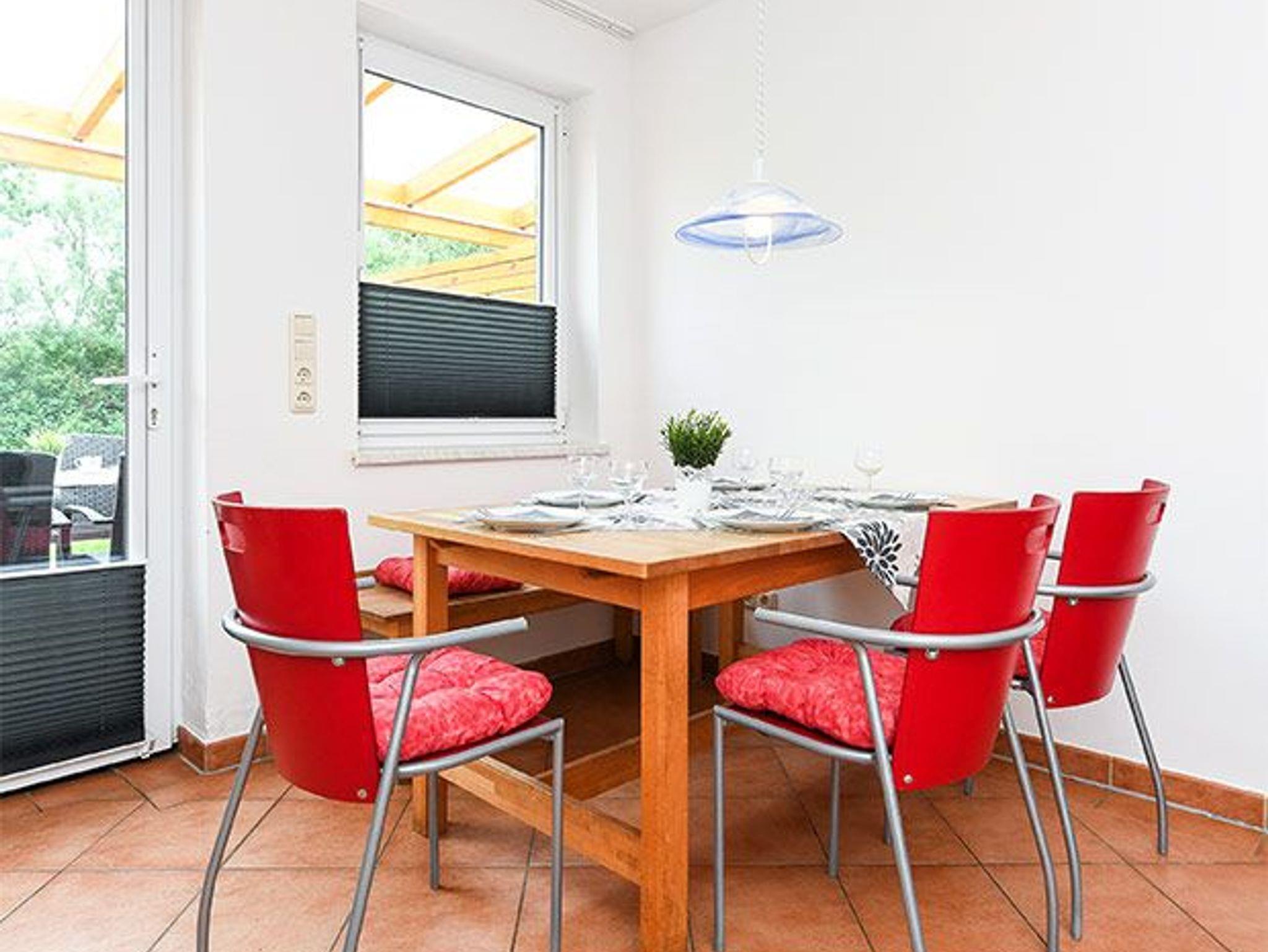 Größe ca. 60 Quadratmeter, Wohnzimmer, Küche, Schlafzimmer, zweites separates Schlafzimmer/Kinderzimmer, Badezimmer mit Dusche, Waschtisch und WC, Erdgeschoss, Terrasse, optimal für 2 bis 5 Personen und zusätzlich ein Kleinkind.