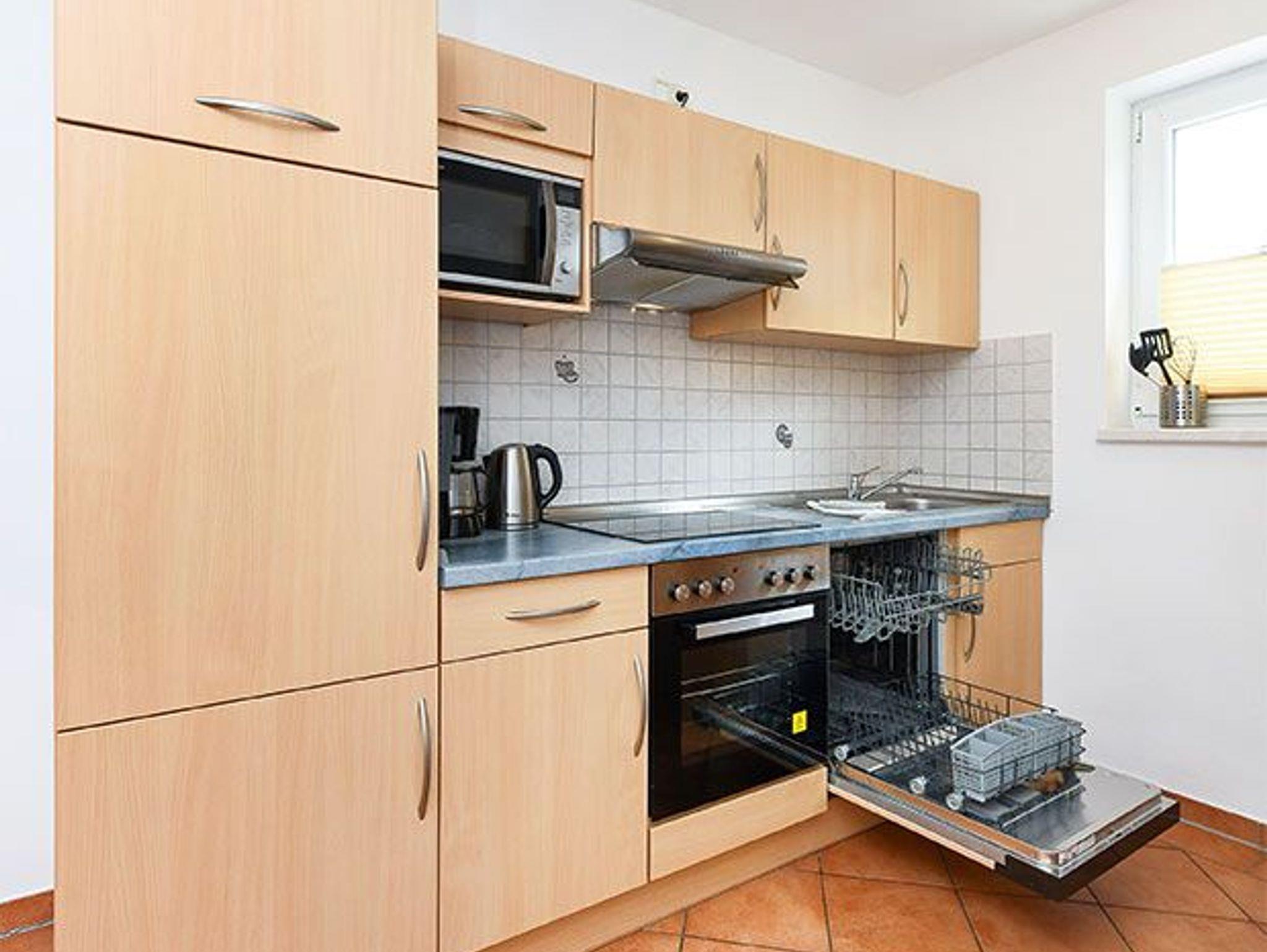 Größe ca. 60 Quadratmeter, Wohnzimmer mit integrierter Küche, Schlafzimmer, zweites separates Schlafzimmer/Kinderzimmer, Badezimmer mit Dusche, Waschtisch und WC, Erdgeschoss, Terrasse, optimal für 2 bis 5 Personen und zusätzlich ein Kleinkind.