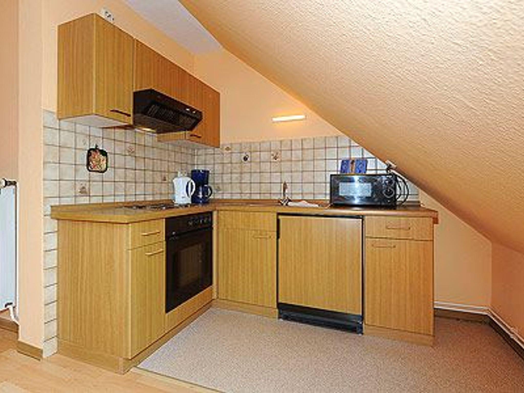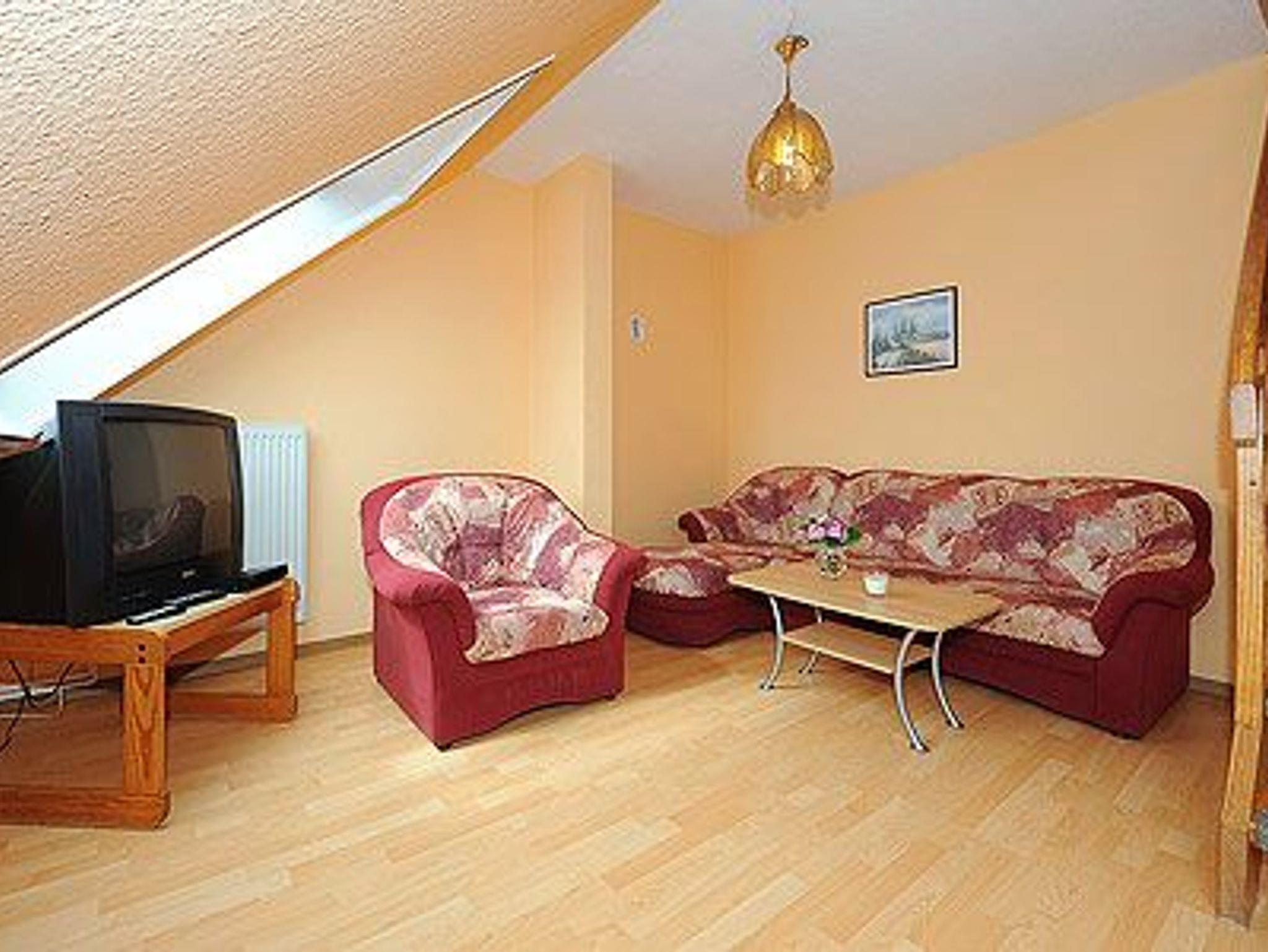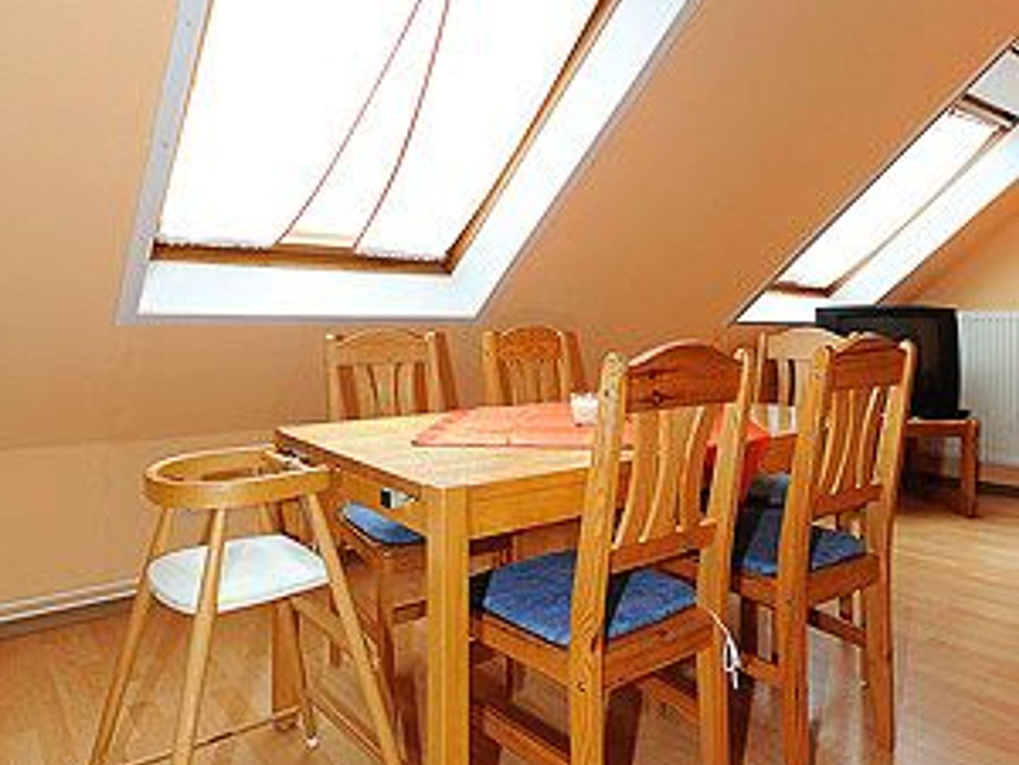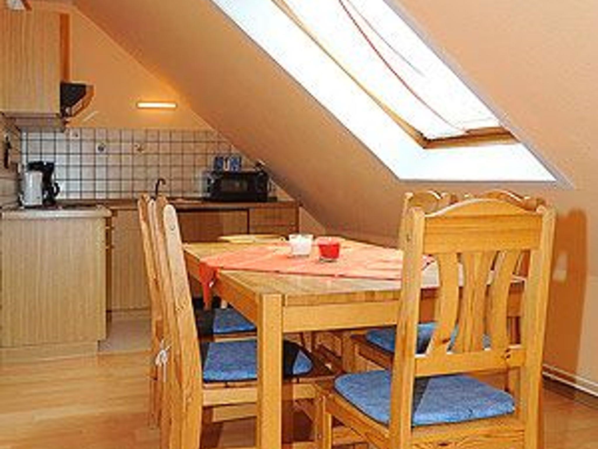 Größe ca. 65 Quadratmeter, Wohnraum mit integrierter Küche, Schlafzimmer, zweites separates, Schlafzimmer/Kinderzimmer, Badezimmer mit Dusche, Waschtisch und WC, Obergeschoss, Terrasse (Sitzgruppe im Garten), optimal für 2 bis 5 Personen und zusätzlich ein Kleinkind.