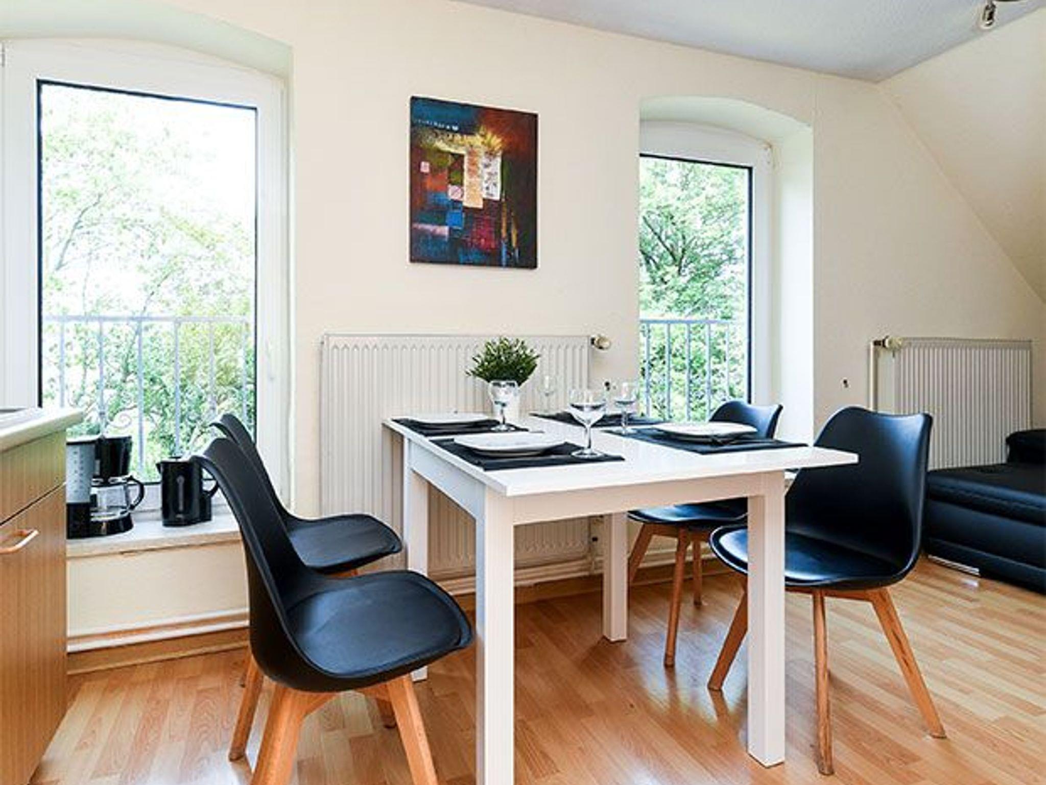 Größe ca. 65 Quadratmeter, Wohnraum mit integrierter Küche, Schlafzimmer, zweites separates, Schlafzimmer/Kinderzimmer, Badezimmer mit Dusche, Waschtisch und WC, Obergeschoss, Terrasse (Sitzgruppe im Garten), optimal für 2 bis 5 Personen und zusätzlich ein Kleinkind.