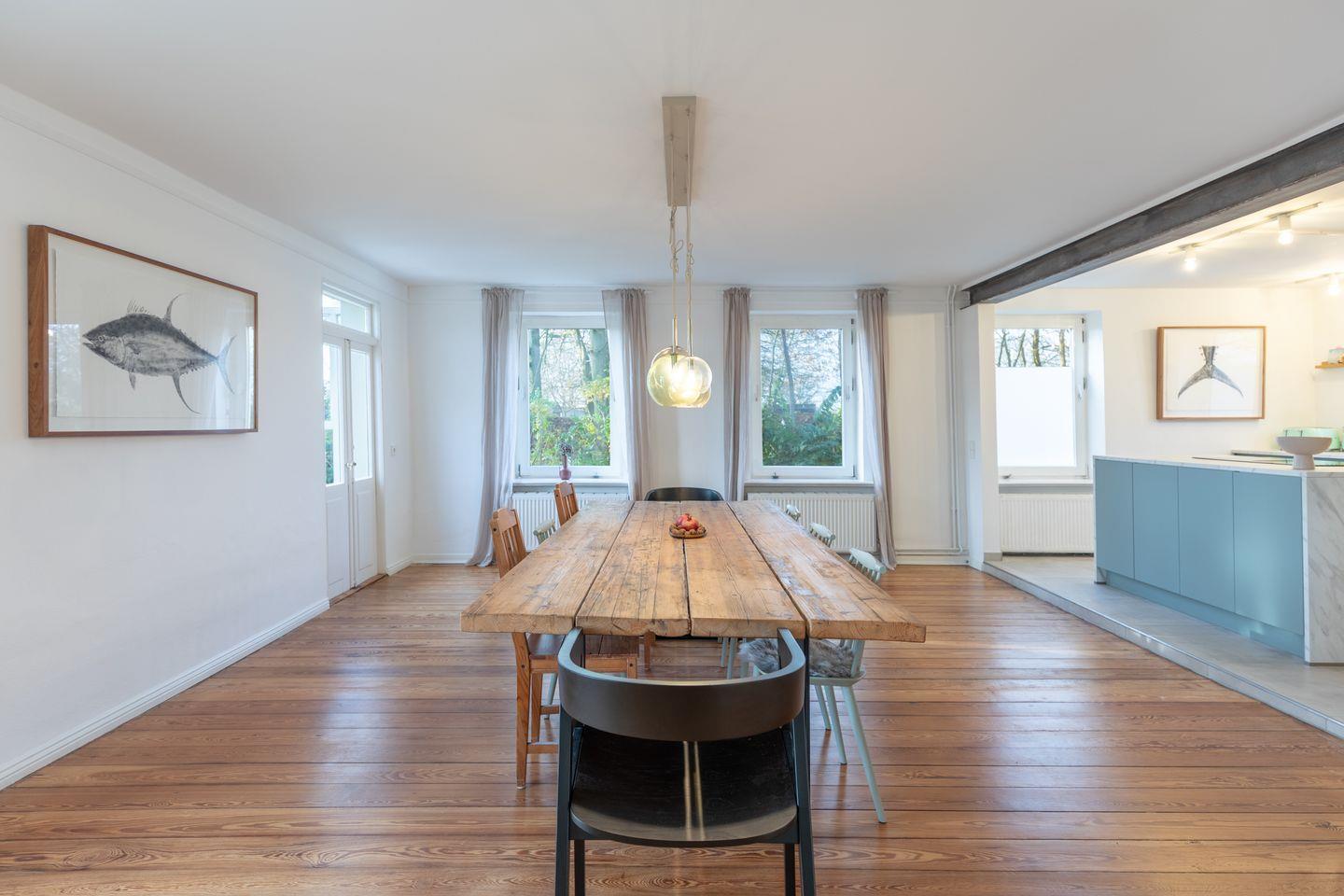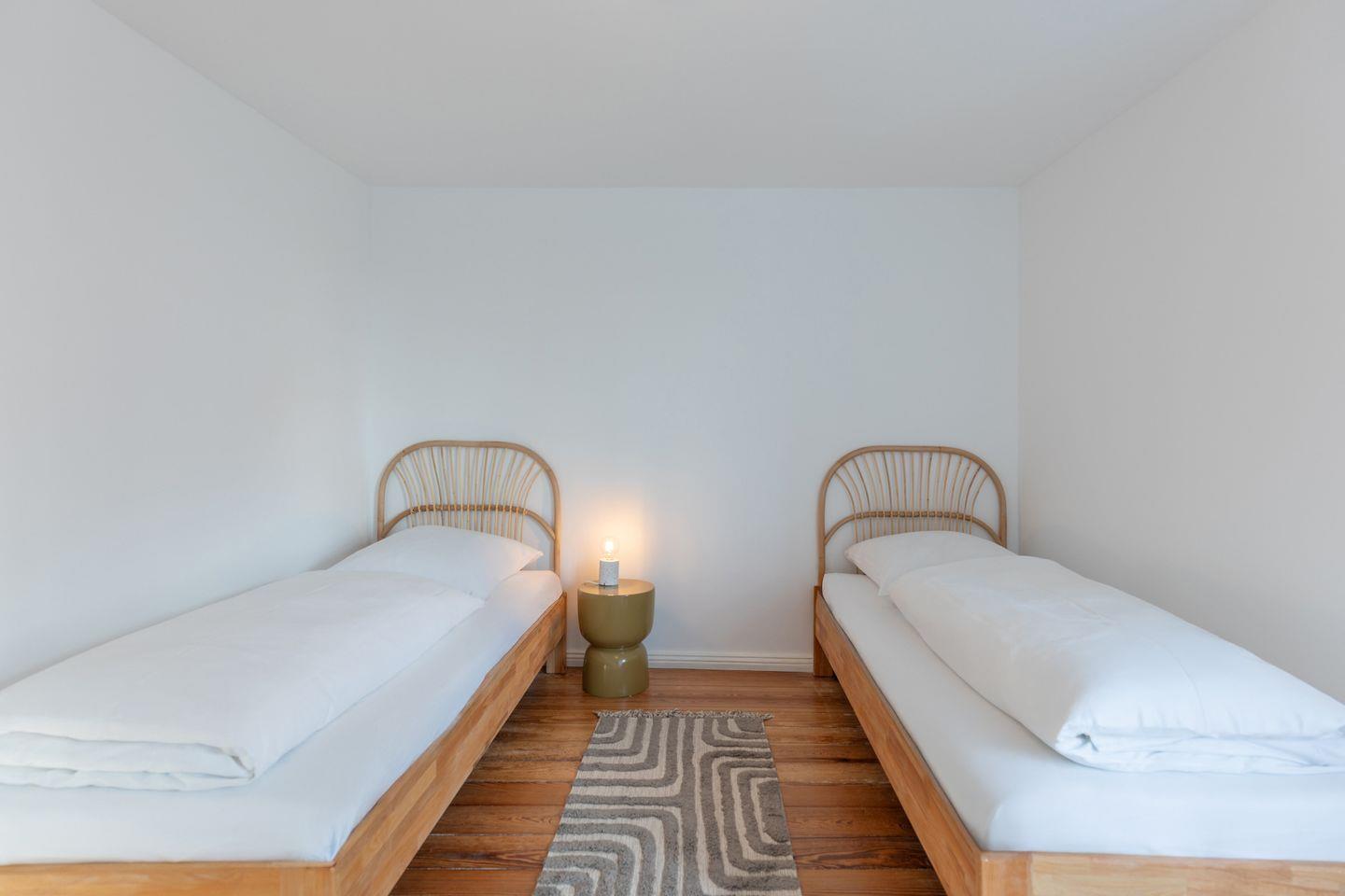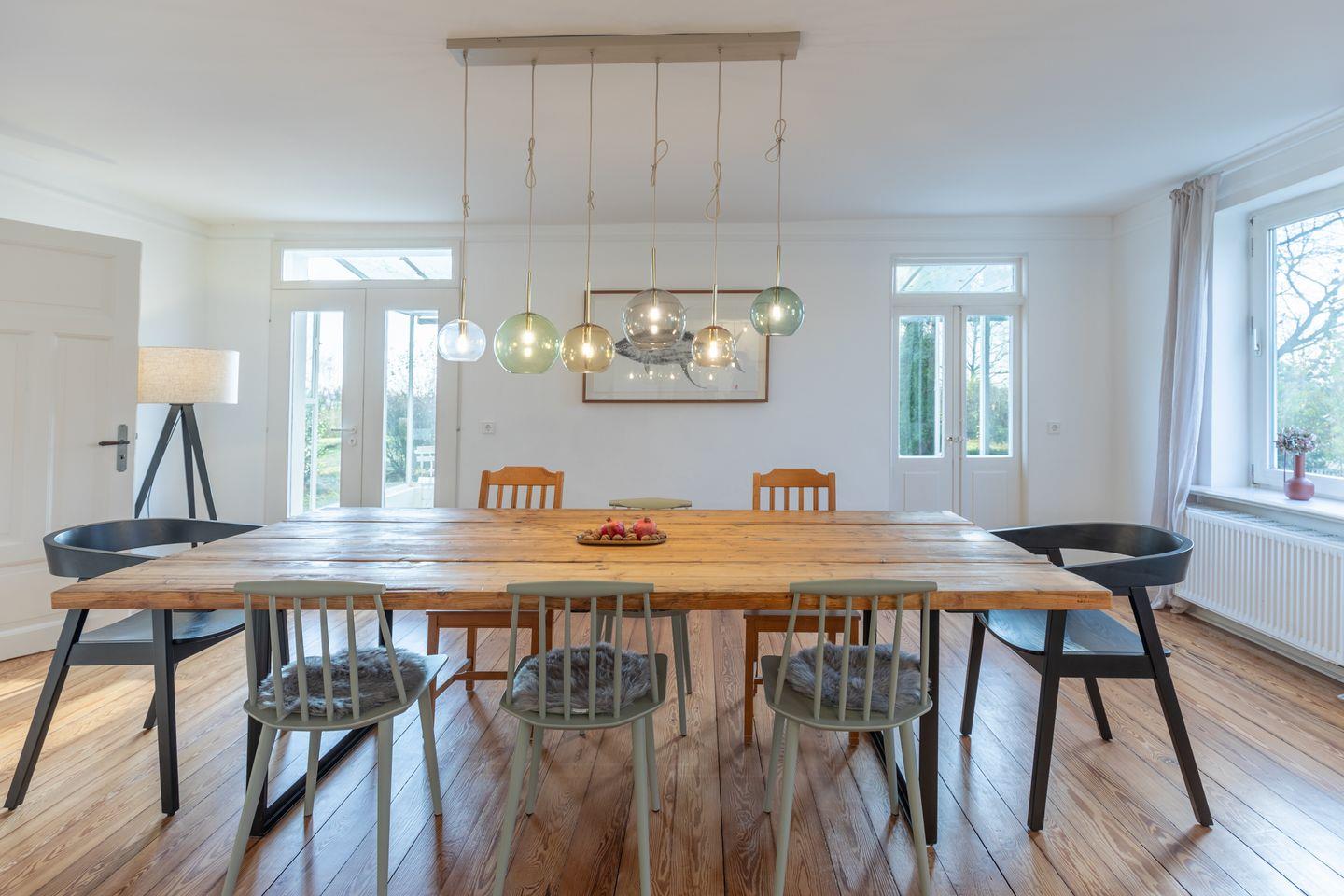 Die Villa Morgenthau aus dem Jahr 1867 wurde 2024 umfassend renoviert und erstrahlt nun in neuem Glanz. Auf 200 m² Wohnfläche finden bis zu sieben Personen Platz, ideal für Familien oder Gruppen. Vier stilvoll eingerichtete Schlafzimmer, zwei moderne Badezimmer (eins mit bodengleicher Dusche), und ein gemütliches Wohnzimmer mit Kaminofen schaffen eine behagliche Atmosphäre.
