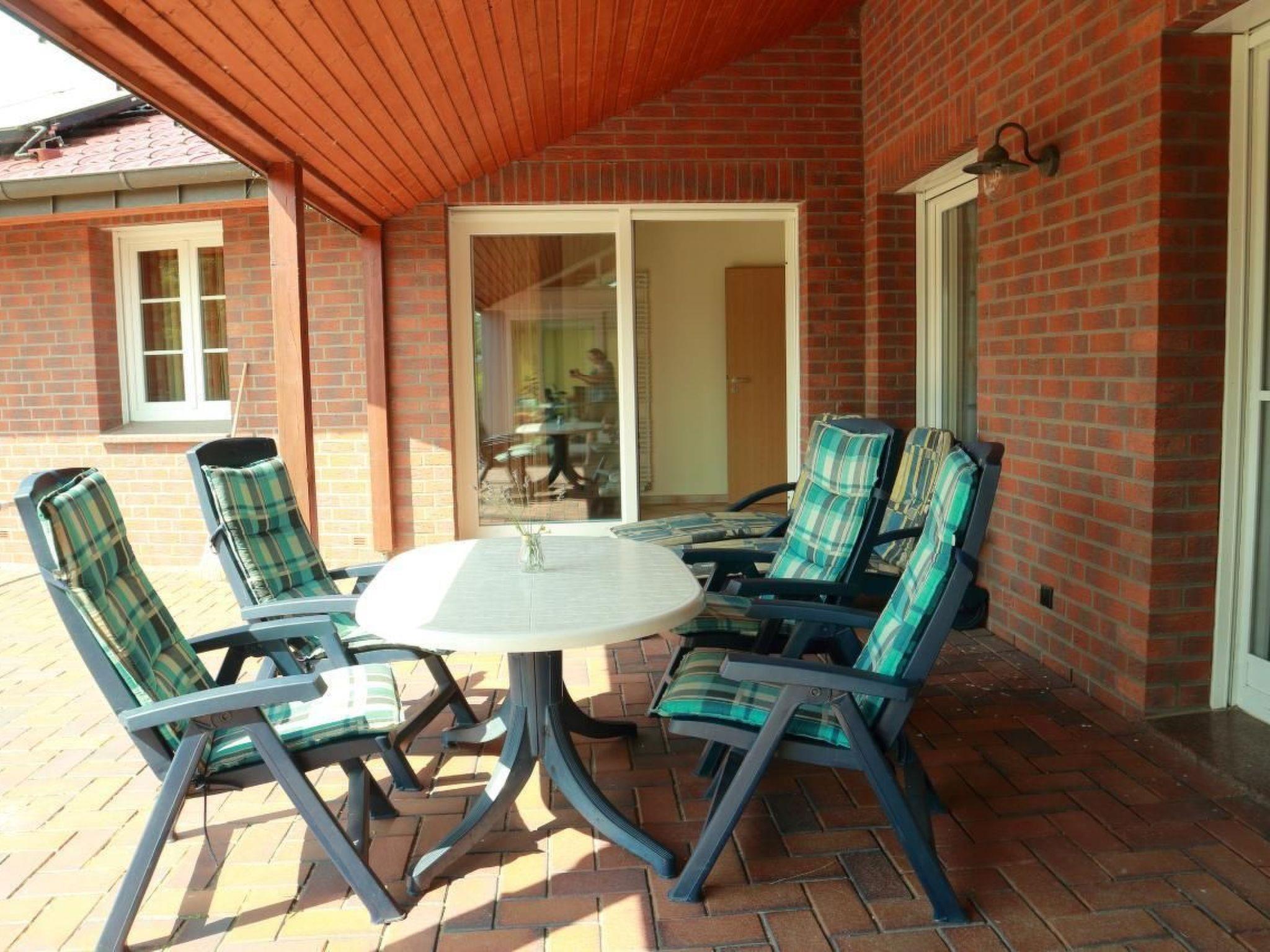 * Large covered terrace with garden furniture.