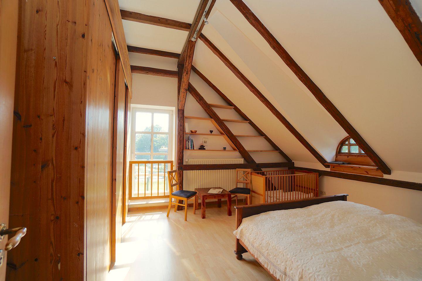 Das Haupthaus befindet sich mit seinen 230qm Wohnfläche auf dem historischen Teil der Hofanlage, umgeben von Pflastersteinauffahrt, Schubkarre und natürlich den Tieren. Das große Haus bietet auf insgesamt vier Schlafzimmer verteilt Platz für bis zu neun Personen. Hier finden nicht nur Großfamilien und Gruppen ausreichend Platz, das Ferienhaus eignet sich auch perfekt für den Urlaub zweier befreundeter Familien oder einem Generationsurlaub.