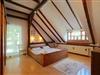 Auch das Obergeschoss des Hauses ist sehr geräumig, eine weitere gemütliche Sofaecke bietet sich als Rückzugsort oder zum Fernsehen an. Die drei im Obergeschoss gelegenen Schlafzimmer, überzeugen alle mit ihrer rustikalen, nachhaltigen Einrichtung und den hellen, freundlichen Räumen. Eines der Schlafzimmer ist mit einem dritten Bett ausgestattet und daher optimal als Familien- oder Kinderzimmer geeignet.