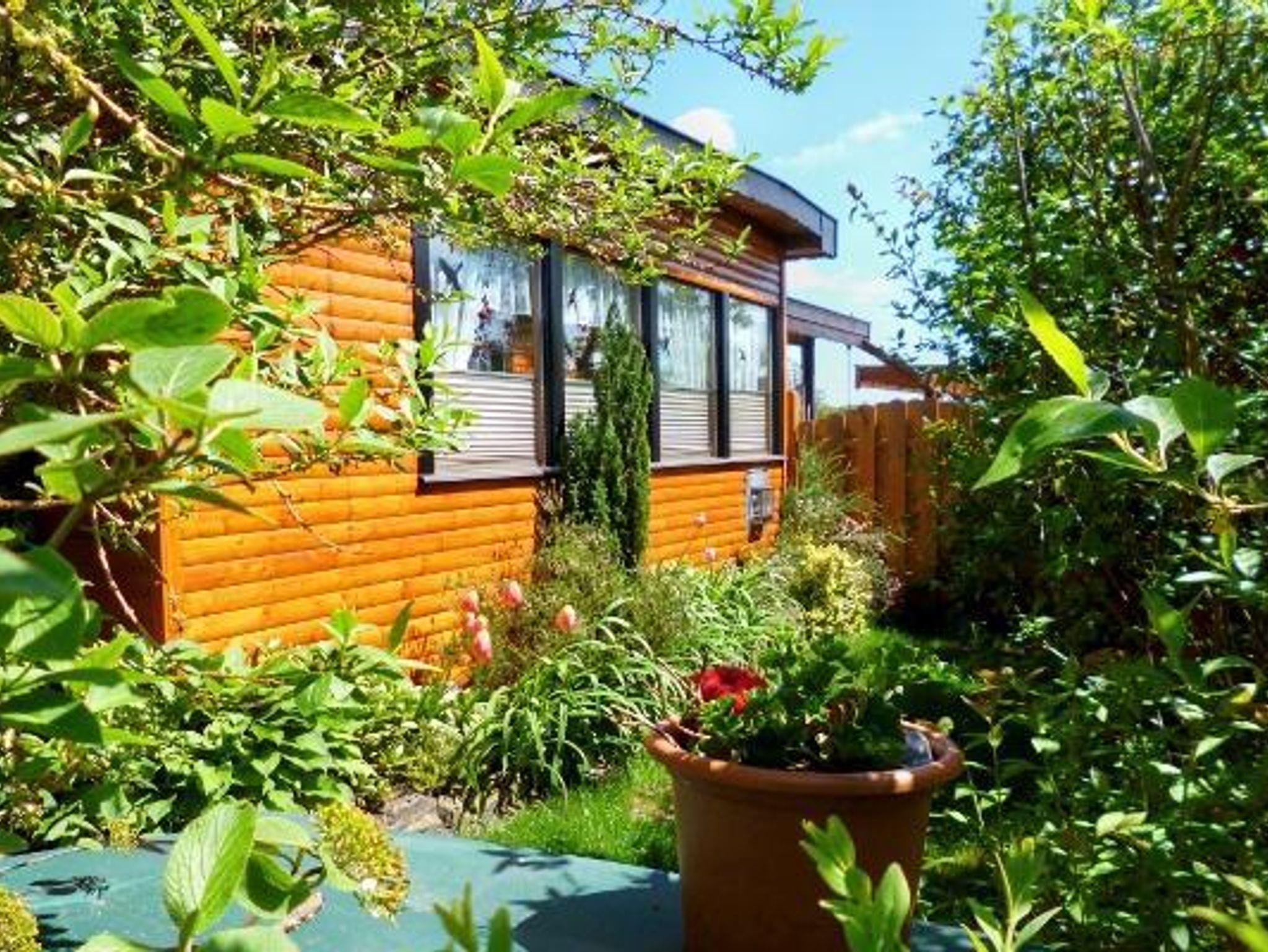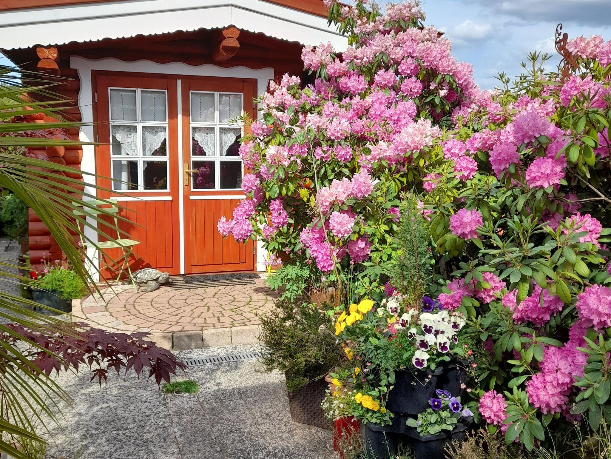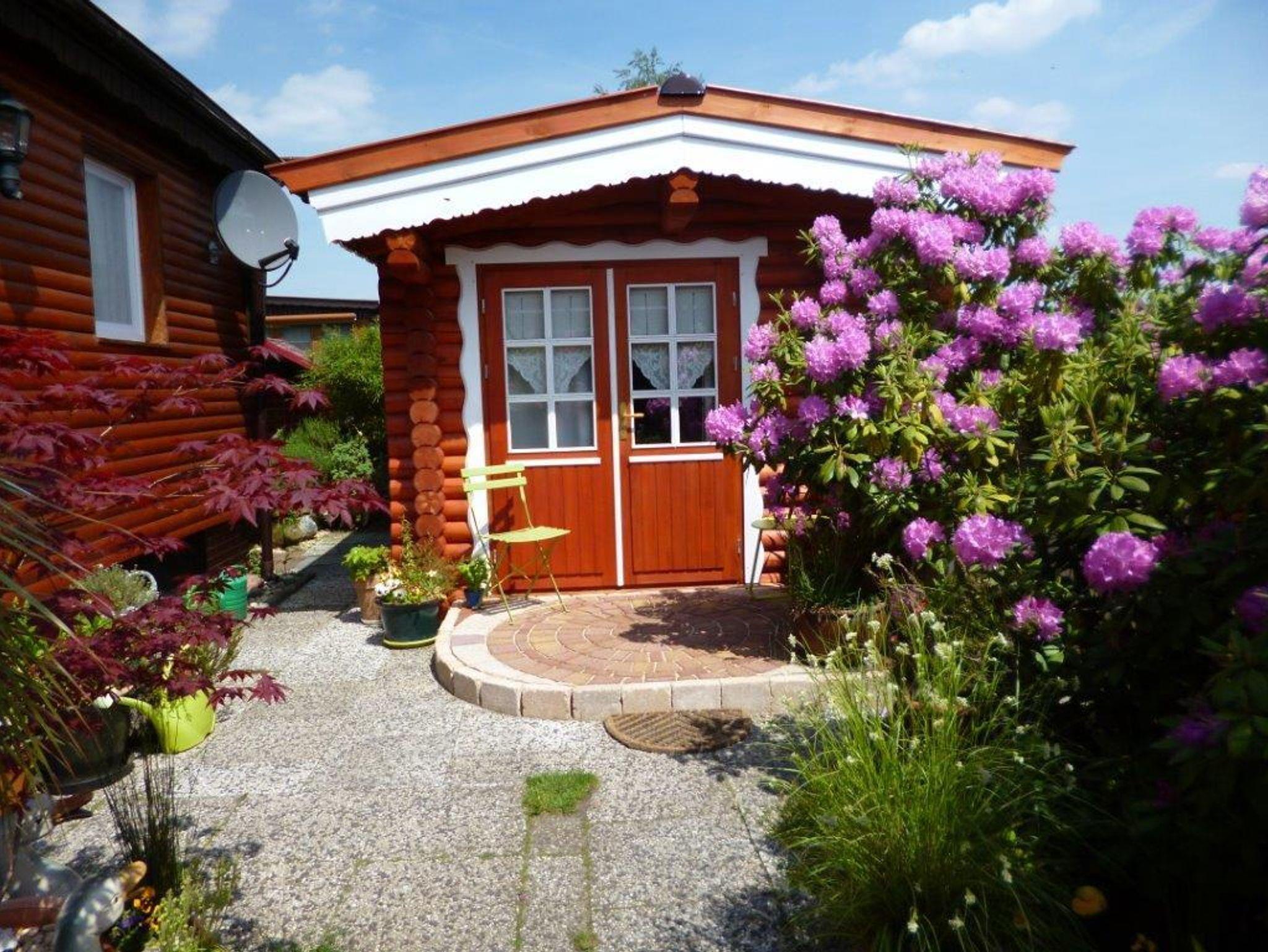 Im Eingangsbereich zum FH empfängt Sie gleich ein Kräutergarten, dessen Kräuter mitbenutzt werden können. Wenn Sie entspannt auf der überdachten Terrasse sitzen, gucken Sie auf einen kleinen Wasserlauf, der in den kleinen angrenzenden Teich führt und können den freien Blick über das Gartentörchen, über die Wiese zum See genießen. Auch der Freisitz ist nicht nur urig, sondern auch überdacht und vor Blicken von außen geschützt.