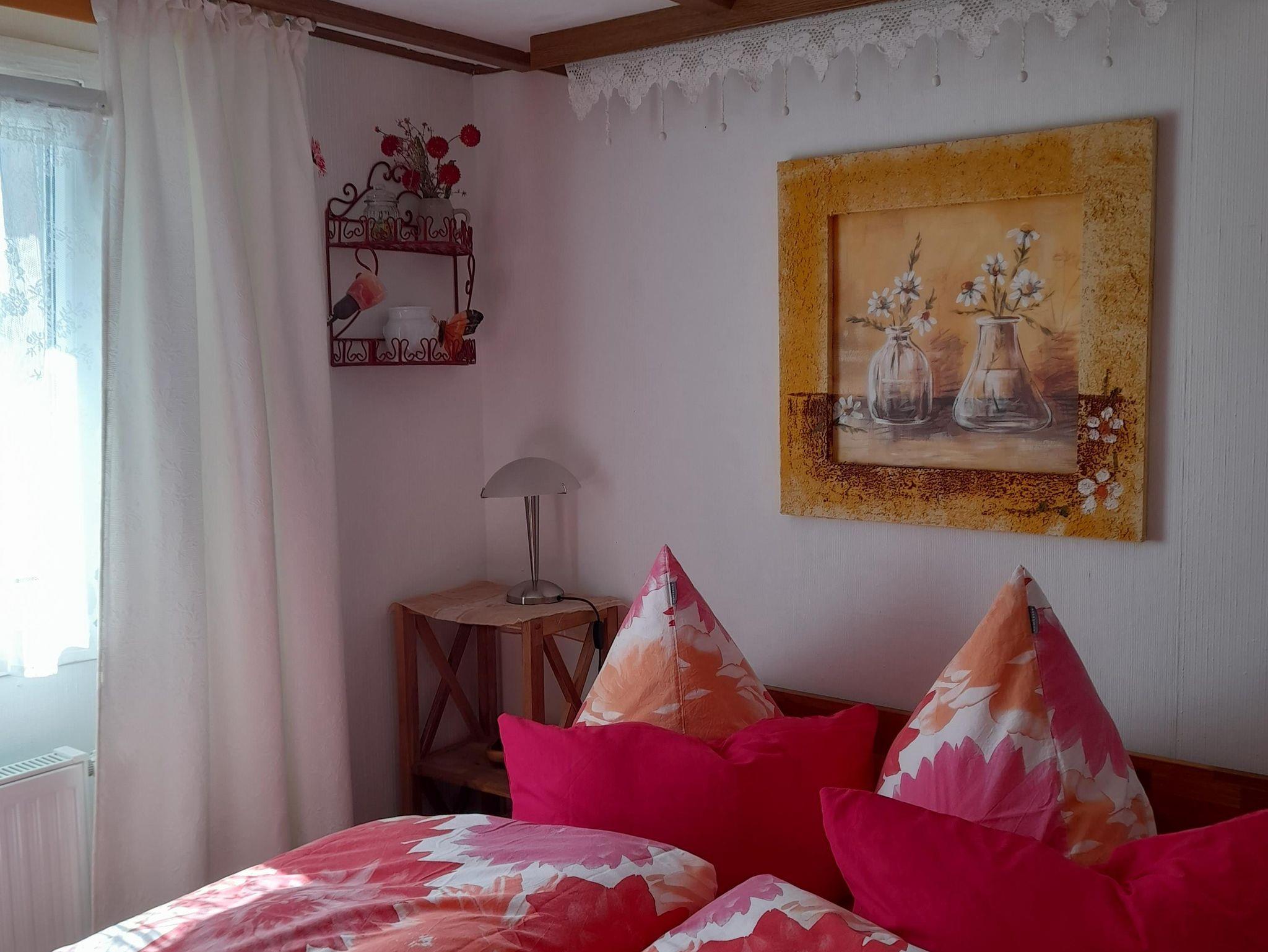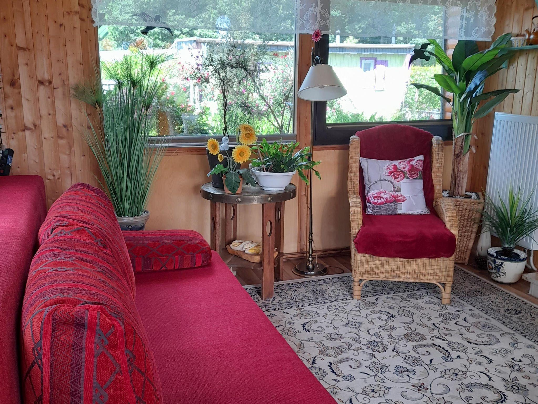 Ferienhaus für 4 Personen mit separatem Schlafhäuschen (9 m²) auf dem 250 m² großen Grundstück. Erster Wohnraum: große Couch, HD-SAT-TV, Stereoanlage mit CD, div. Mobiliar. Zweiter Wohnraum: ist durch viele Fenster und Ausgangstür wintergartenähnlich großzügig gestaltet und bietet durch die räumliche Trennung sowohl einen zusätzlichen Schlafraum für 2 Personen. Beinhaltet Schlafsofa, mit großem Esstisch , Apothekerschrank (div. Tischdecken bzw. Platzdeckchen vorhanden) und gemütliche Sitzecke mit „Oma“- Korbsessel. Beide Wohnräume sind durch eine große Doppeltür miteinander verbunden. Beim Essen haben Sie den Blick zum See, bzw. in den warmen Jahreszeiten auch von der Terrasse aus.