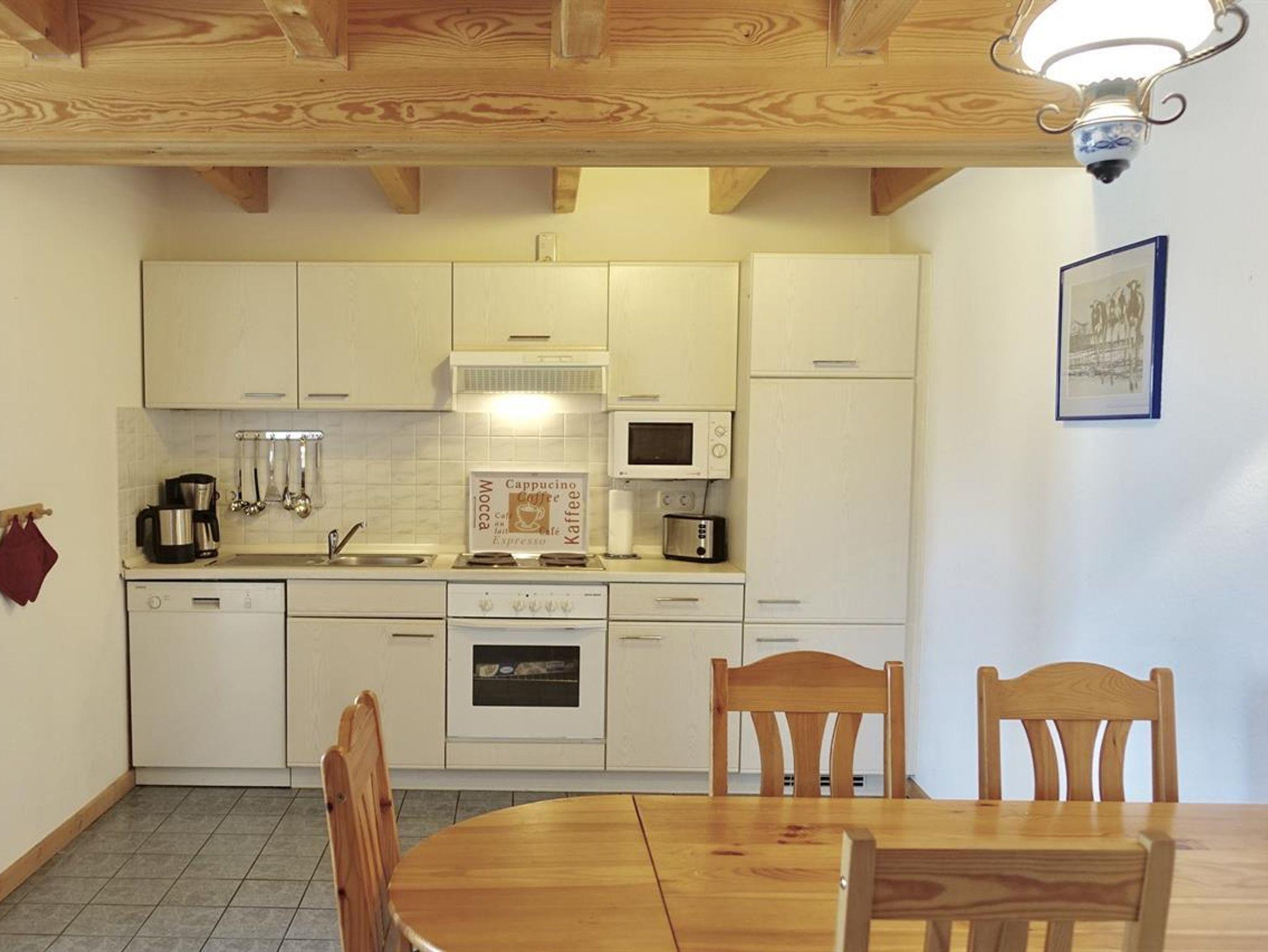 Im Erdgeschoss befindet sich die komplett ausgestattete offene Wohnküche (Backofen, 4-Platten-Herd, Mikrowelle, Kaffeemaschine, Toaster, Geschirrspüler, Kühlschrank) mit einem Essbereich, ein Abstellraum, eine großzügige Sofalandschaft mit TV und CD-Player/Radio sowie ein großes Badezimmer mit Dusche und WC.