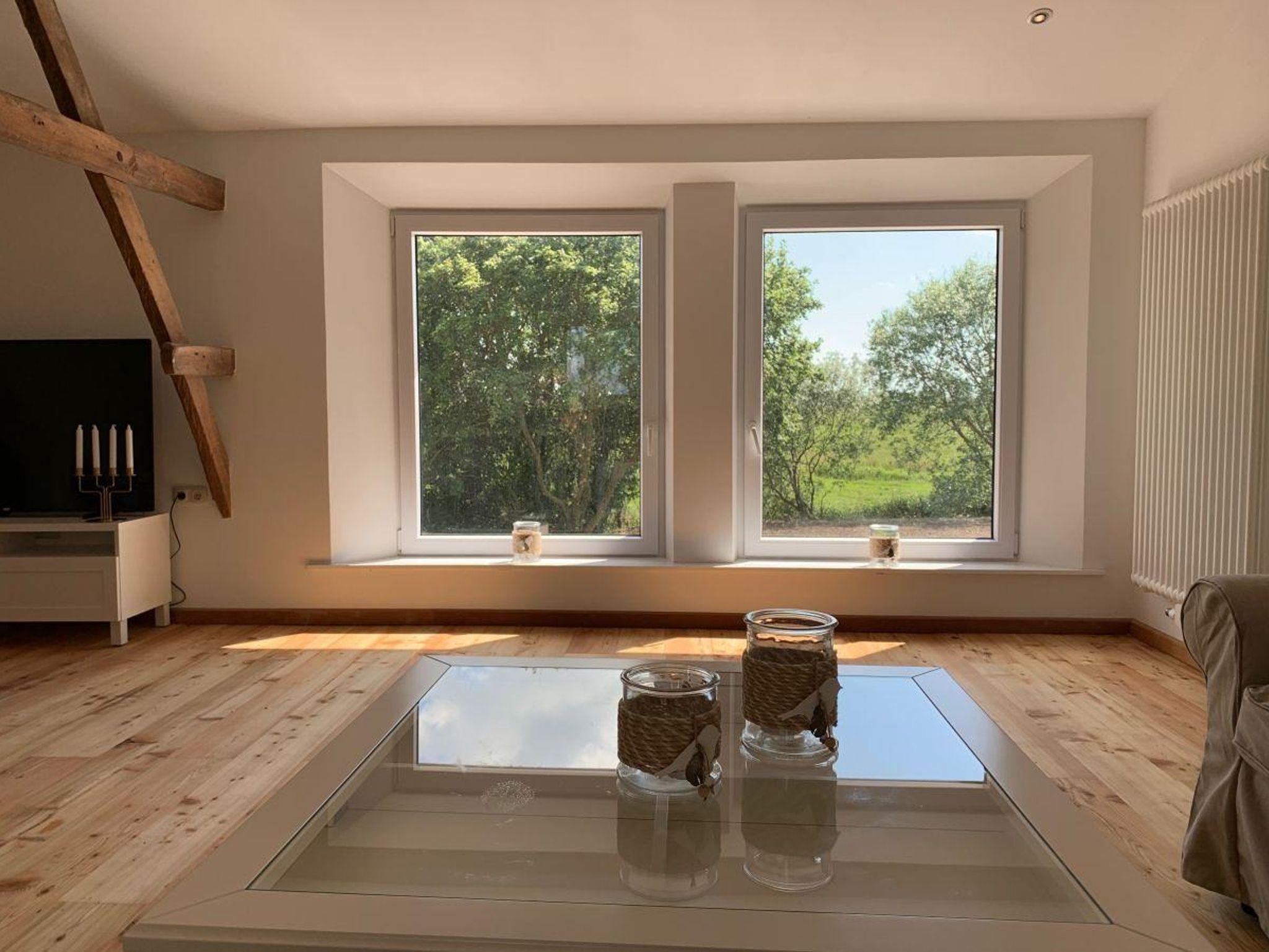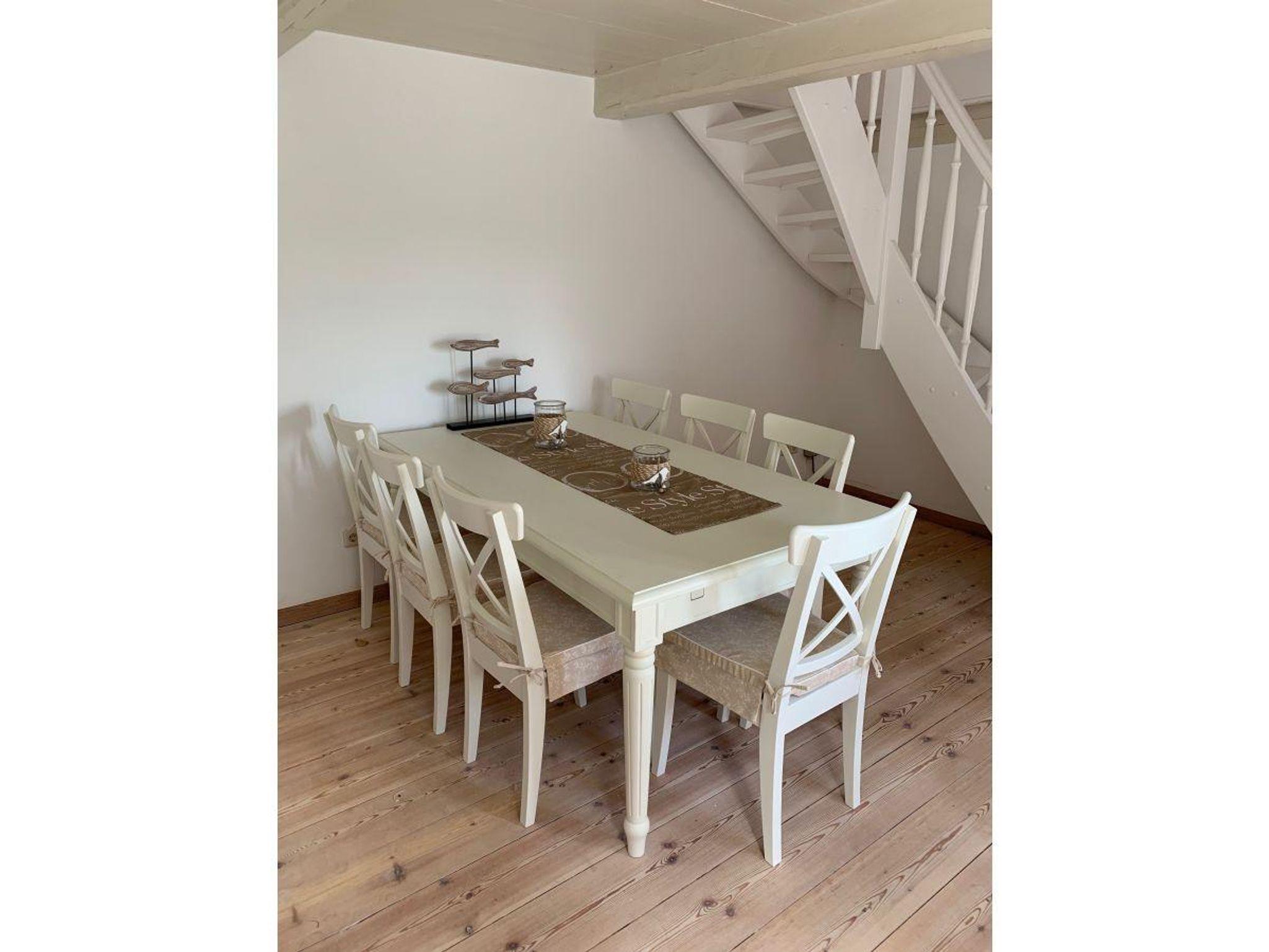 Der großzügige Wohnbereich hat rund 45 m². Im Esszimmer steht ein großer Esstisch an dem alle Platz finden. Der Kachelofen lädt zum Verweilen ein. Drei der Schlafzimmer im 1. Stock verfügen über vollwertige Original Viktorianische - Doppelbetten. Die 2 Schlafzimmer im Erdgeschoss sind ausgestattet mit einen Doppelbett und einem Tagesbett (von 90x200 cm m auf 180x200 cm ausziehbar)