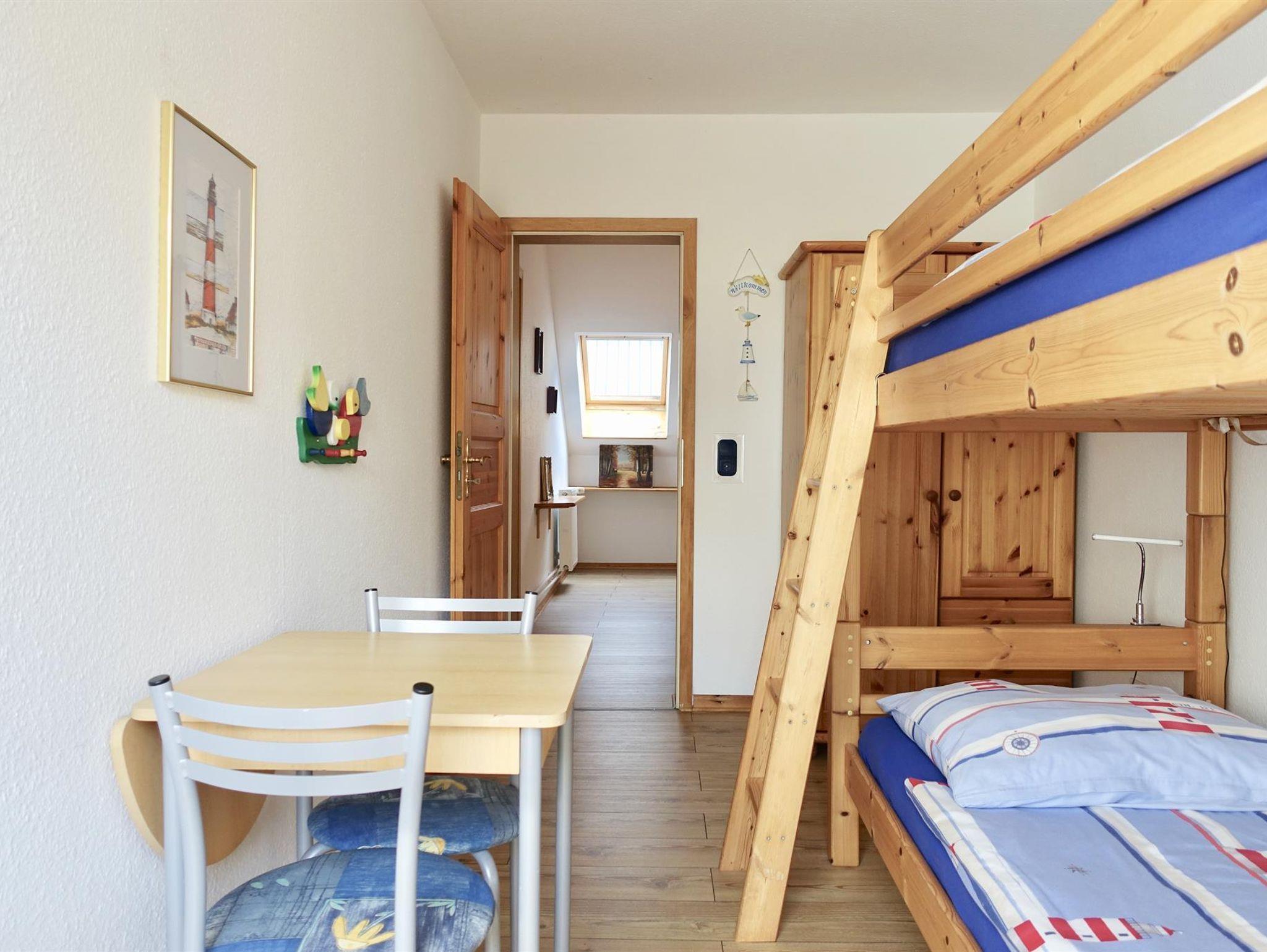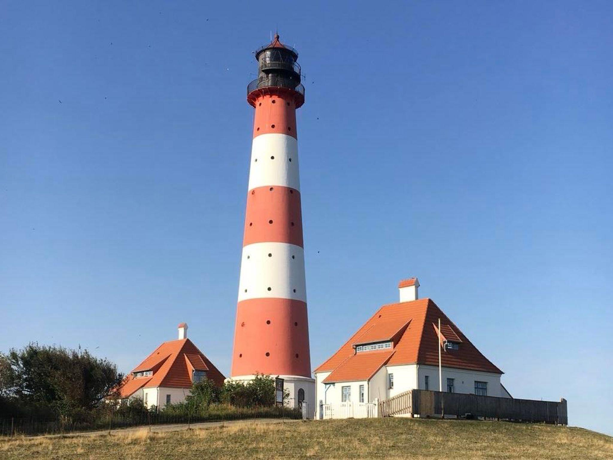 Die Ferienwohnung 7 hat eine Grundfläche von 88qm. Sie ist für max. 4 Personen geeignet, verfügt über einen separaten Eingang und bietet im Obergeschoss eine gepflegte Einrichtung und Ausstattung. Diese Wohnung hat einen traumhaften Ausblick über das weite Land von Westerhever bis hin zum Leuchtturm Westerheversand. Sie finden einen großen Wohnraum, ein separates Esszimmer und eine komplett ausgestattete Küche mit Backofen, 4-Platten-Herd, Mikrowelle, Kaffeemaschine, Toaster, Geschirrspüler, Kühlschrank vor. Das große Tageslicht-Badezimmer ist mit Dusche und WC ausgestattet. Die Wohnung hat zwei Schlafräume, eines mit einem Doppelbett (2 x 1,80m) und ein Zimmer mit einem Etagenbett. Schließlich gehört zu dieser Ferienwohnung noch ein grosser Flur und ein Eingangsbereich mit viel Raum für Abstellmöglichkeiten. Direkt vor der Haustür haben Sie Ihre eigene Terrasse mit Gartenmöbeln und Grillmöglichkeit. Der Blick geht in den Garten, über die Felder und rechts zum Deich am Wattenmeer. Nachts leuchtet am Horizont der bekannte Leuchtturm von Westerhever. Aus Rücksicht auf Allergiker sind in dieser Wohnung keine Haustiere gestattet.