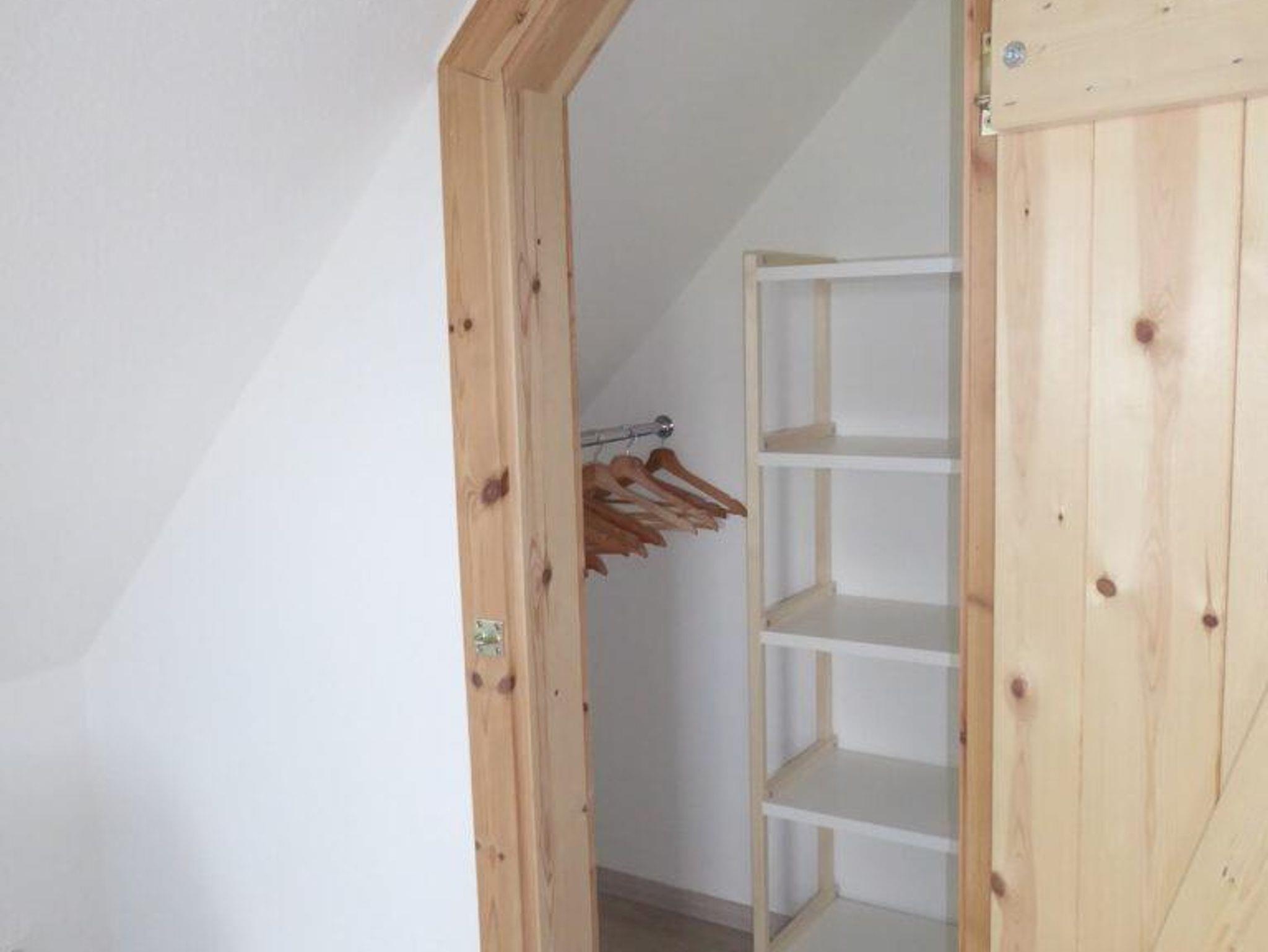 Schlafzimmer mit Doppelbett mit Einzelmatratzen (erreichbar über das Wohnzimmer), Kleiderschrank.