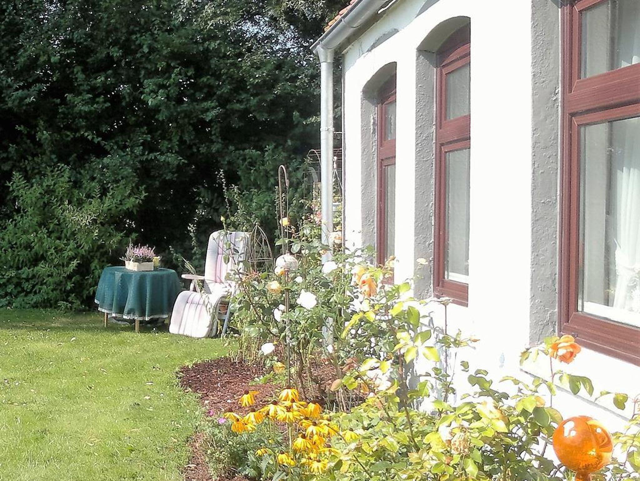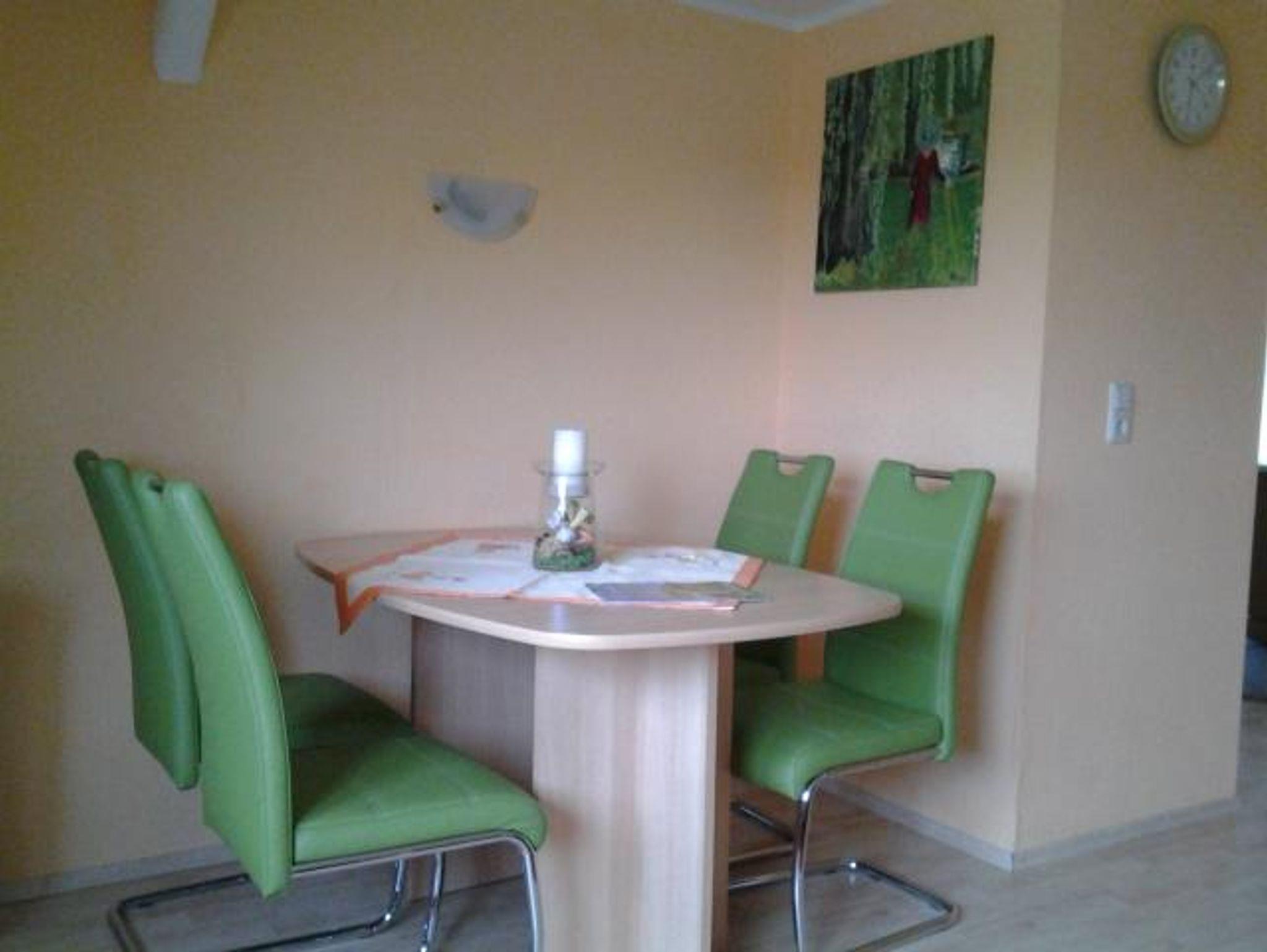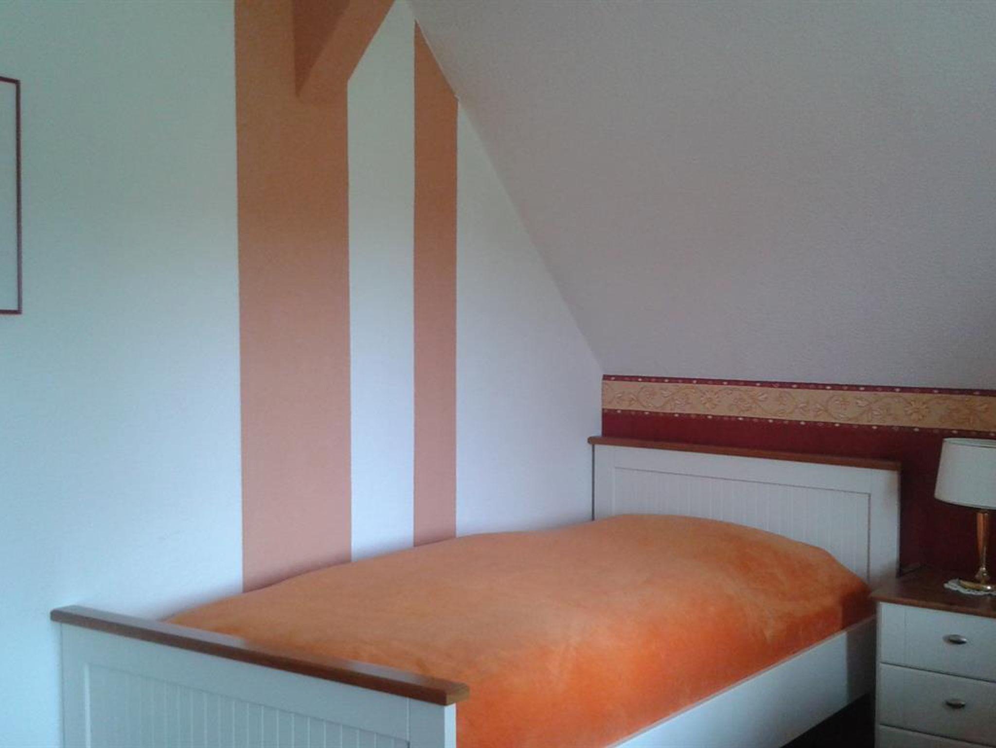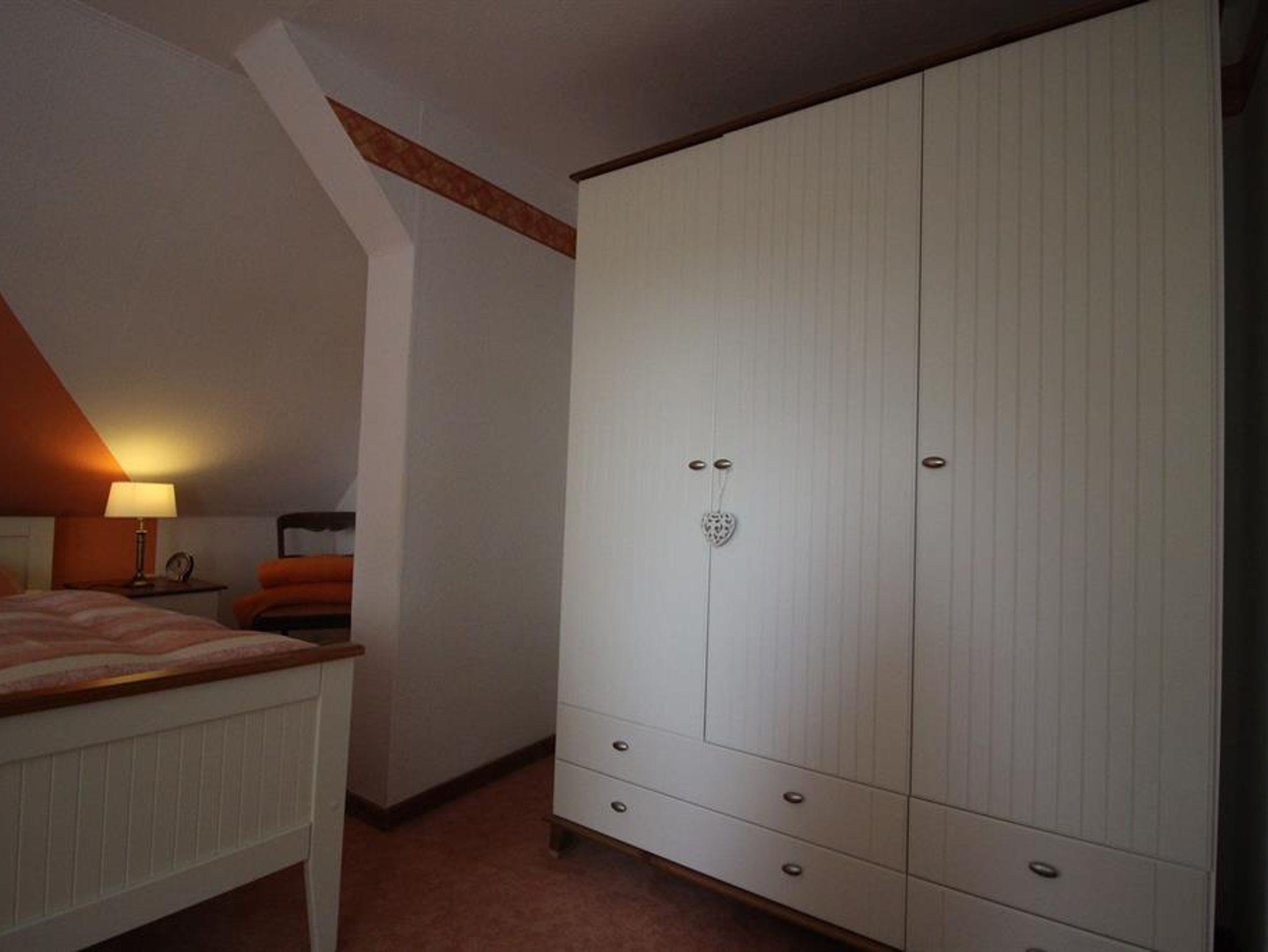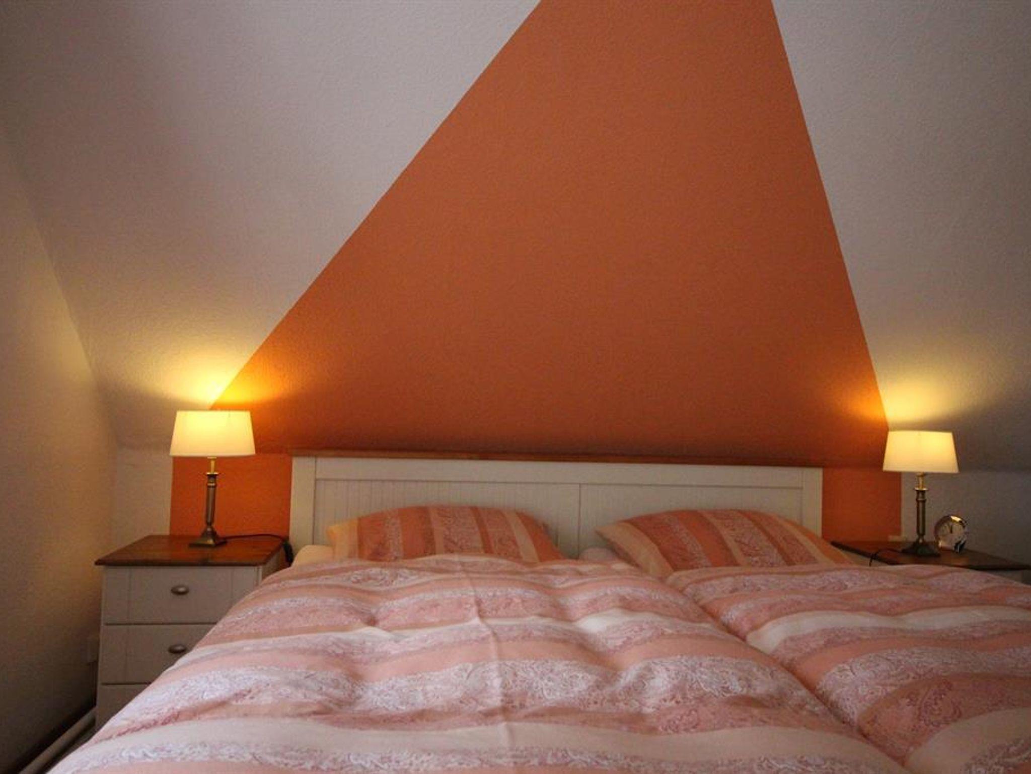 Die Ferienwohnung befindet sich im Obergeschoss und hat eine Wohnfläche von 70 qm. Der Wohnraum ist gemütlich eingerichtet mit Sitz-Essecke und verfügt über Sat-TV, eine Kompakt-Anlage. 1 Schlafraum mit einem Doppelbett, 1 Schlafraum mit 2 Einzelbetten. Die Küche mit Eckecke ist vollständig mit E-Herd, Backofen, Geschirrspüler und Mikrowelle eingerichtet. Duschbad mit WC und Tageslicht. Die Gartenlaube und Terrassenplätze stehen zur Verfügung. Abstellmöglichkeiten sind gegeben.