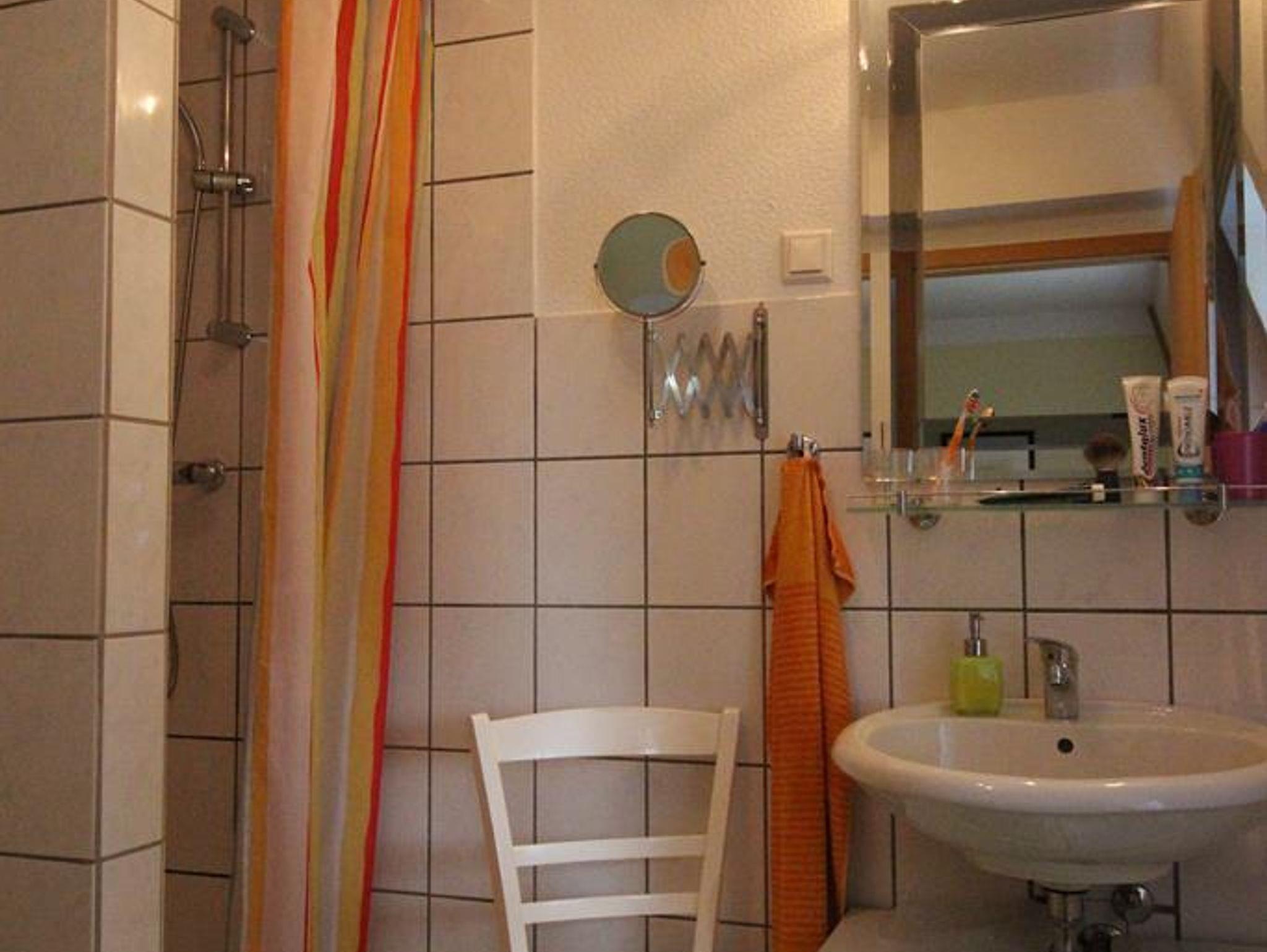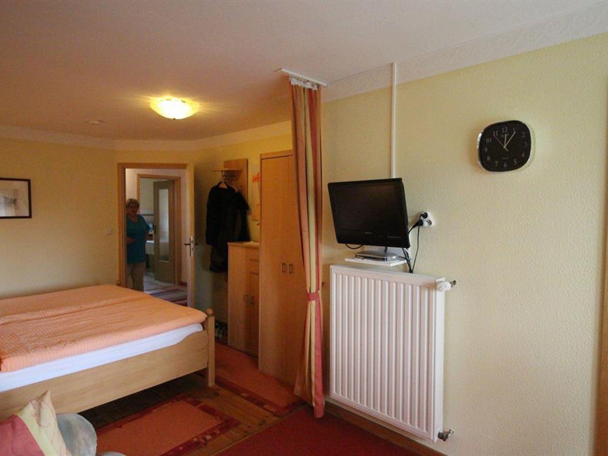 Gepflegtes und gemütliches Doppelzimmer, im Obergeschoss eines Ferienhauses. Duschbad mit Fenster. Zum Zimmer gehört eine komplett eingerichtete Küche, die mit zwei Schritten über den Flur zu erreichen ist. Zur Ausstattung gehören SAT-TV, Radio, eine Sitzecke und Ausblick in den Garten. Der Garten mit Grillmöglichkeit und viel Platz zum Entspannen steht zur Mitbenutzung zur Verfügung.