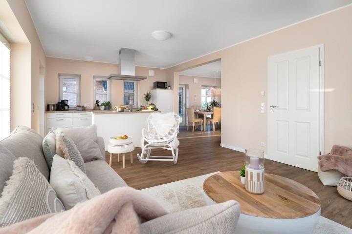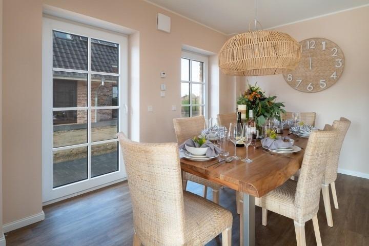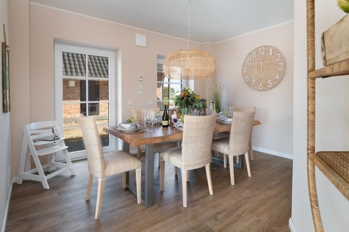 Das luxuriöse Ferienhaus "Sansibar", welches im Sommer 2021 fertiggestellt wurde, bietet auf zwei Etagen mit ausgefallenem Stil sowie besonderen Details Nordseeaufenthalt der Extraklasse. Im Erdgeschoss befindet sich das großzügig gestaltete und liebevoll eingerichtete Wohnzimmer mit Flatscreen-TV. Der angrenzende Essbereich und die offene, moderne Küche bieten alle Annehmlichkeiten, um einen tollen Kochabend zu veranstalten. Im Erdgeschoss befindet sich zudem ein Schlafzimmer mit Doppelbett, ein Badezimmer mit ebenerdiger Dusche und eine finnische Sauna. Hier können Sie sich nach langen Spaziergängen entspannen und wieder aufwärmen. Im Obergeschoss des Hauses befinden sich drei weitere Schlafzimmer mit Doppelbetten sowie zwei Badezimmer. Eines ist mit ebenerdiger Dusche und das andere mit Whirlwanne und ebenerdiger Dusche ausgestattet. Im Flur des Obergeschosses befindet der Zugang zum Spitzboden. Gerne dürfen vierbeinige Familienmitglieder auf Anfrage gegen Aufpreis mitreisen. Zum Haus gehören zudem eine möblierte Terrasse mit Sonnenschirm und eine nicht eingezäunte Gartenfläche. Auch einem gemütlichem Grillabend steht dank des Elektrogrills nichts im Weg. Vor dem Haus gibt es außerdem eine großzügig angelegte Parkplatzfläche.
