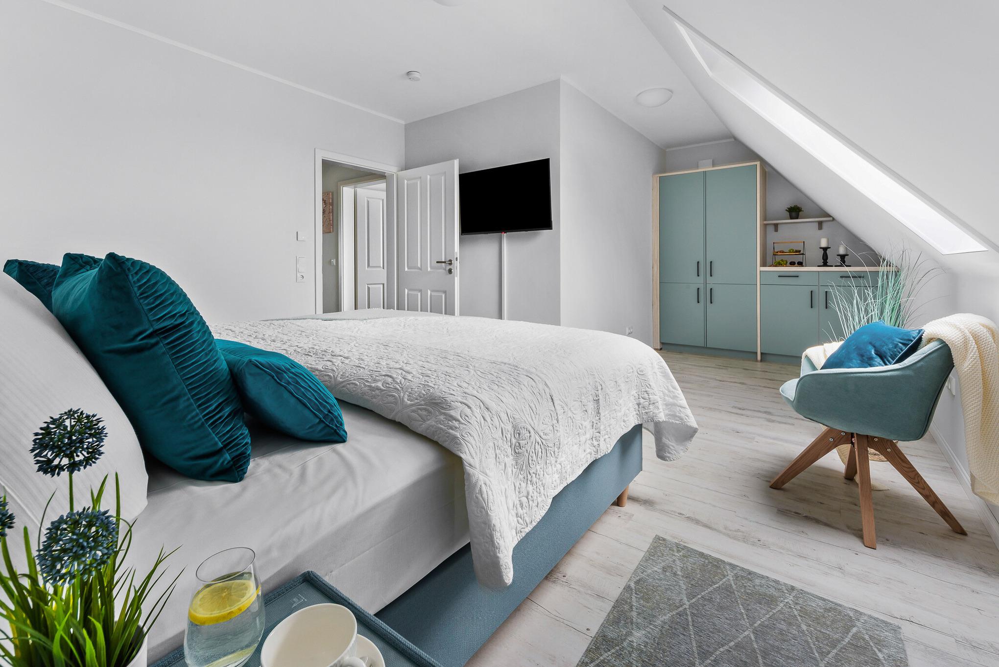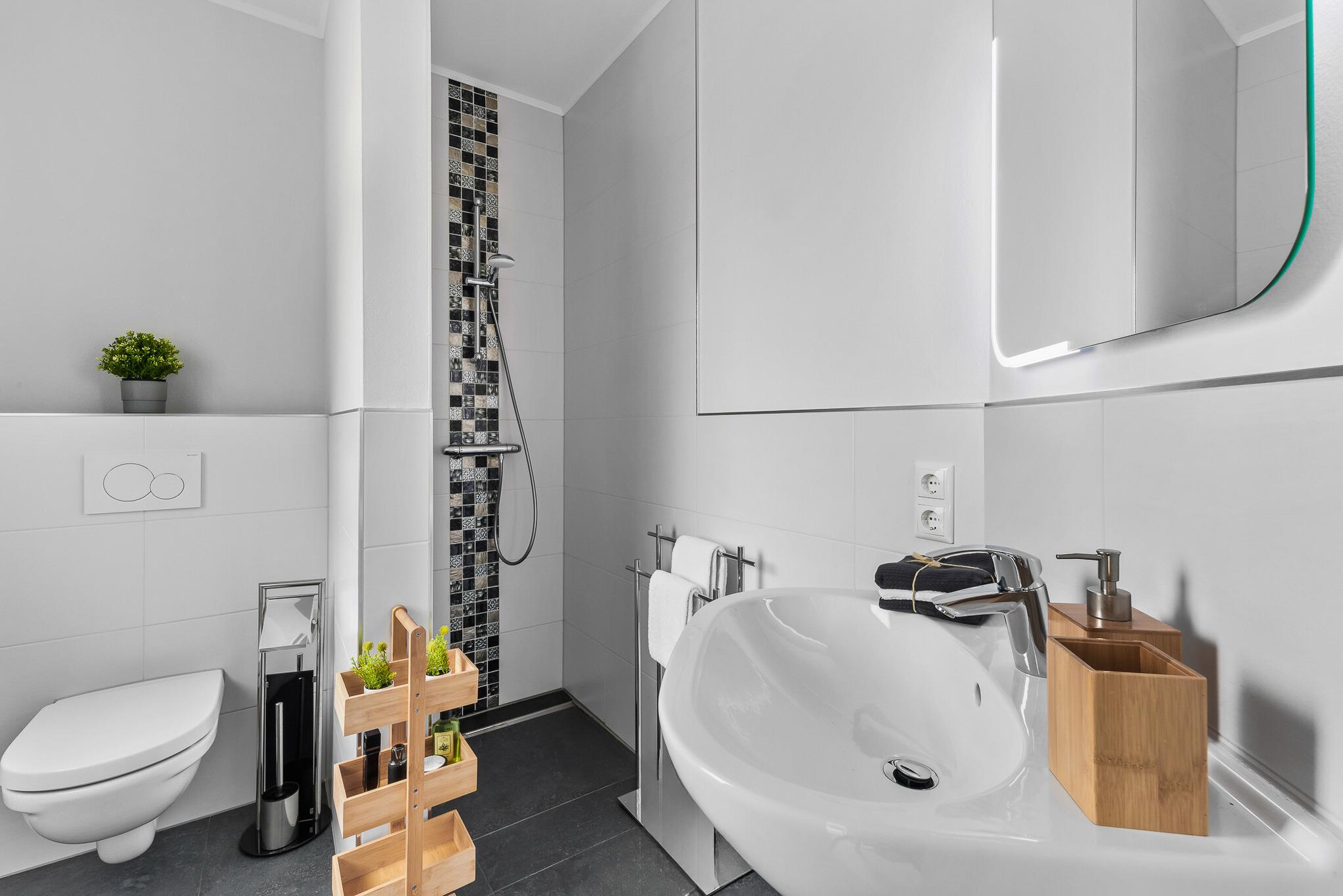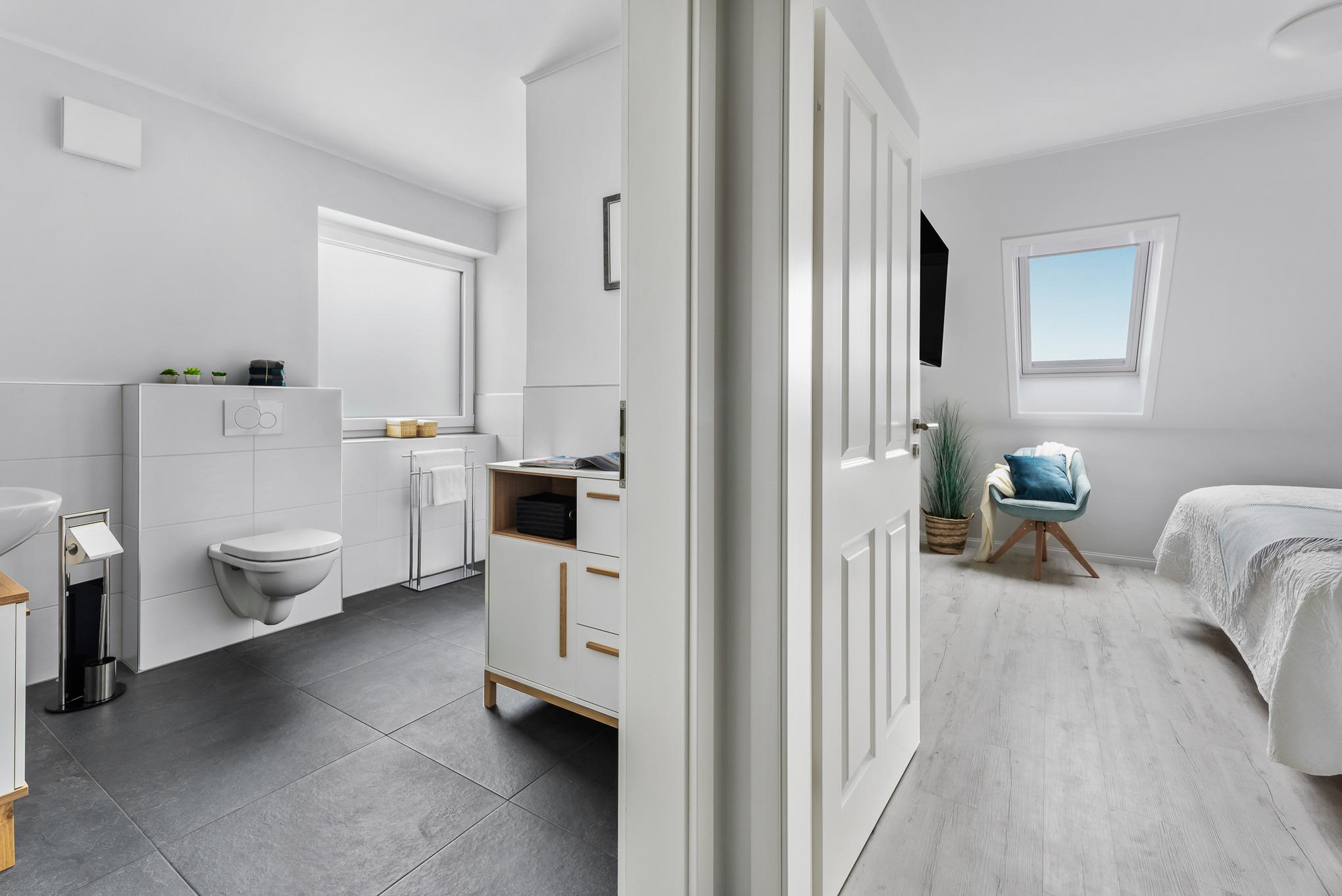 Die elegante Doppelhaushälfte "Lee" bietet ein hochwertiges und modernes Ambiente, das Ihren Aufenthalt an der Nordsee zu einem unvergesslichen Erlebnis machen wird! Besonders hervorzuheben ist die nachhaltige Bauweise des Hauses. Es entspricht nicht nur dem Standard von KfW 40 plus, sondern bezieht seinen Strom vollständig aus erneuerbaren Energiequellen. Zusätzlich wurde eine Erdwärmepumpe installiert. Der großzügige Wohnbereich ist stilvoll eingerichtet und mit einem Flatscreen-TV ausgestattet. Die separate, moderne Küche bietet alles, was Sie für einen gelungenen Kochabend benötigen. In den beiden Schlafzimmern befinden sich jeweils ein großes Doppelbett sowie ein Flatscreen-TV. Die beiden modernen Bäder verfügen jeweils über eine ebenerdige Dusche. Zum Haus gehören zudem eine Terrasse, ein großer, komplett eingezäunter Garten und ein Gemeinschaftsgeräteschuppen. Vor dem Haus steht Ihnen ein großzügiger Parkplatz zur Verfügung. Es gibt zusätzlich einen Carport.