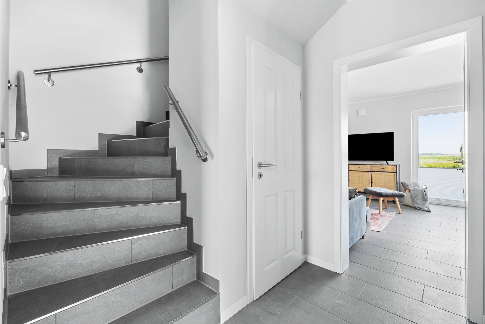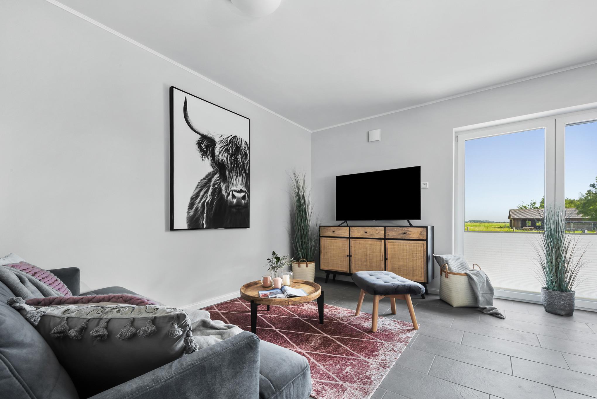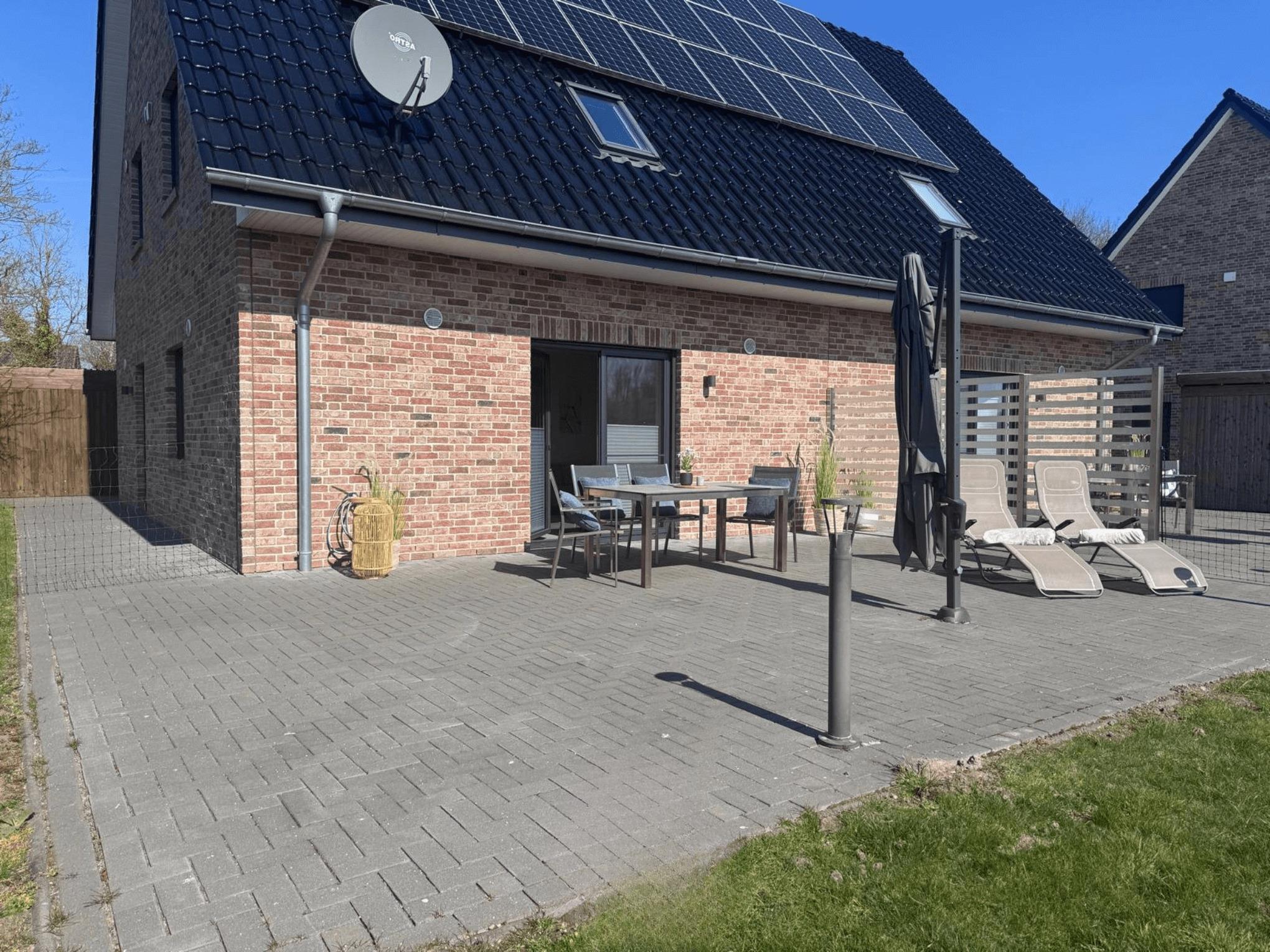 Die elegante Doppelhaushälfte "Luv" bietet ein hochwertiges und modernes Ambiente, das Ihren Aufenthalt an der Nordsee zu einem unvergesslichen Erlebnis machen wird! Besonders hervorzuheben ist die nachhaltige Bauweise des Hauses. Es entspricht nicht nur dem Standard von KfW 40 plus, sondern bezieht seinen Strom vollständig aus erneuerbaren Energiequellen. Zusätzlich wurde eine Erdwärmepumpe installiert. Der großzügige Wohnbereich ist stilvoll eingerichtet und mit einem Flatscreen-TV ausgestattet. Die separate, moderne Küche bietet alles, was Sie für einen gelungenen Kochabend benötigen. In den beiden Schlafzimmern befinden sich jeweils ein großes Doppelbett sowie ein Flatscreen-TV. Die beiden modernen Bäder verfügen jeweils über eine ebenerdige Dusche. Alle Fenster sind mit elektrischen Aussenrollläden ausgestattet. Zum Haus gehören zudem eine Terrasse, ein großer, komplett eingezäunter Garten und ein Gemeinschaftsgeräteschuppen. Vor dem Haus steht Ihnen ein großzügiger Parkplatz zur Verfügung. Es gibt zusätzlich einen Carport.