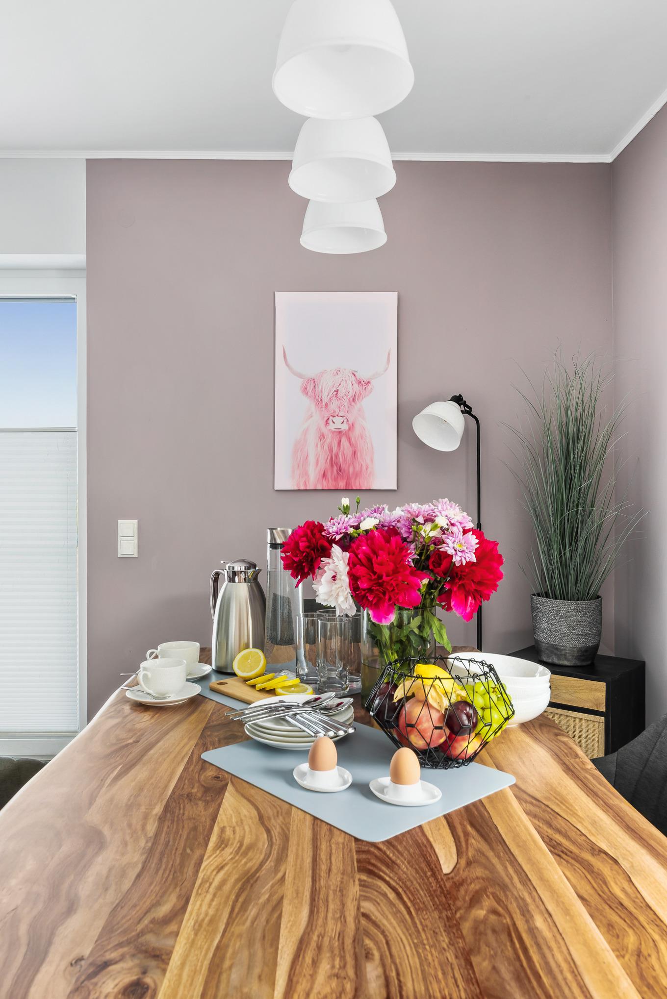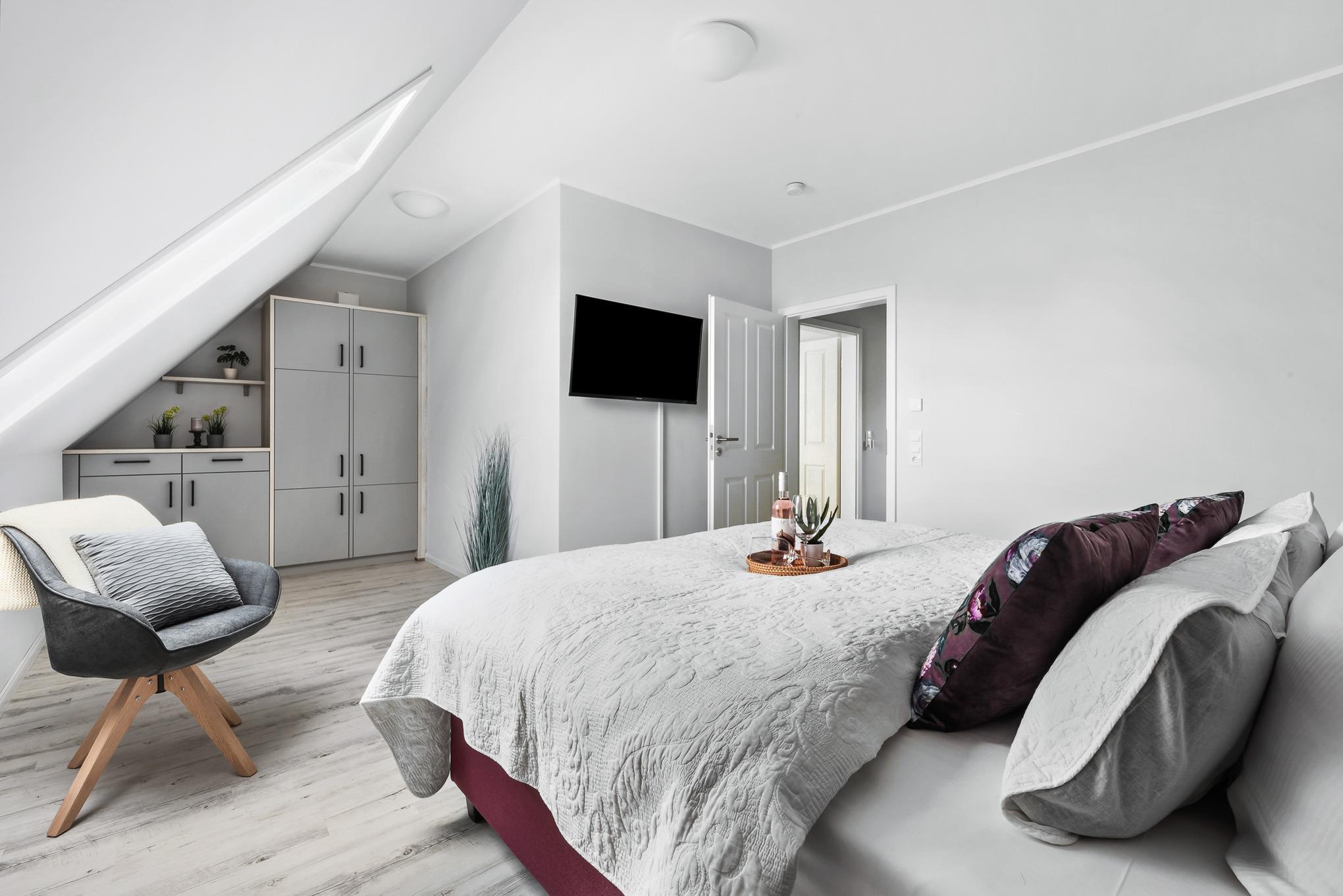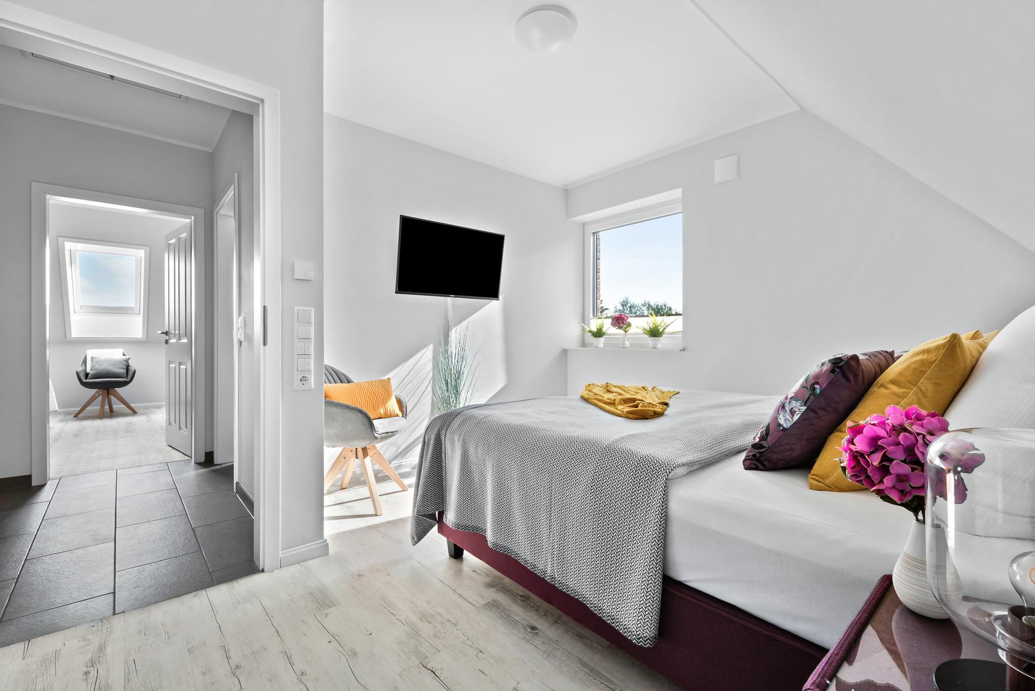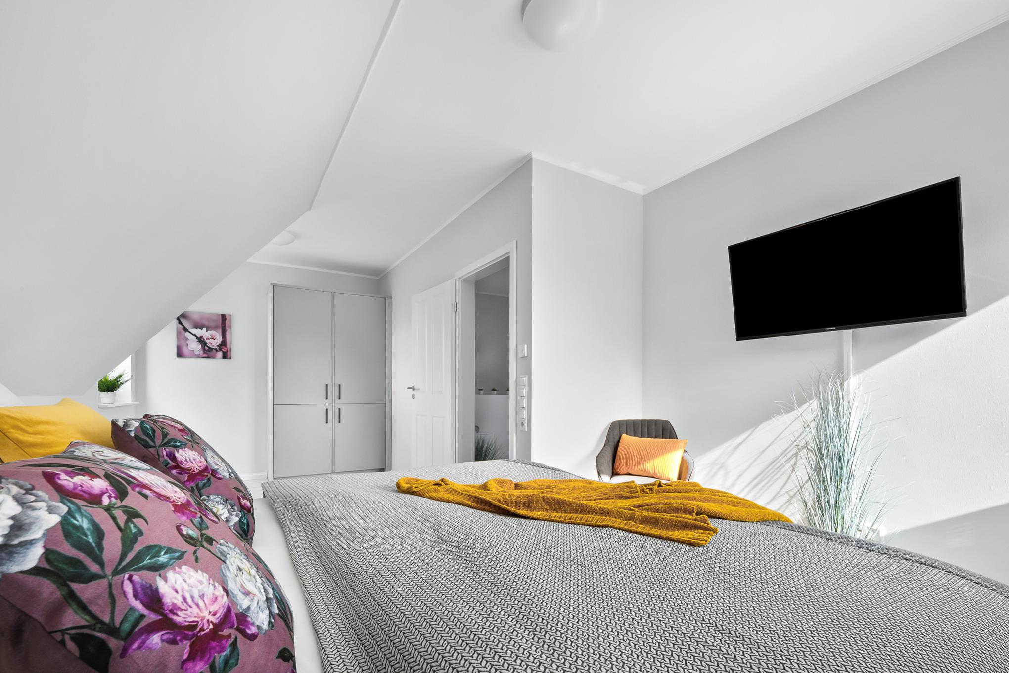 Die elegante Doppelhaushälfte "Luv" bietet ein hochwertiges und modernes Ambiente, das Ihren Aufenthalt an der Nordsee zu einem unvergesslichen Erlebnis machen wird! Besonders hervorzuheben ist die nachhaltige Bauweise des Hauses. Es entspricht nicht nur dem Standard von KfW 40 plus, sondern bezieht seinen Strom vollständig aus erneuerbaren Energiequellen. Zusätzlich wurde eine Erdwärmepumpe installiert. Der großzügige Wohnbereich ist stilvoll eingerichtet und mit einem Flatscreen-TV ausgestattet. Die separate, moderne Küche bietet alles, was Sie für einen gelungenen Kochabend benötigen. In den beiden Schlafzimmern befinden sich jeweils ein großes Doppelbett sowie ein Flatscreen-TV. Die beiden modernen Bäder verfügen jeweils über eine ebenerdige Dusche. Alle Fenster sind mit elektrischen Aussenrollläden ausgestattet. Zum Haus gehören zudem eine Terrasse, ein großer, komplett eingezäunter Garten und ein Gemeinschaftsgeräteschuppen. Vor dem Haus steht Ihnen ein großzügiger Parkplatz zur Verfügung. Es gibt zusätzlich einen Carport.